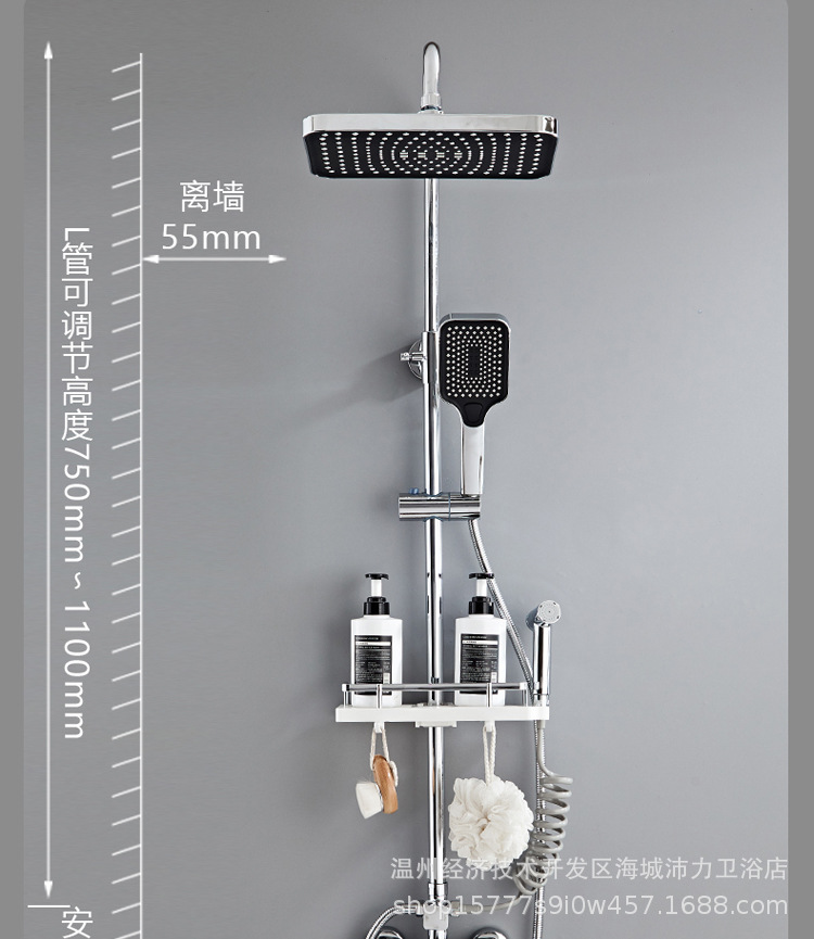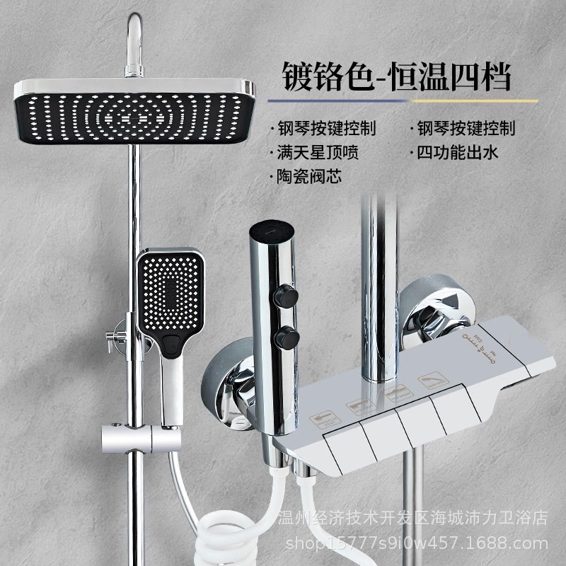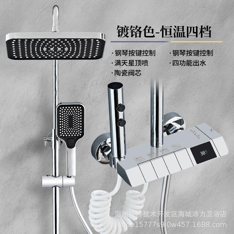 모든 구리 샤워 세트 가정용 욕실 지능형 일정한 온도 샤워 디지털 디스플레이 샤워 부스터 노즐