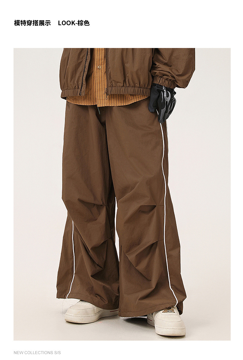 초루즈핏 와이드 레그 드로스트링 산악 스타일 작업복 캠핑 스포츠 캐주얼 드로스트링 반사 스트립 남녀공용 긴바지스토어 가기