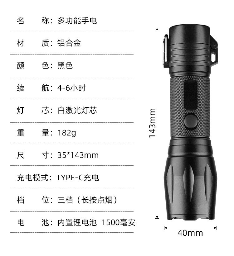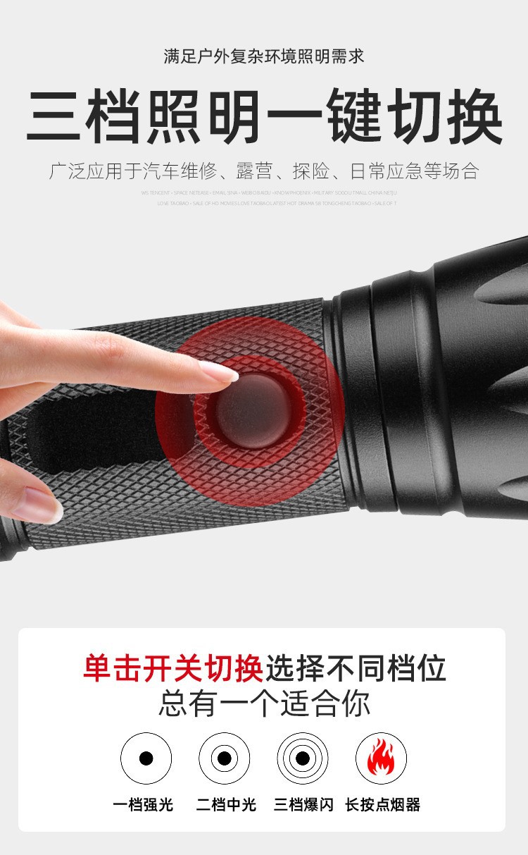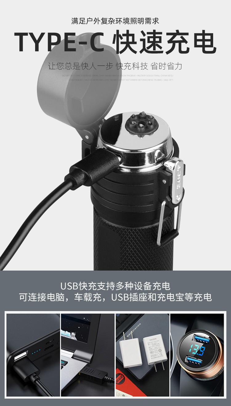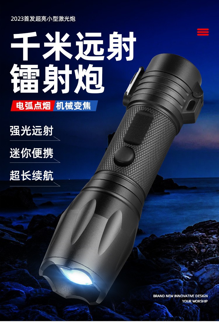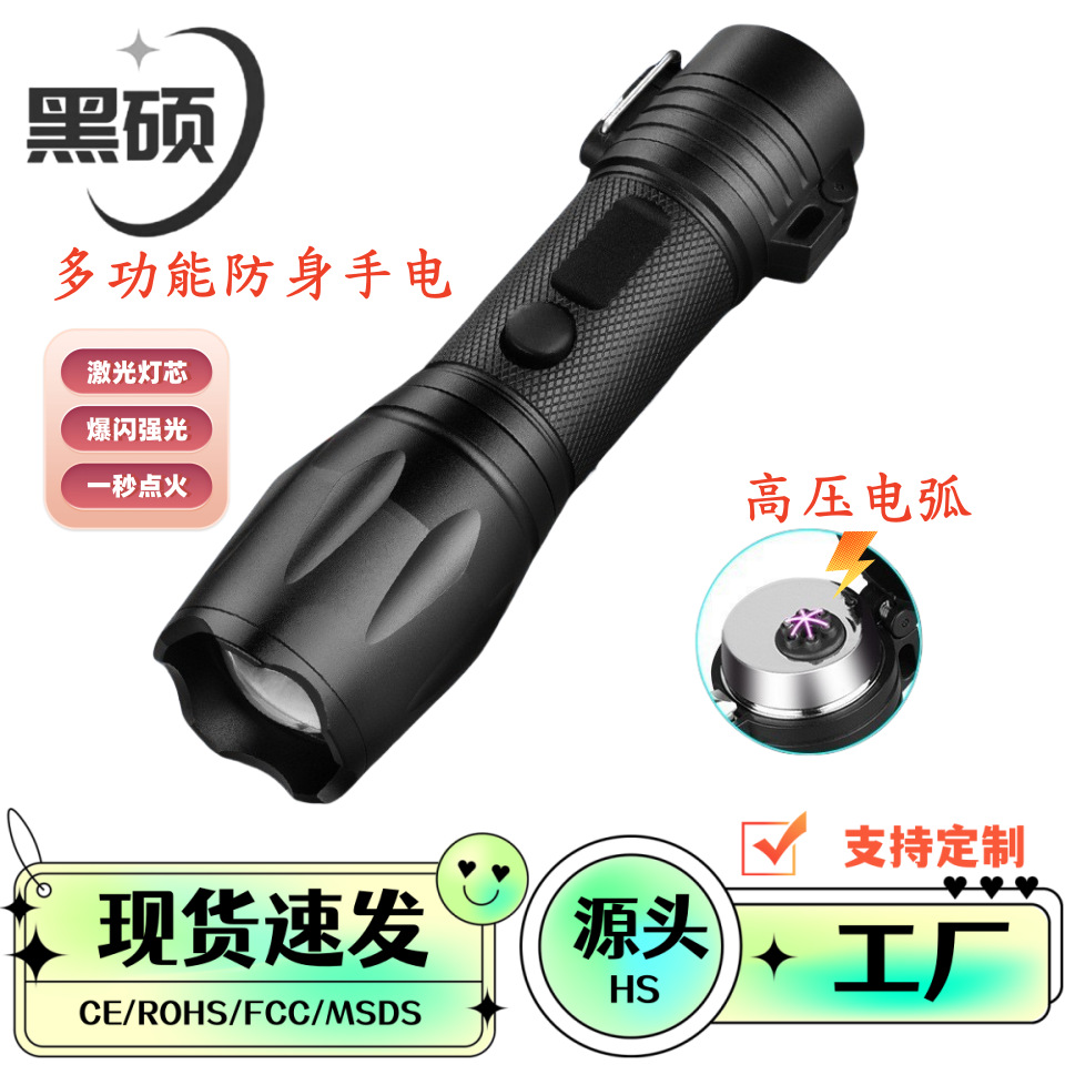 국경 간 여신 자기 방어 아크 점화 손전등 야외 충전식 휴대용 긴 내구성 레이저 손전등스토어 가기