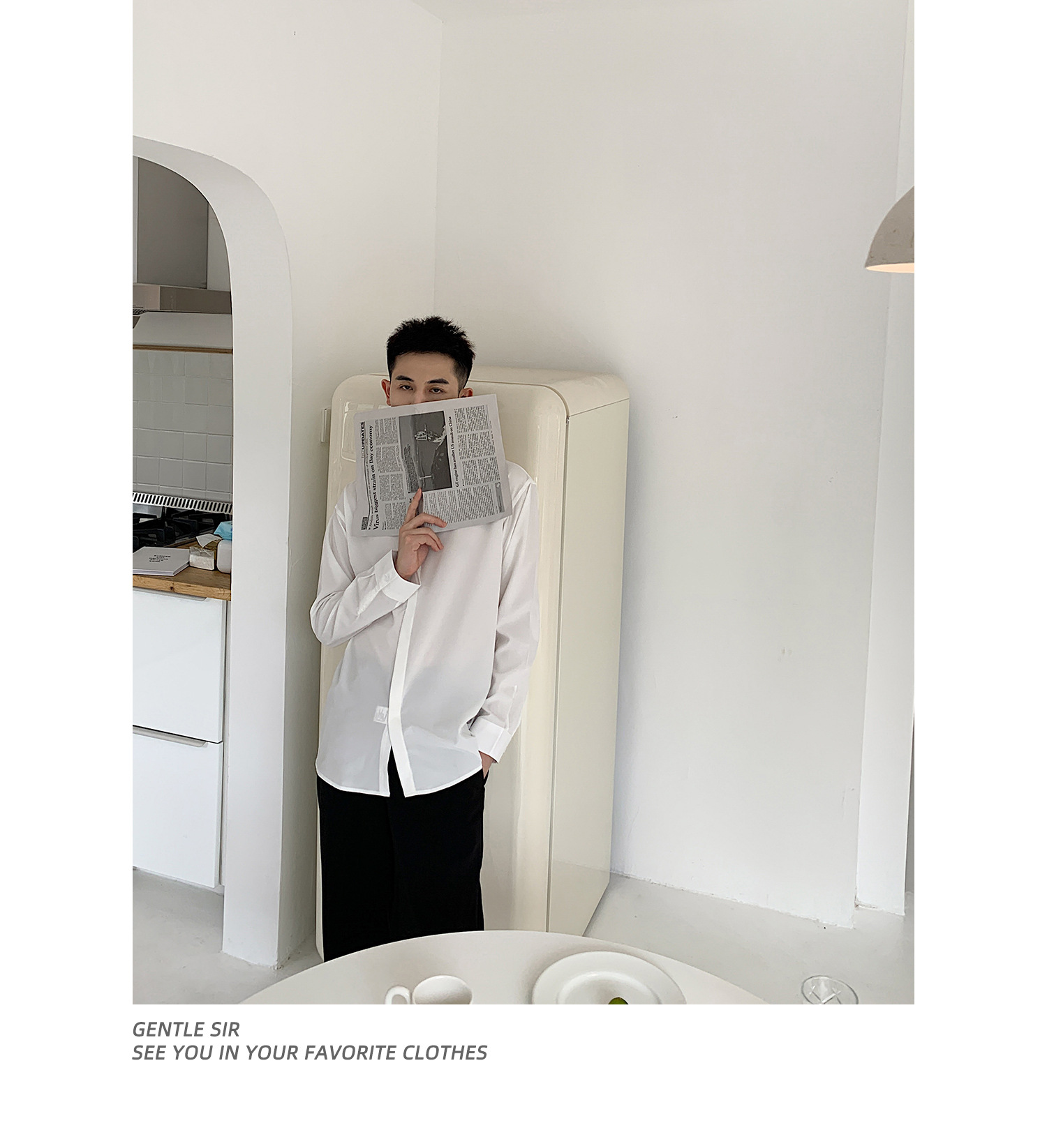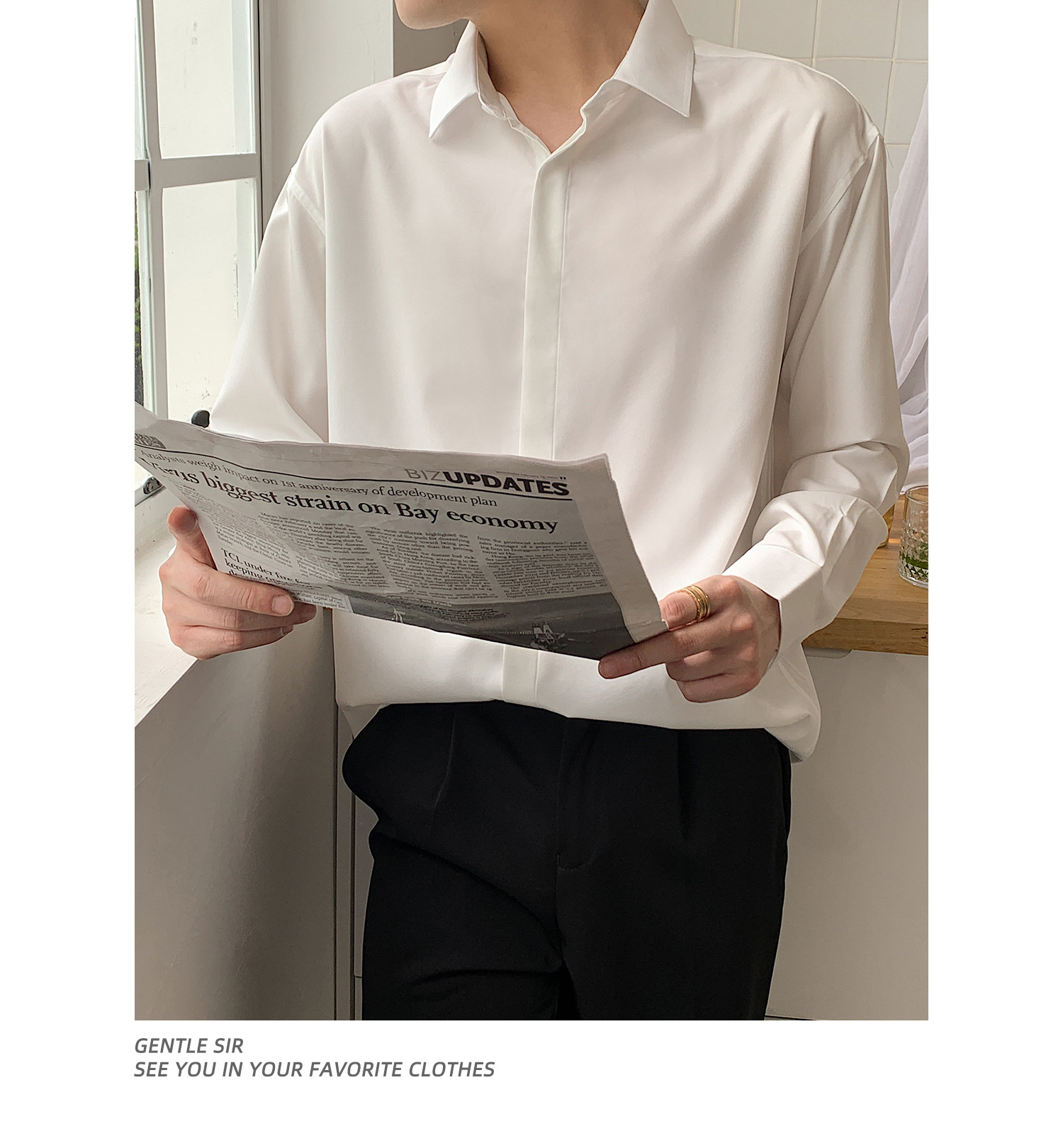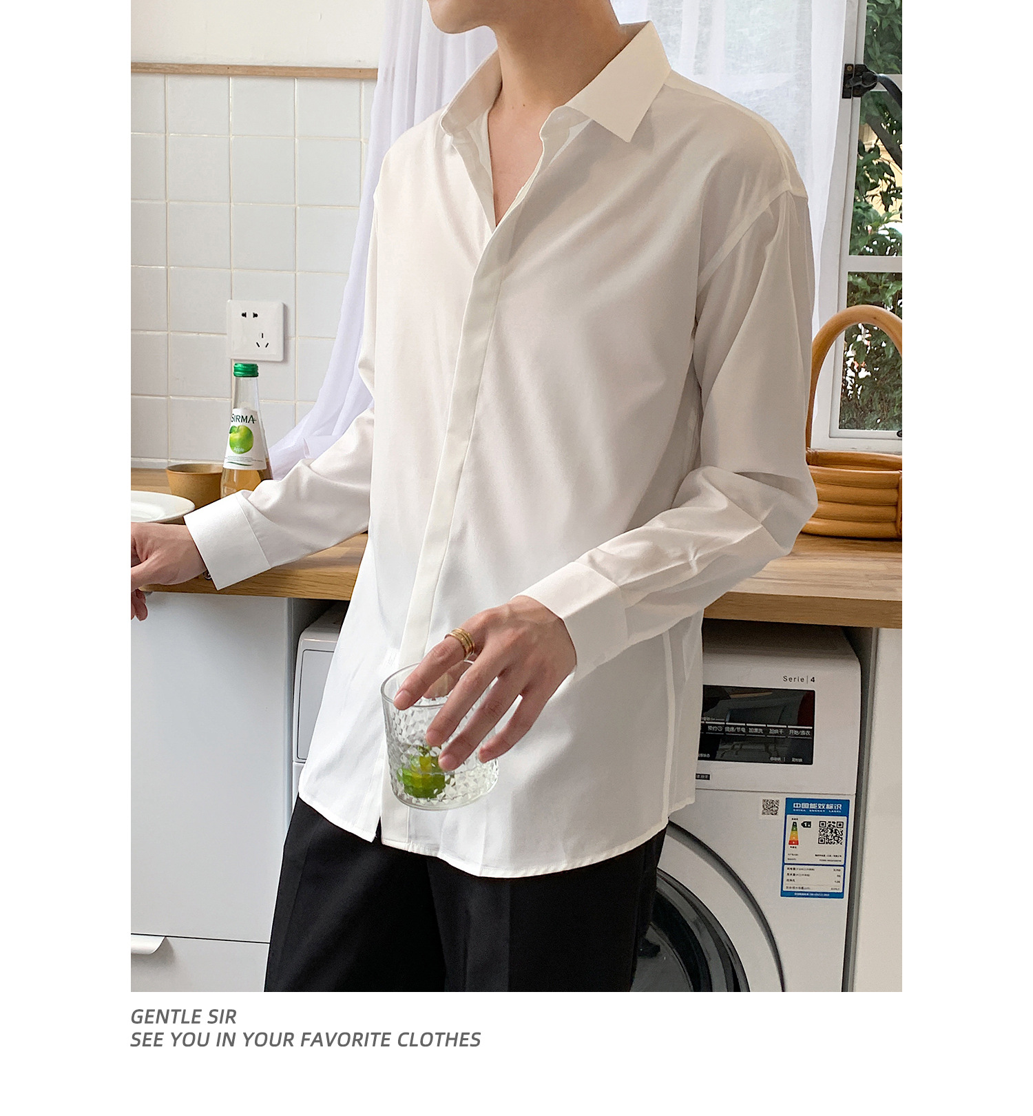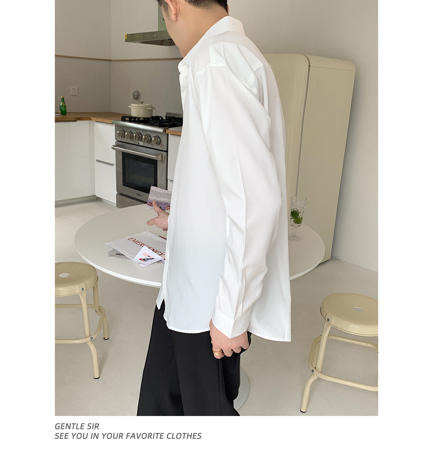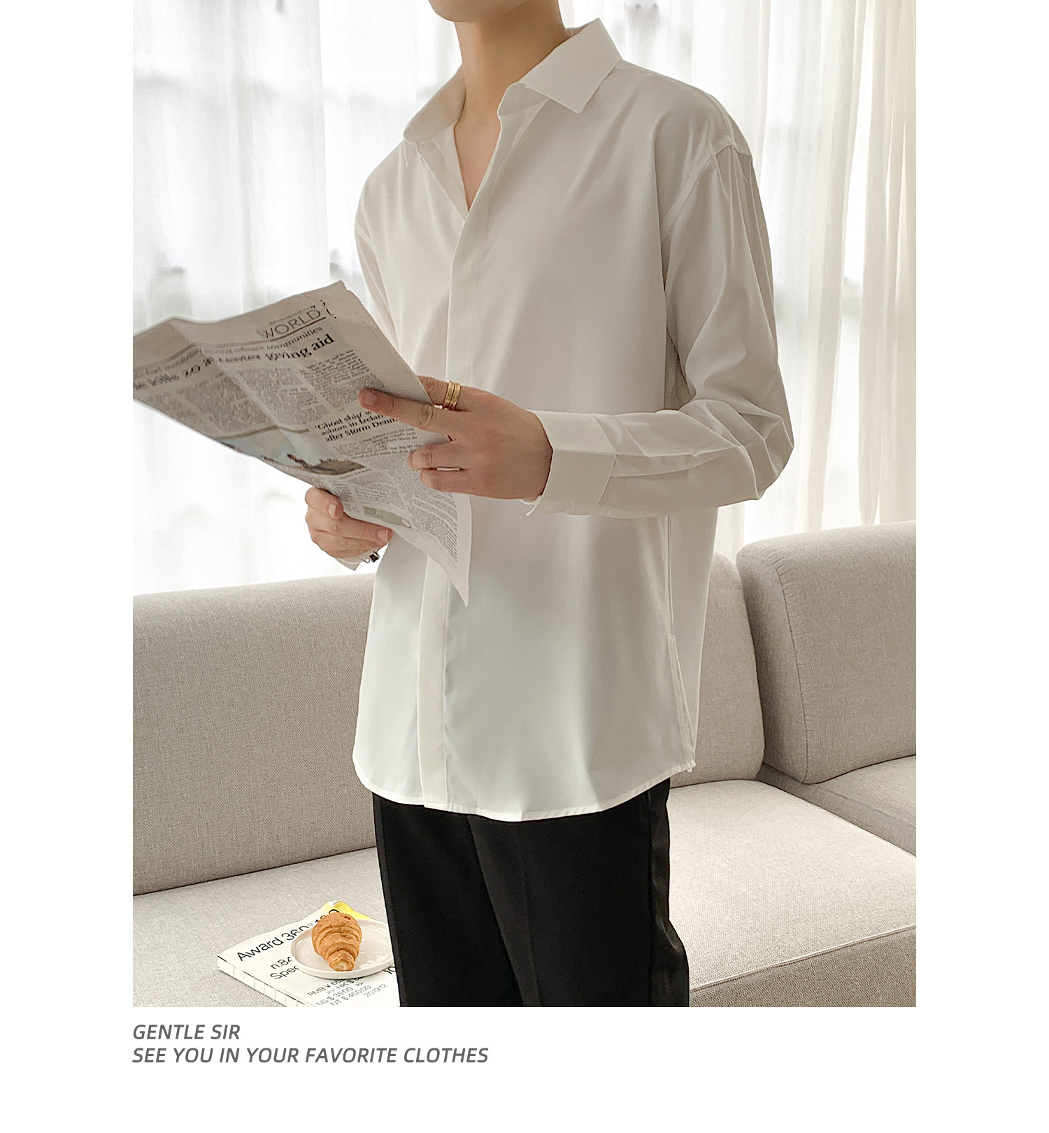 고급 화이트 셔츠 남자 긴팔 세트 탑 남자 캐주얼 느슨한 아이스 실크 셔츠 얇은 주름스토어 가기