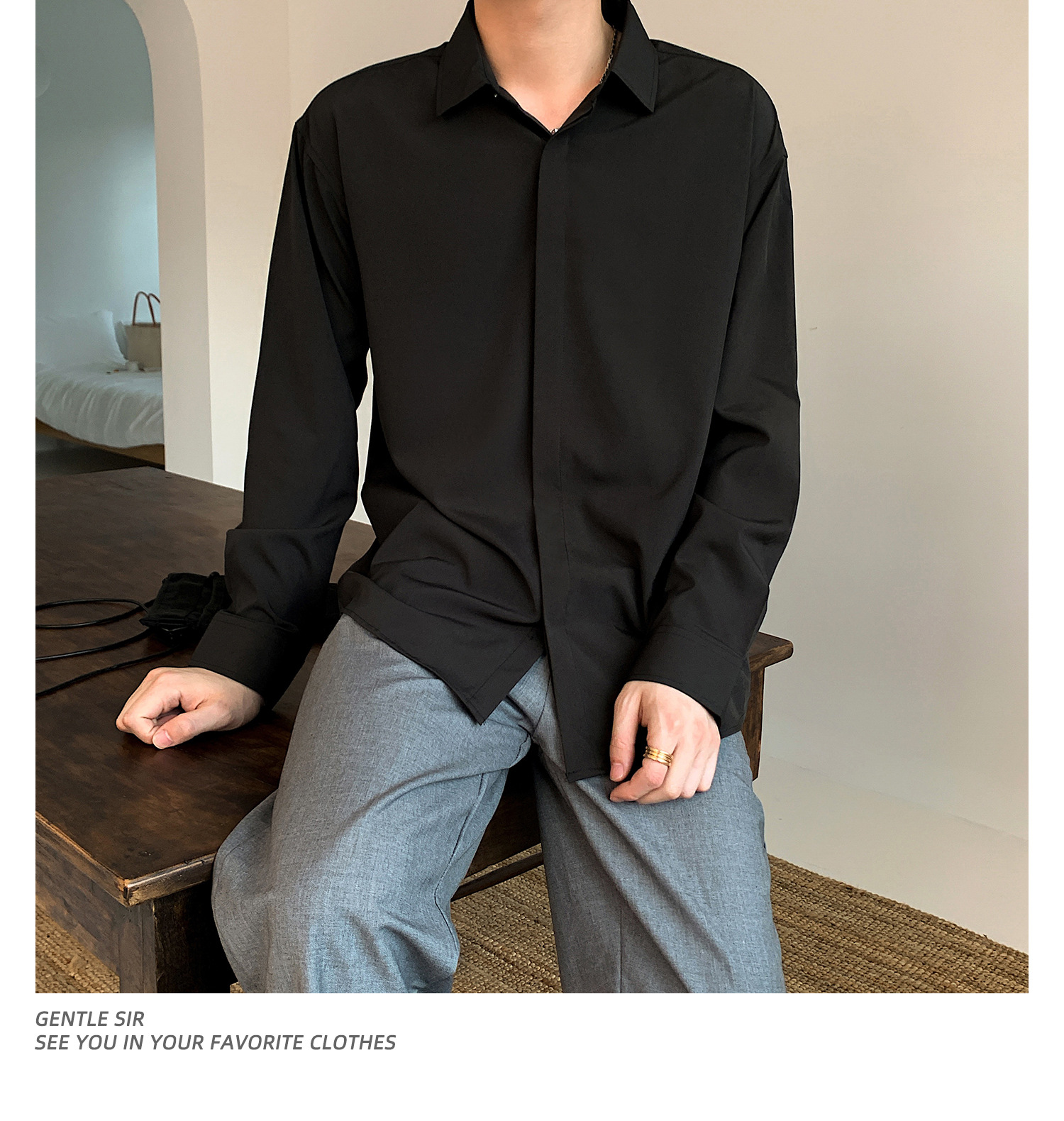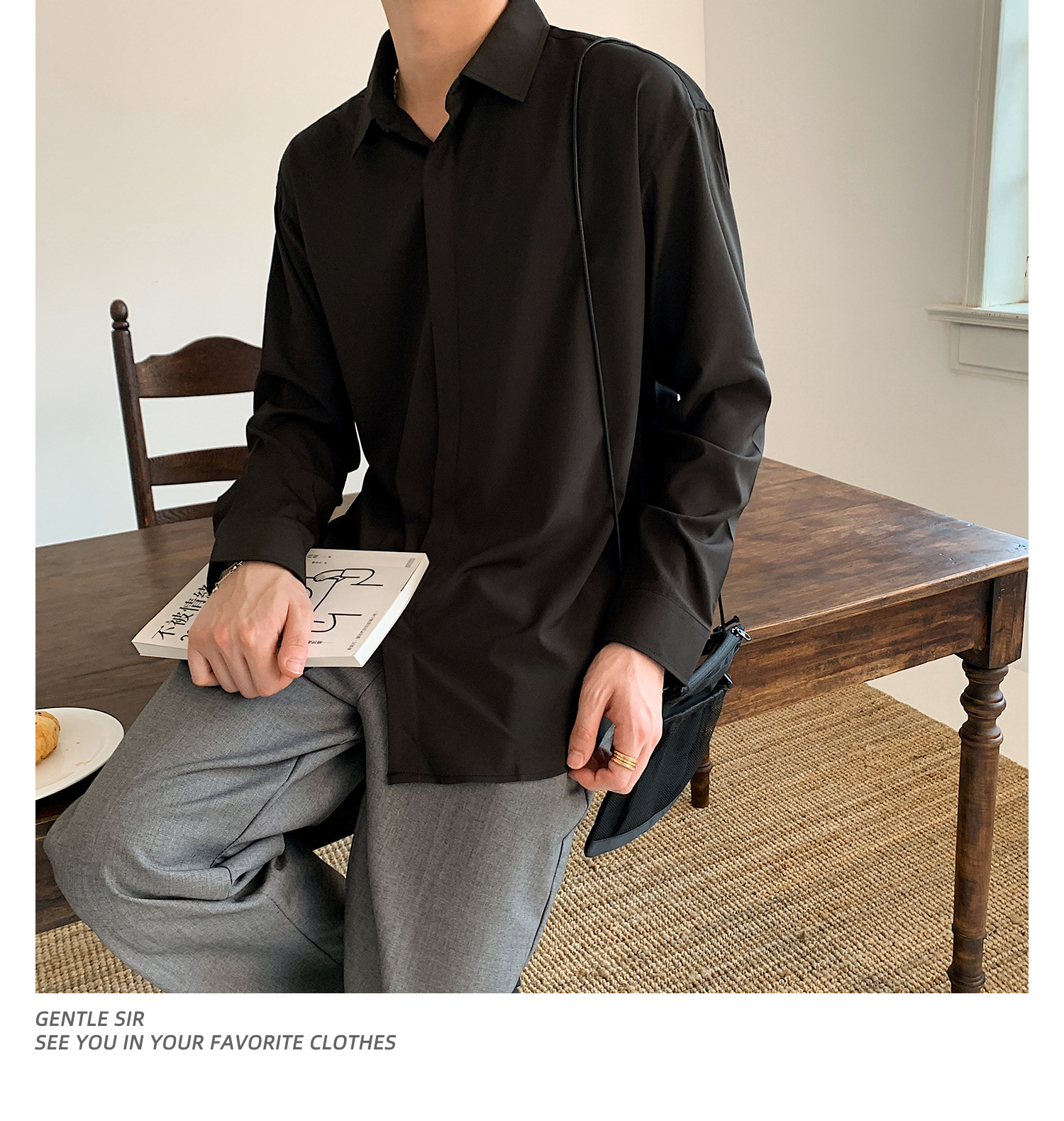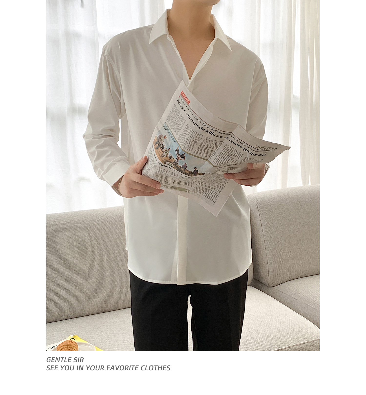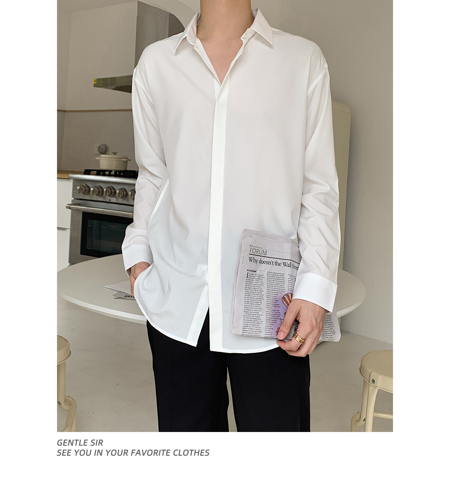 고급 화이트 셔츠 남자 긴팔 세트 탑 남자 캐주얼 느슨한 아이스 실크 셔츠 얇은 주름스토어 가기