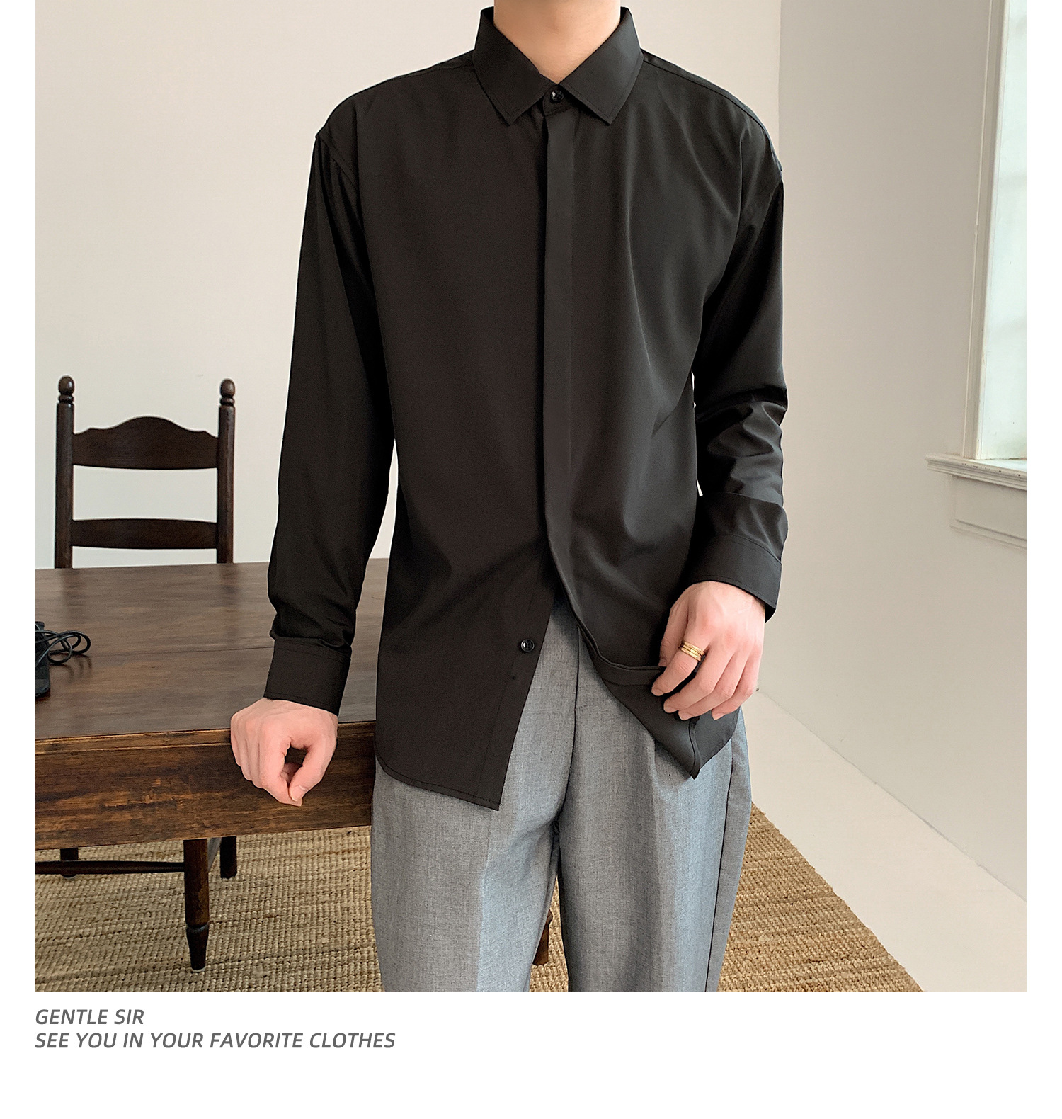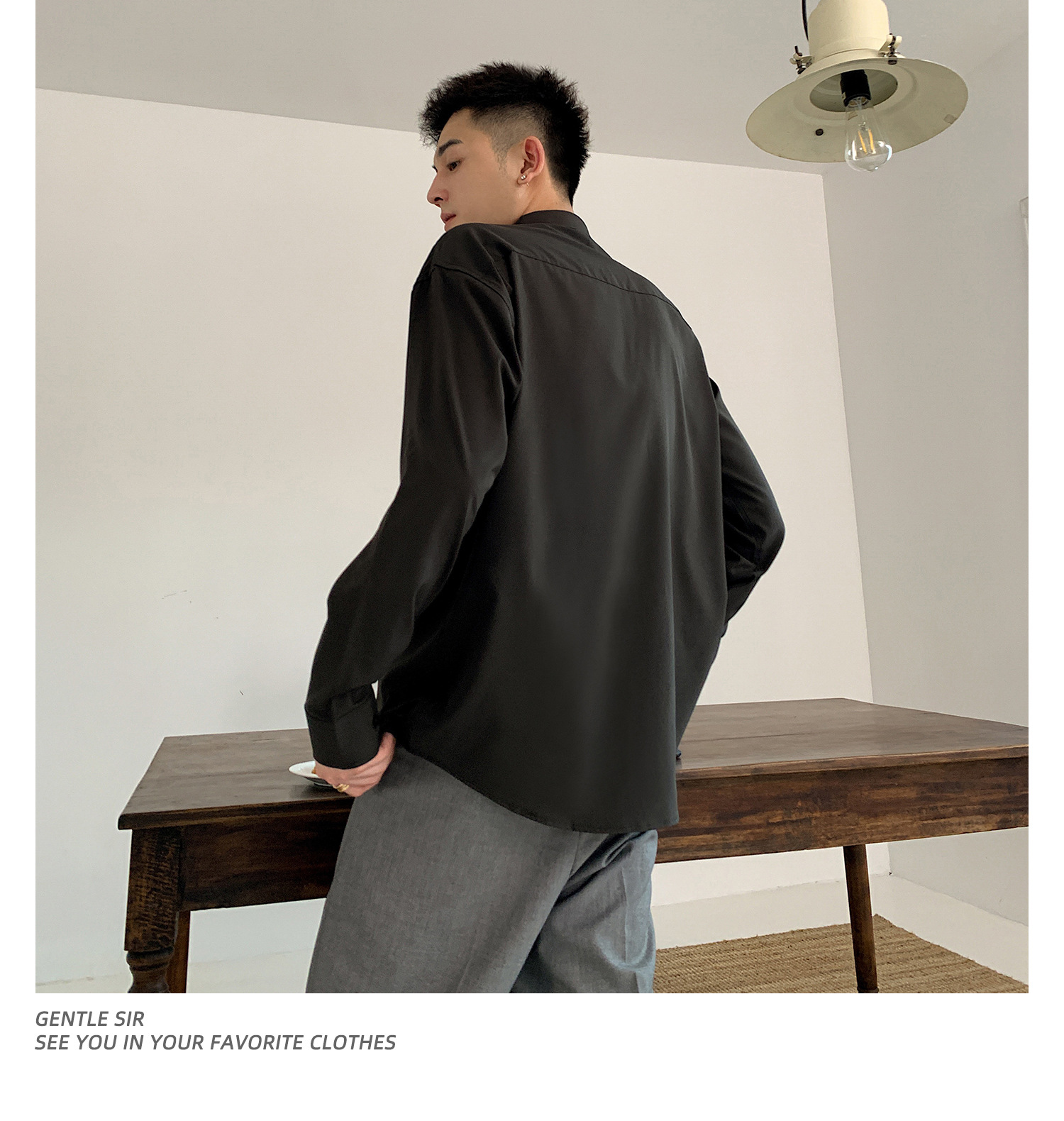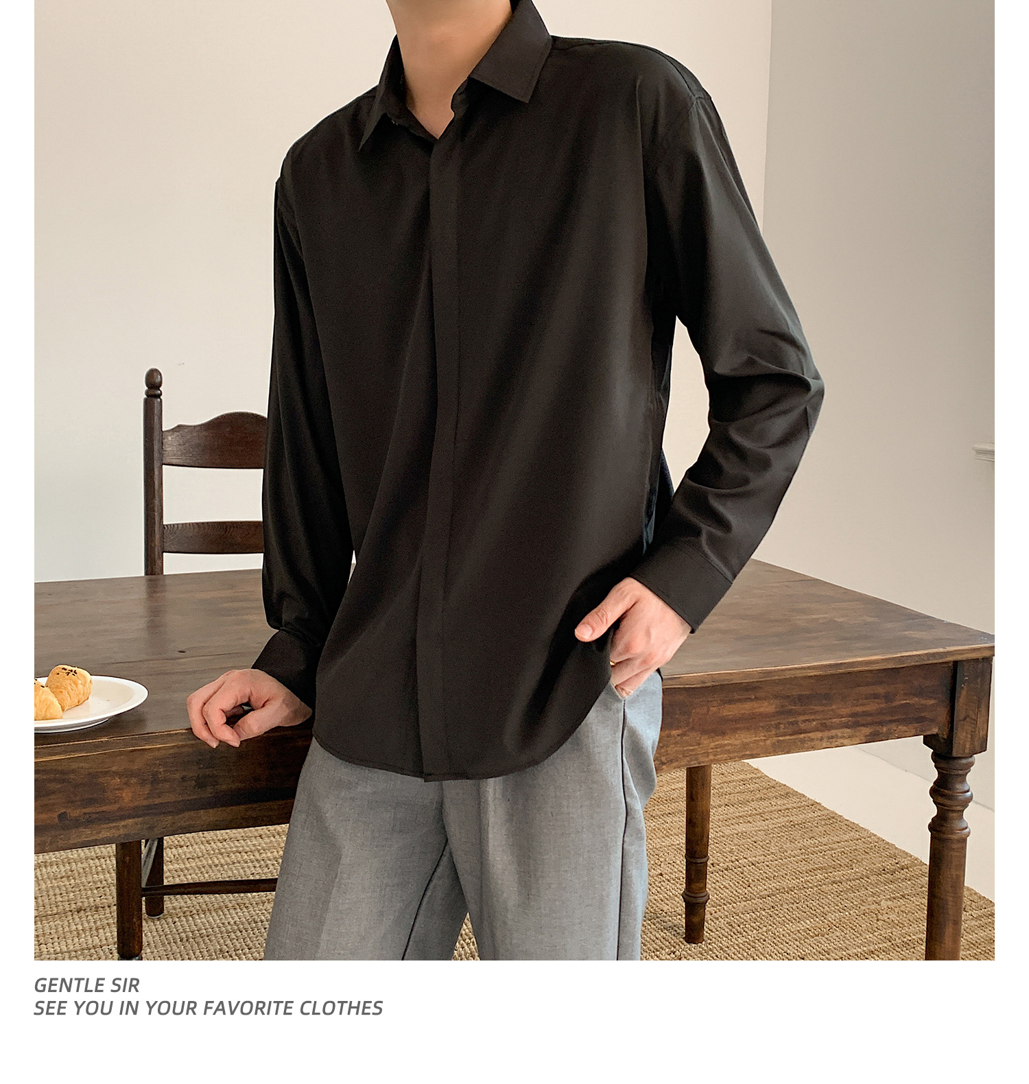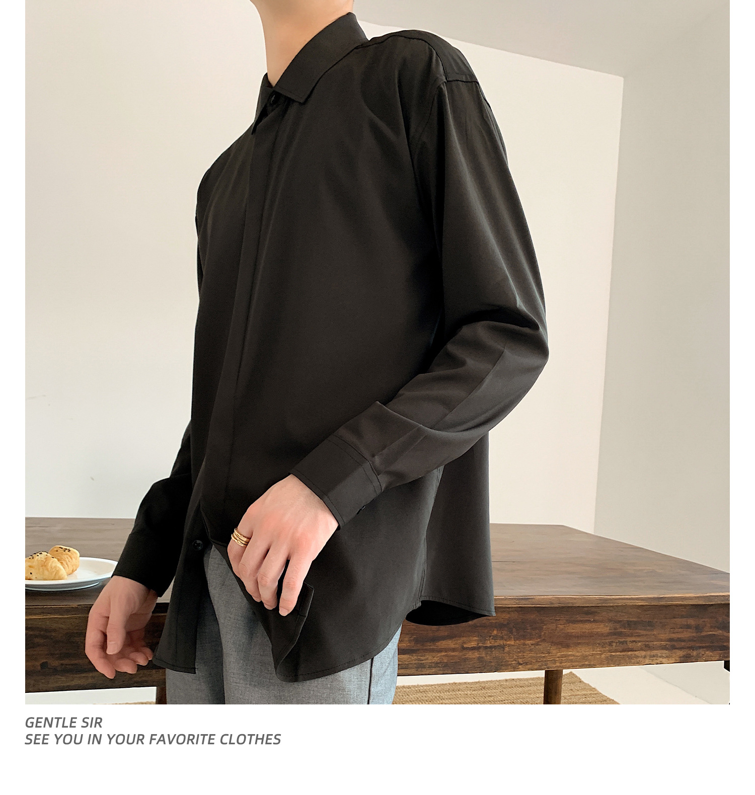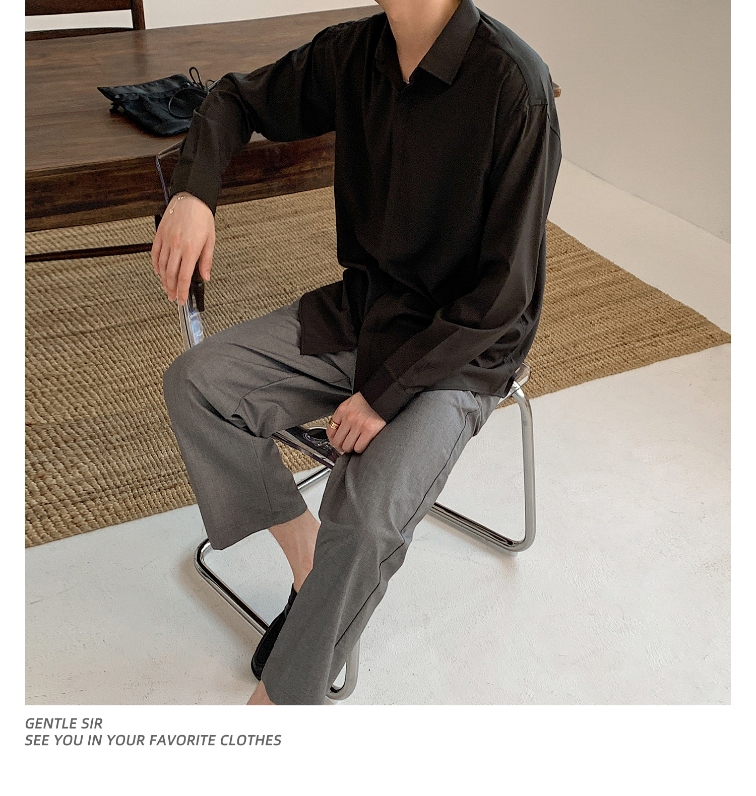 고급 화이트 셔츠 남자 긴팔 세트 탑 남자 캐주얼 느슨한 아이스 실크 셔츠 얇은 주름스토어 가기