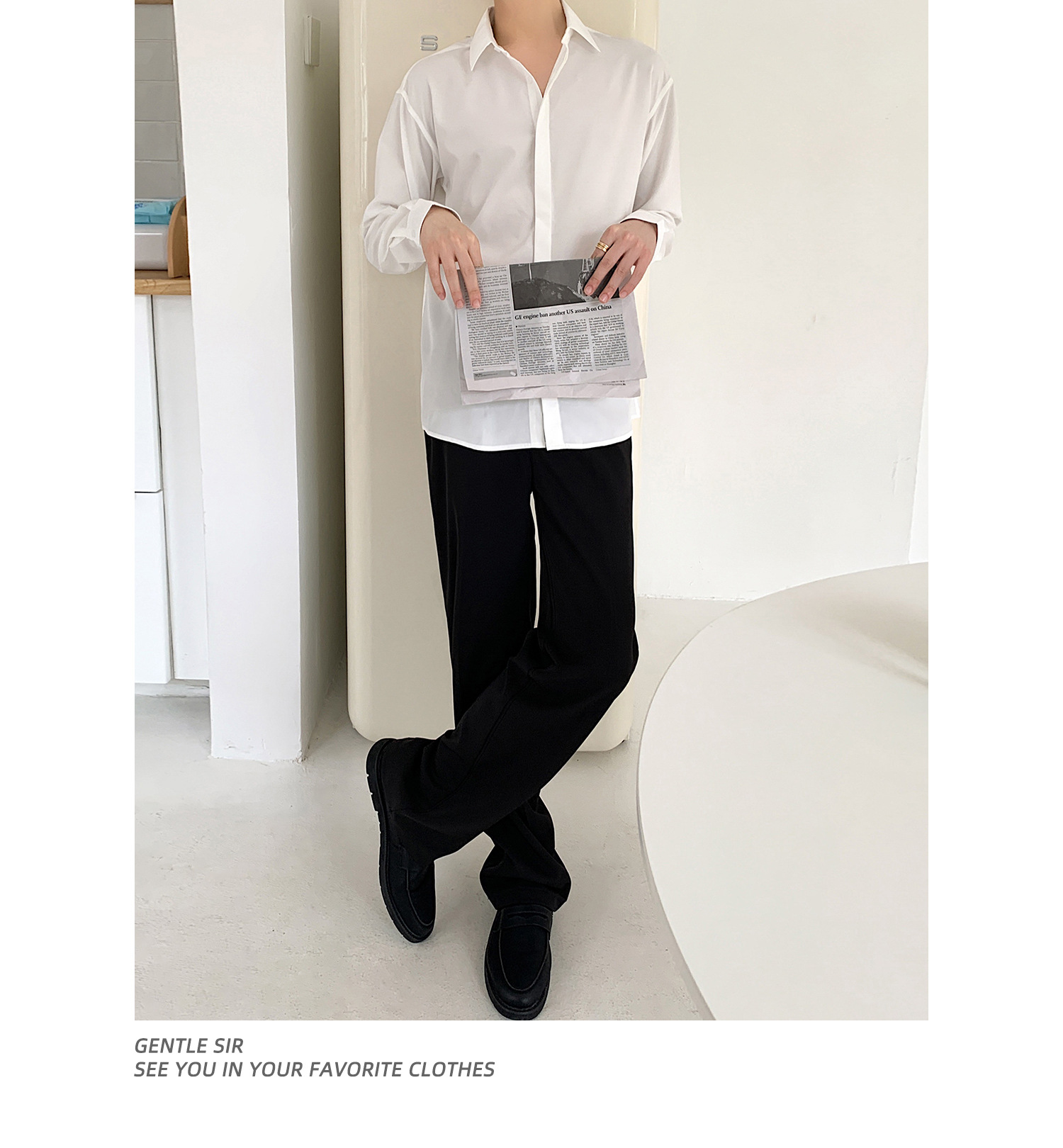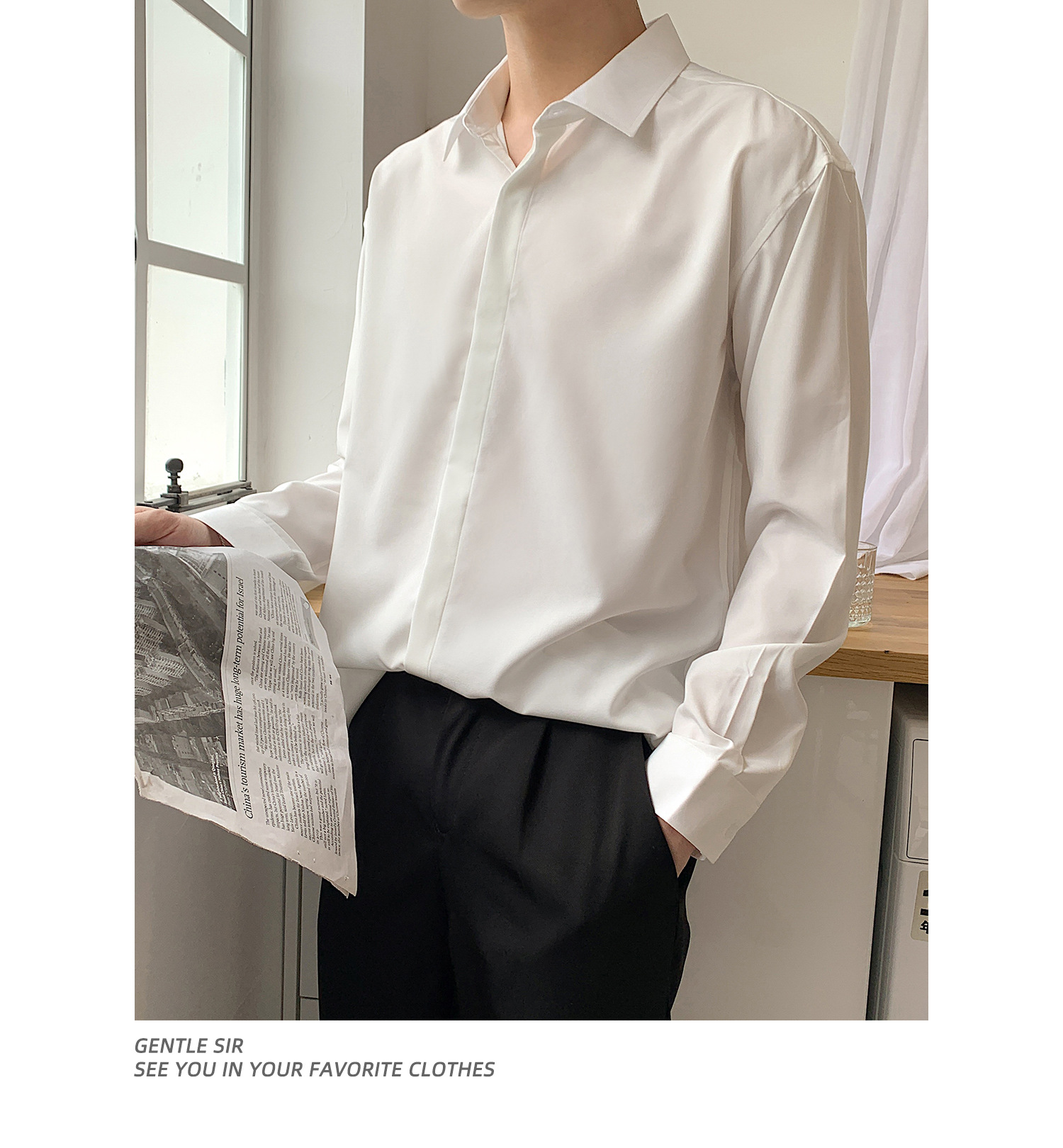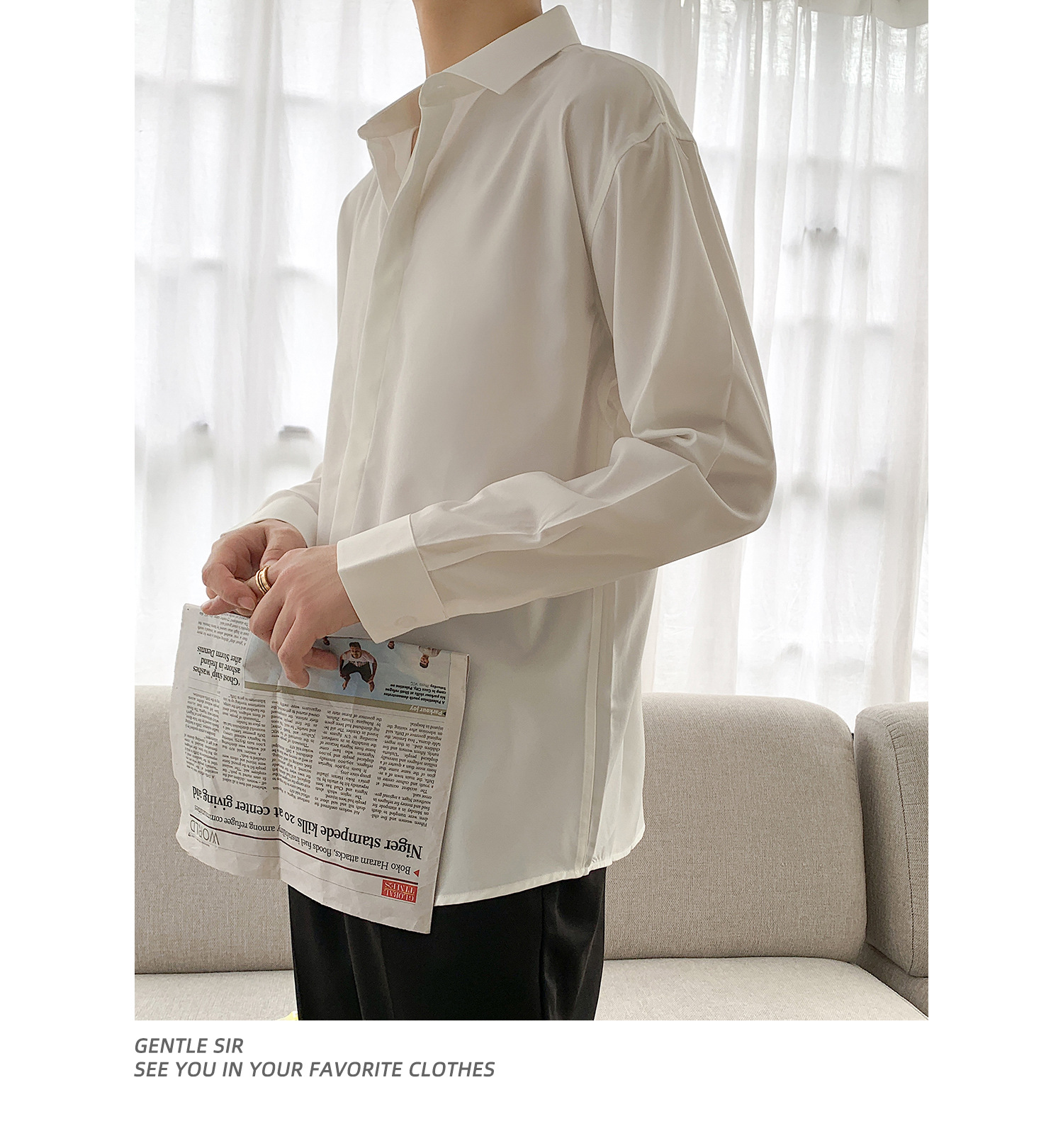 고급 화이트 셔츠 남자 긴팔 세트 탑 남자 캐주얼 느슨한 아이스 실크 셔츠 얇은 주름