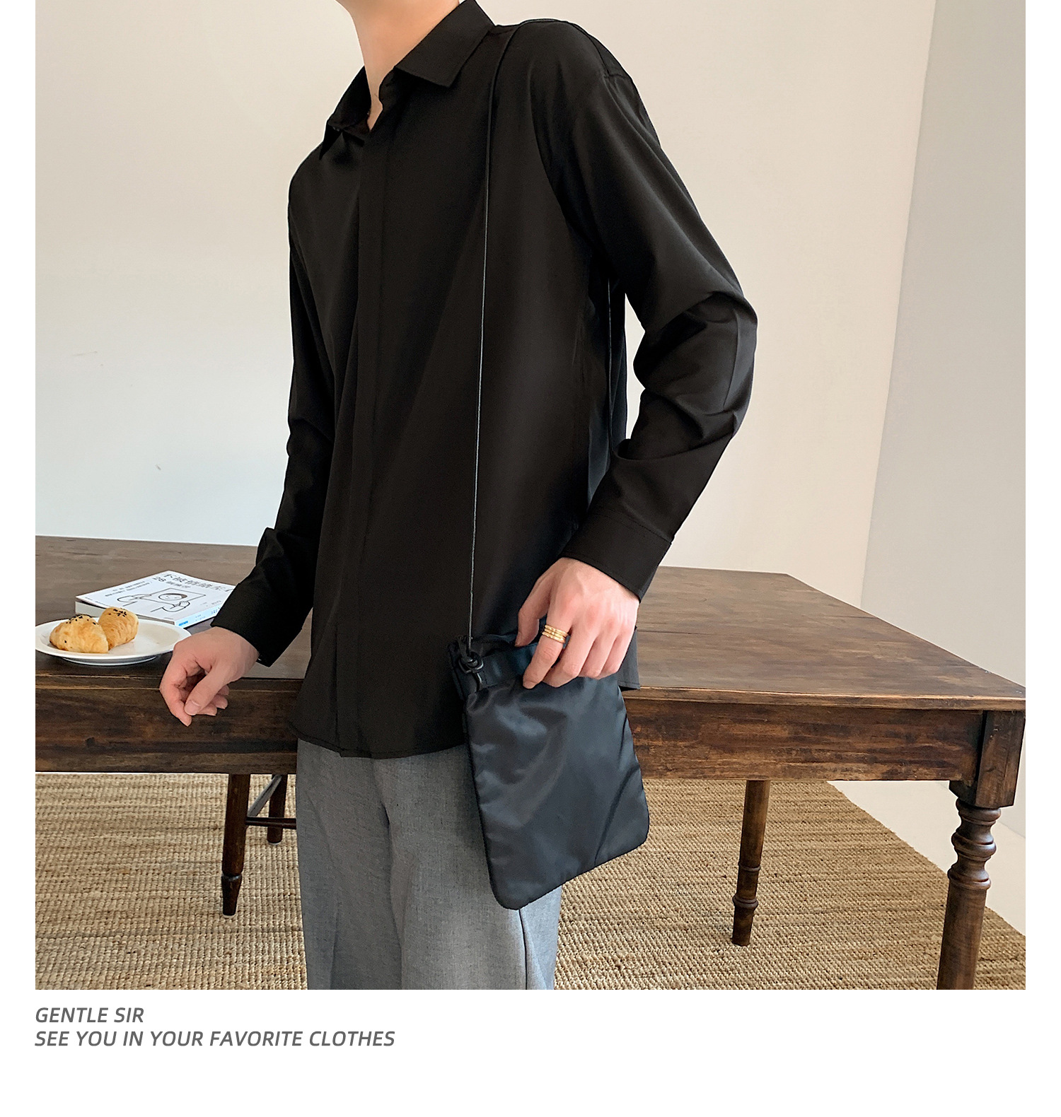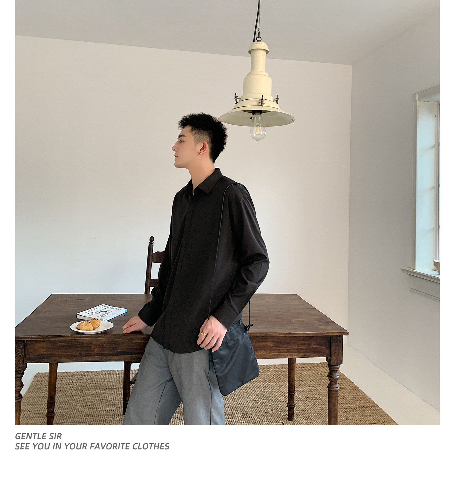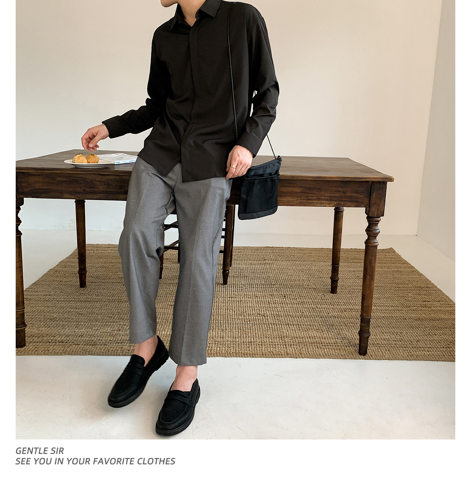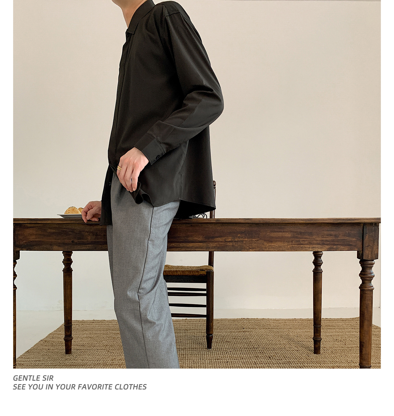 고급 화이트 셔츠 남자 긴팔 세트 탑 남자 캐주얼 느슨한 아이스 실크 셔츠 얇은 주름