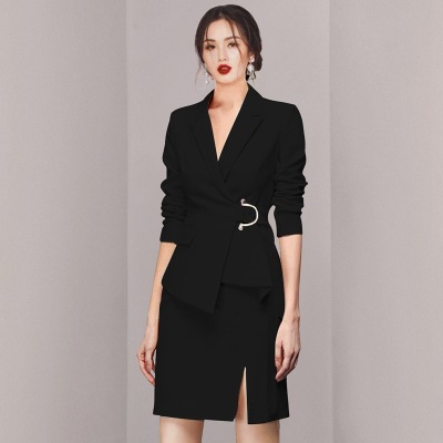니치 불규칙한 타이트 허리 핸섬 세트 세트 여성 가을 2024 새로운 스타일 작은 하이 스커트 투피스 세트