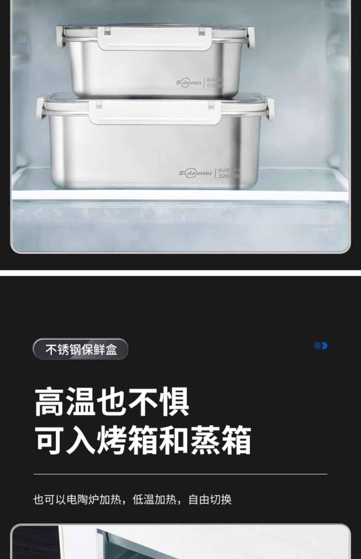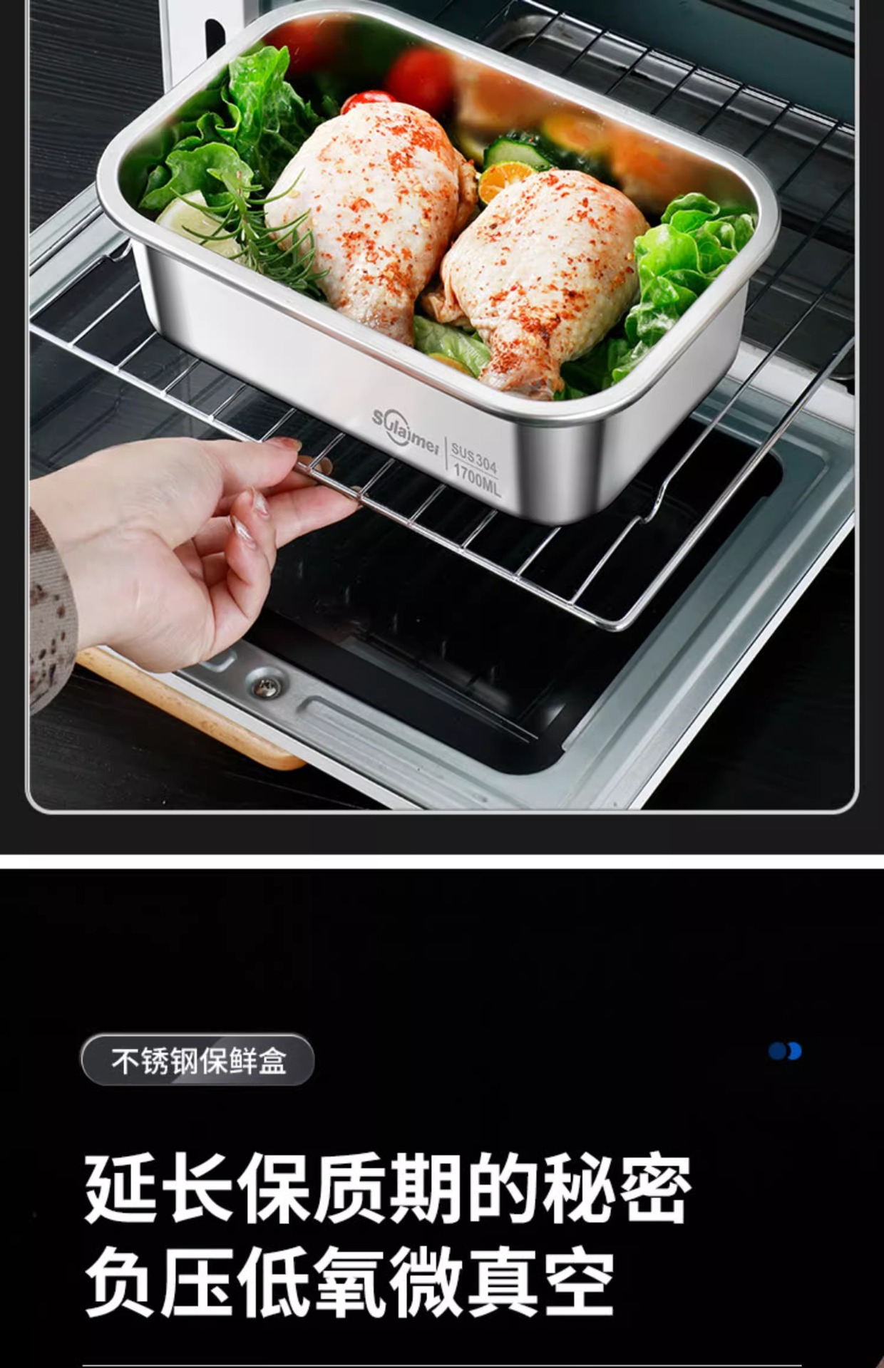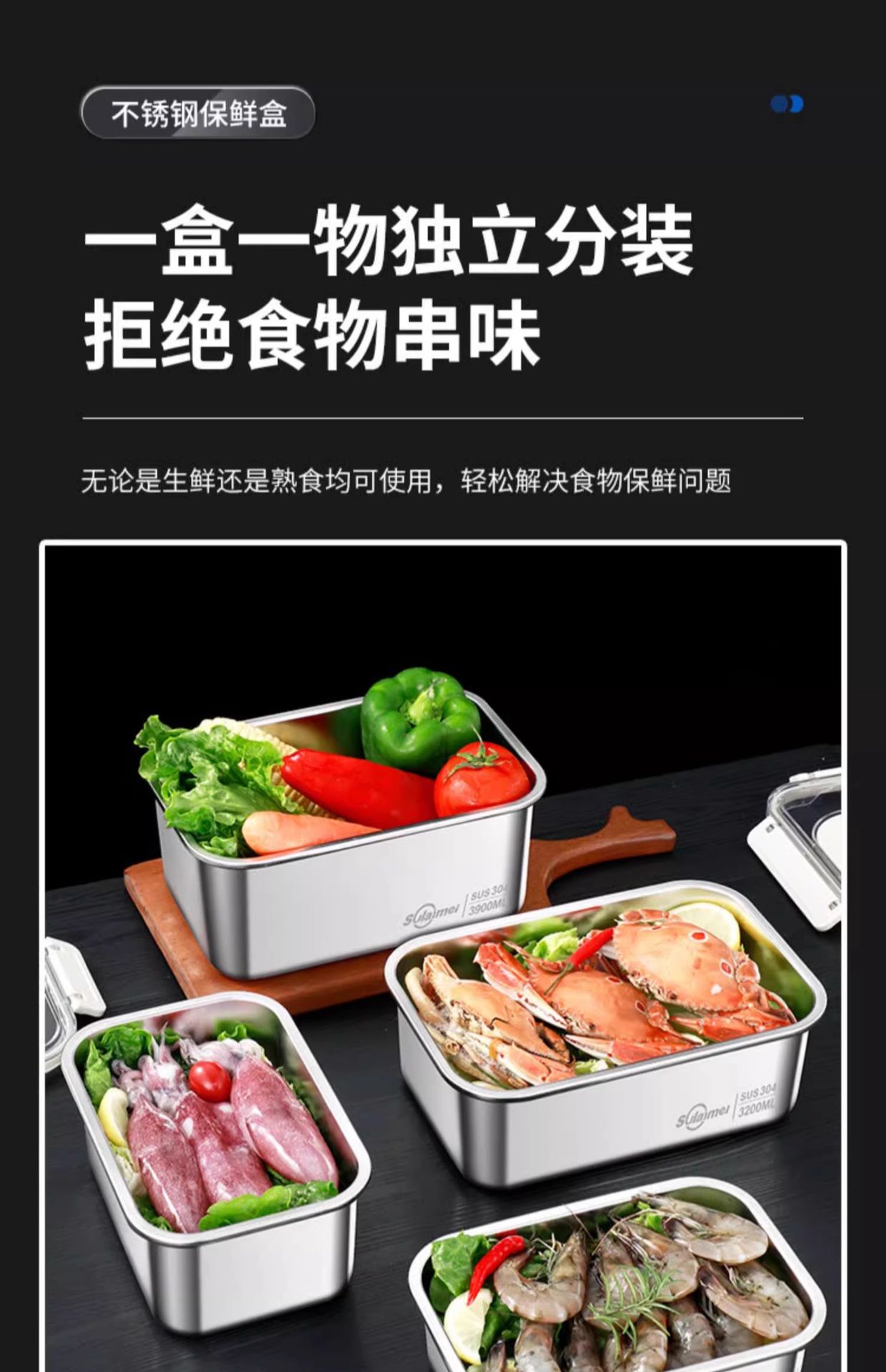 직사각형 304 스테인레스 스틸 크리스퍼 식품 등급 휴대용 냉장고 뚜껑 특수 밀봉 대용량 도시락 상자