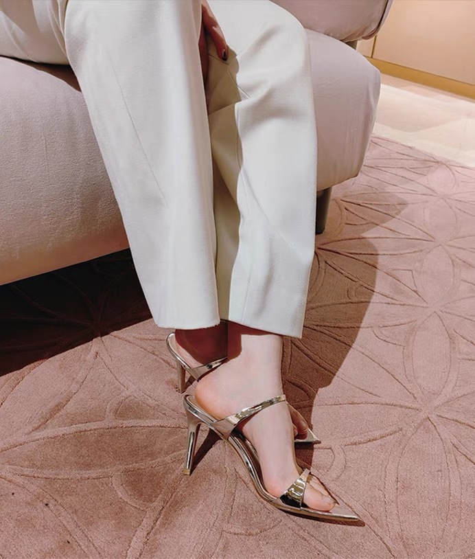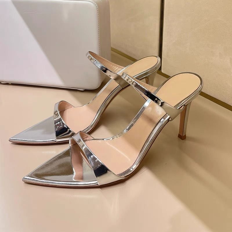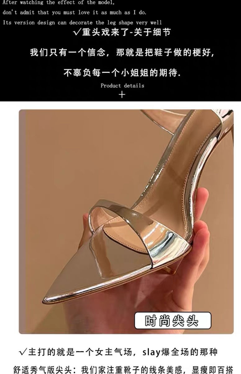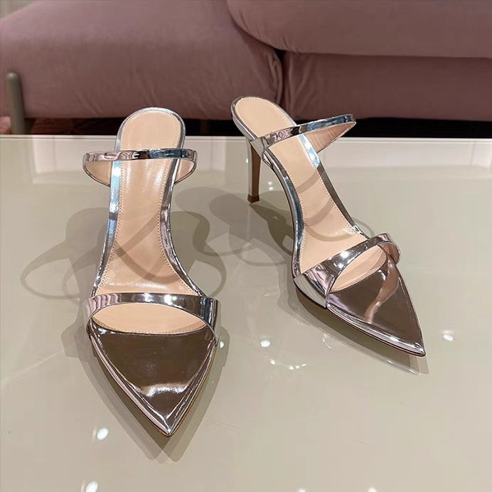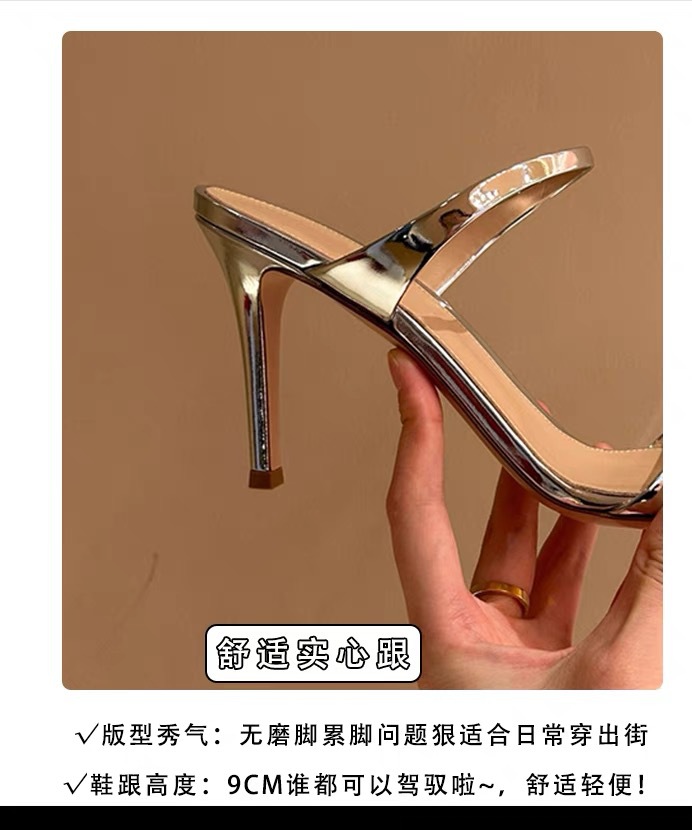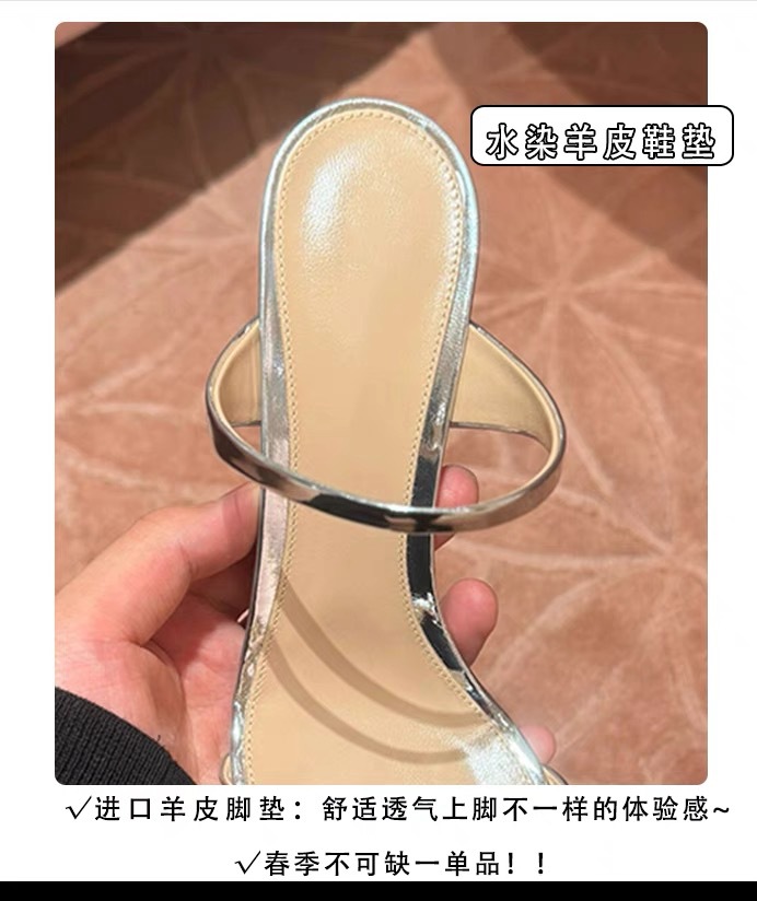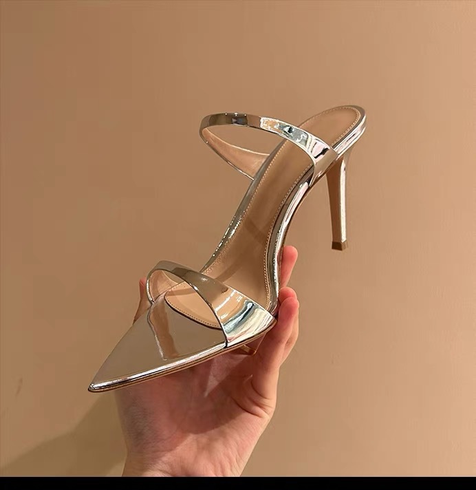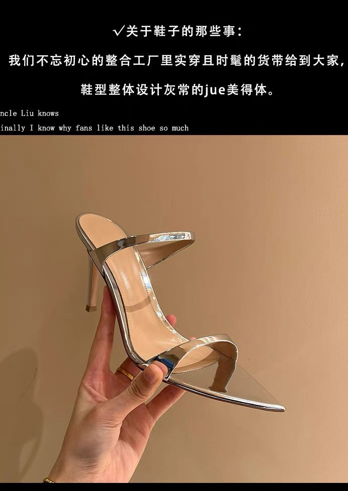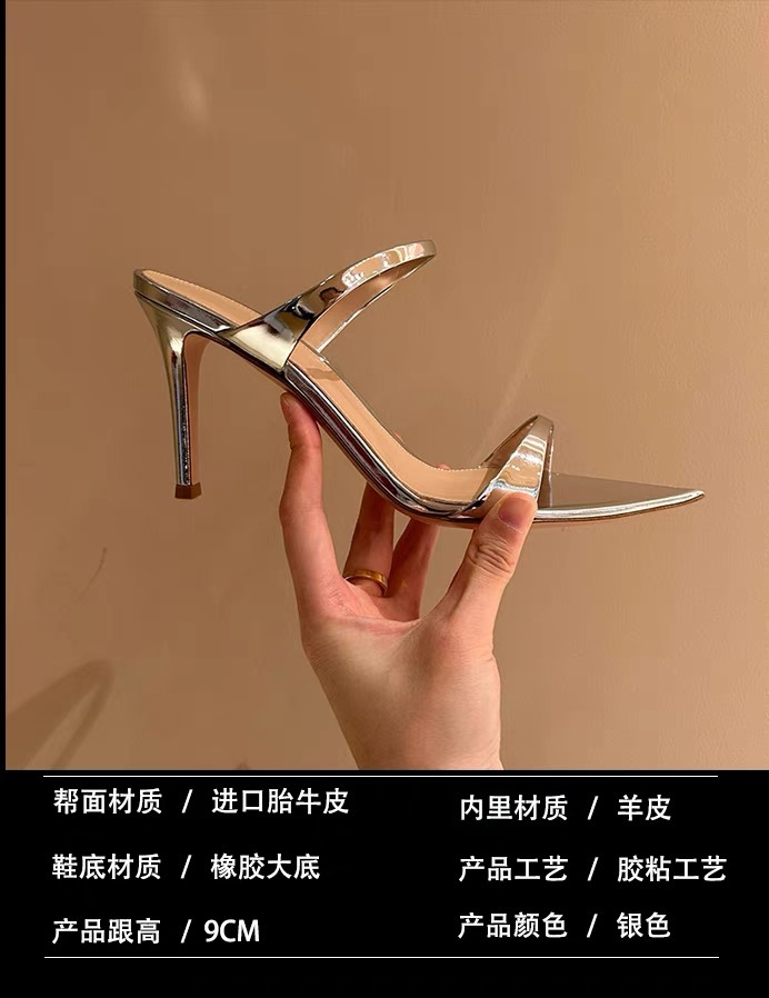 양가죽 버전 ~ 실버 뾰족한 발가락 스틸레토 힐 2025 여름 새로운 스타일 아름다운 기질 샌들과 여성이 절묘하게 착용 가능스토어 가기