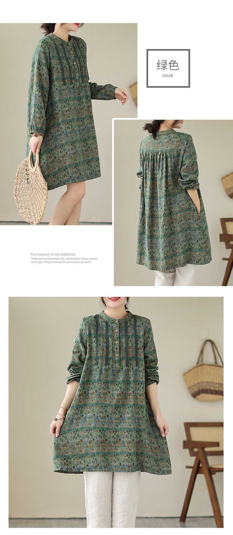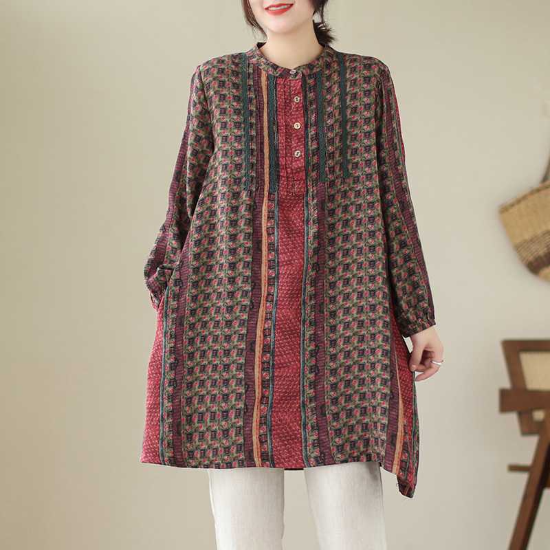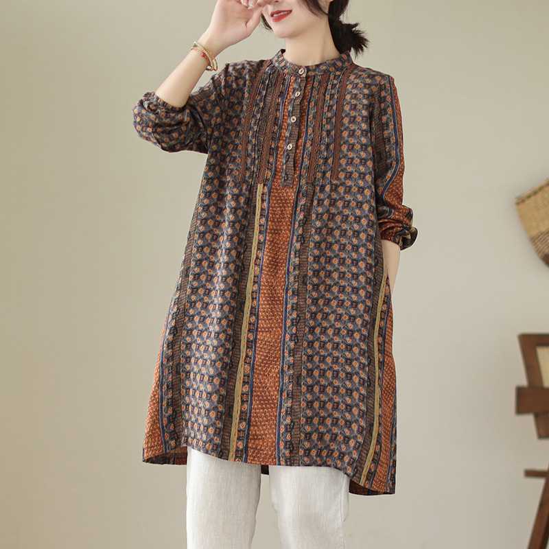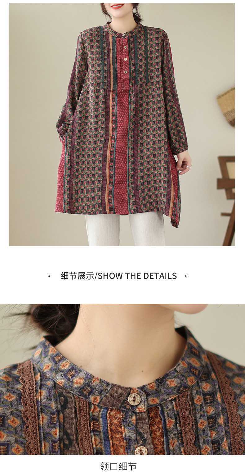 새로운 예술적 달콤한 장기 주름 레이스 셔츠 여성 중장 리넨 풀오버 긴팔 원피스스토어 가기
