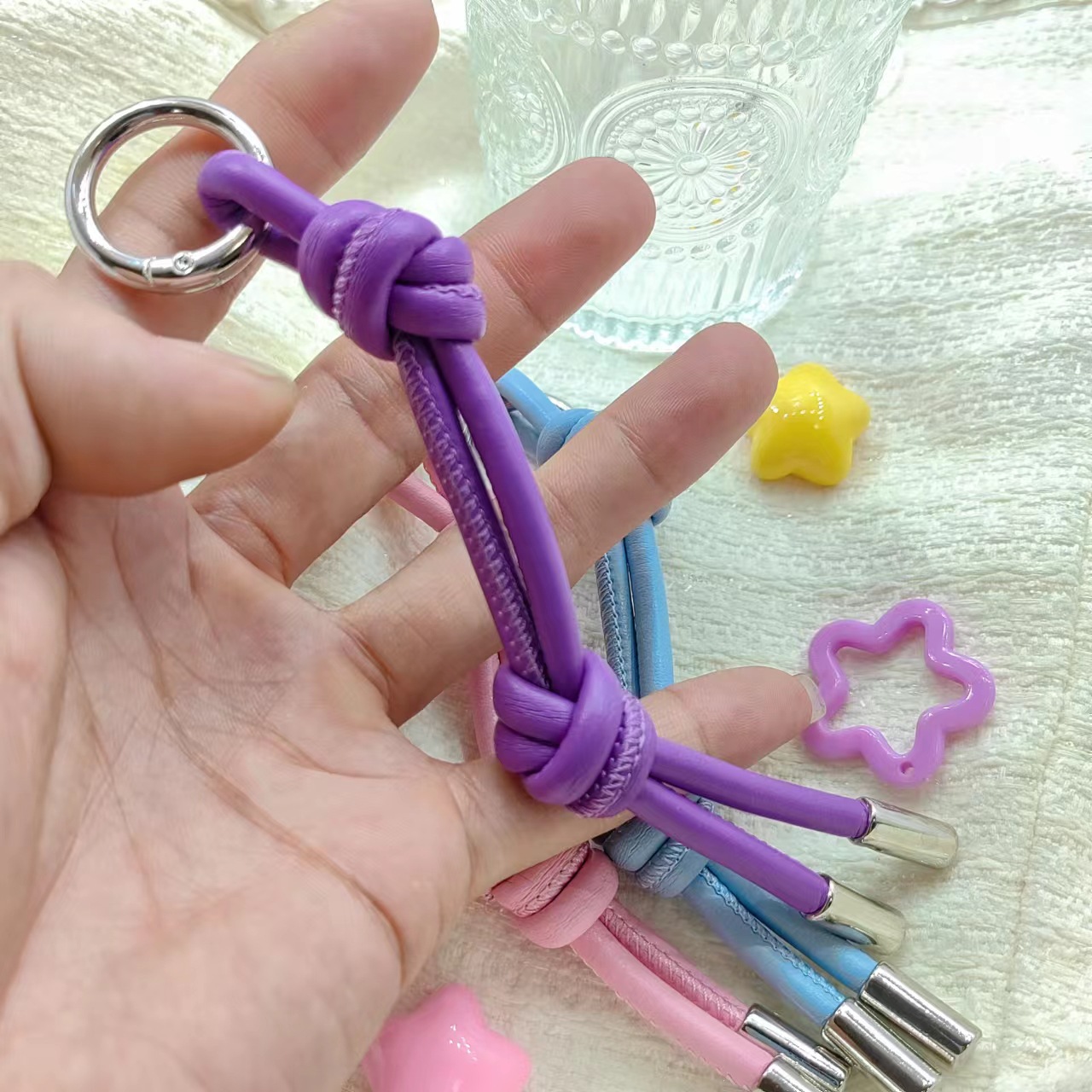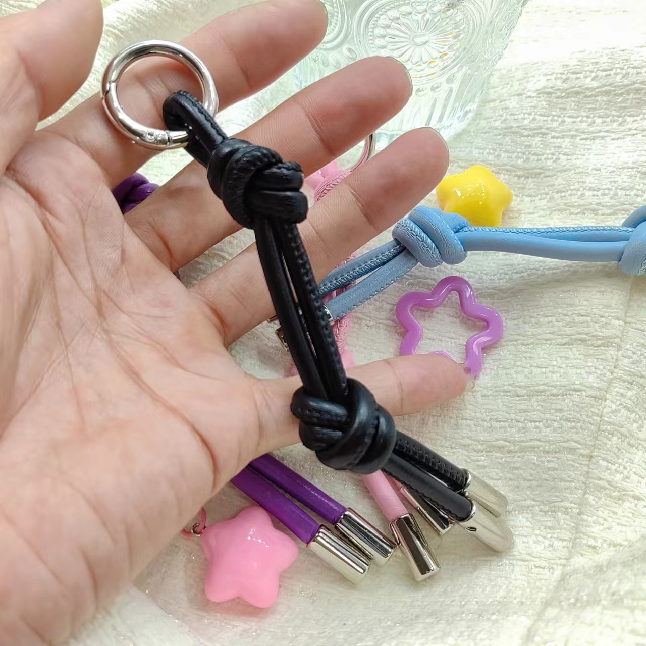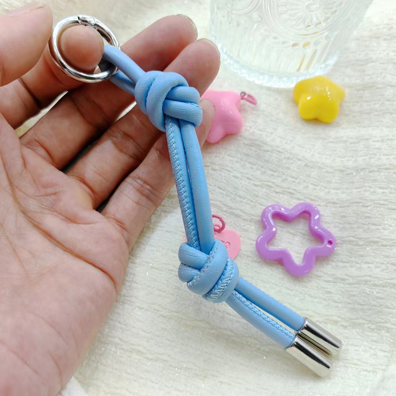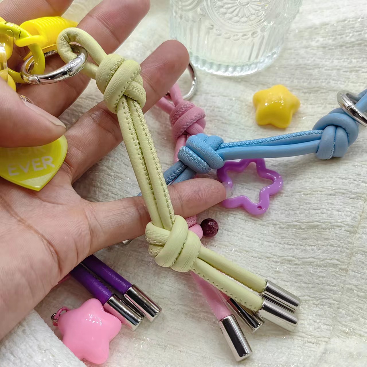새로운 틈새 간단한 캔디 컬러 가죽 로프 짠 키 체인 가방 펜던트 인 커플 매달려 체인 올 매치 캐주얼