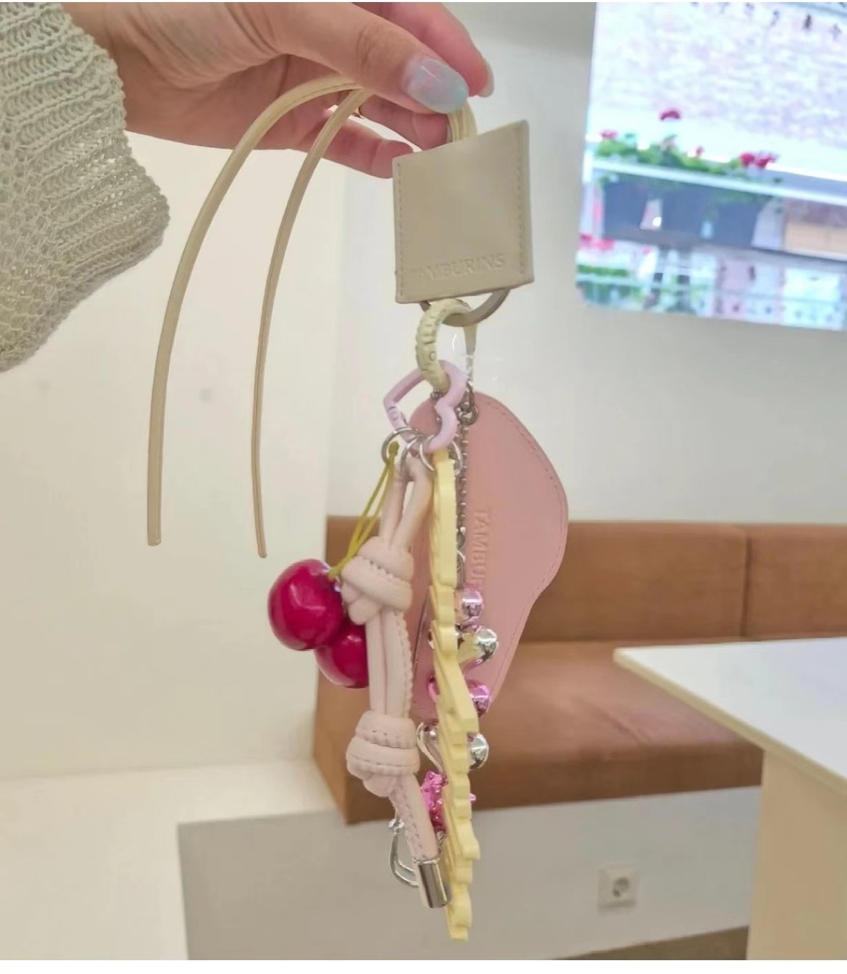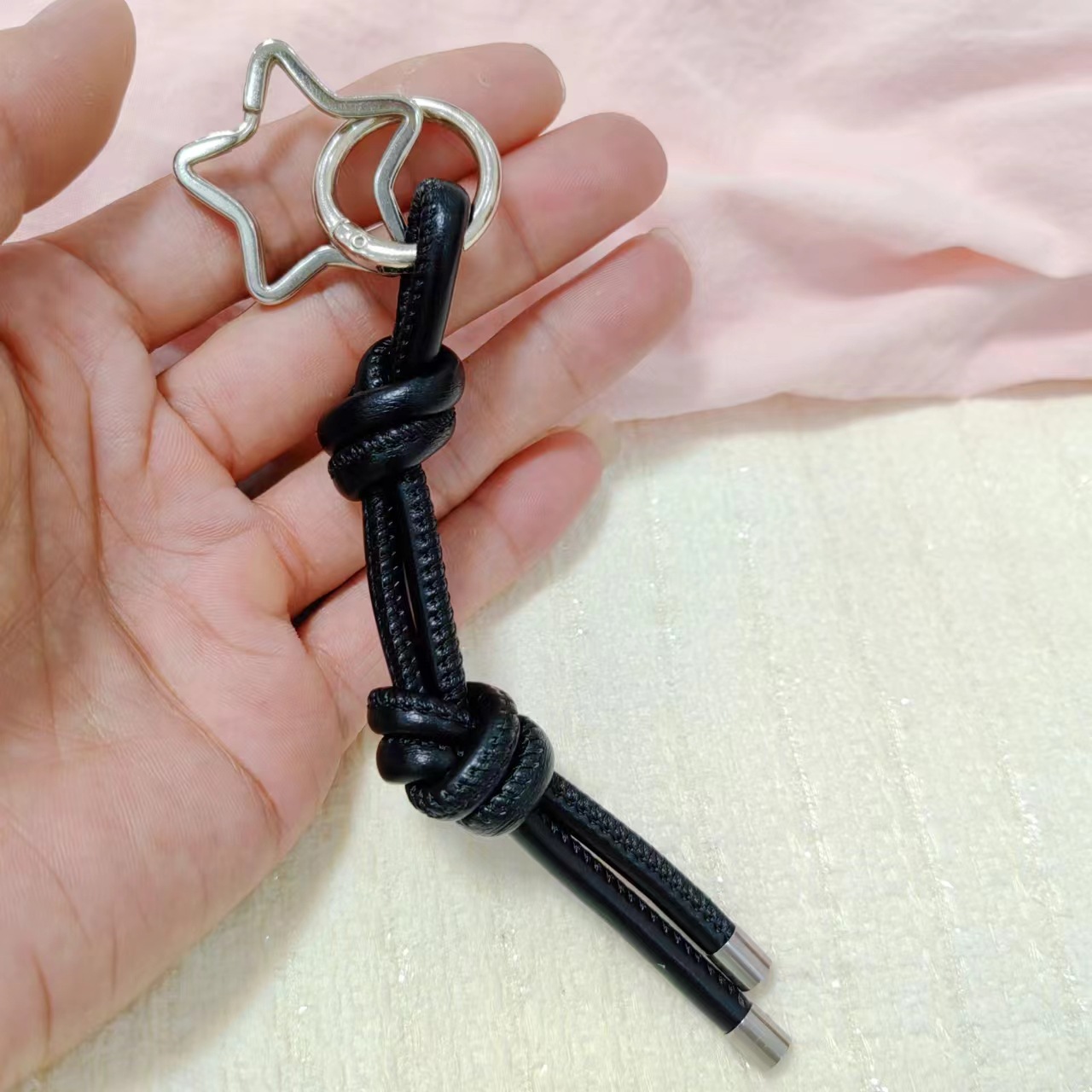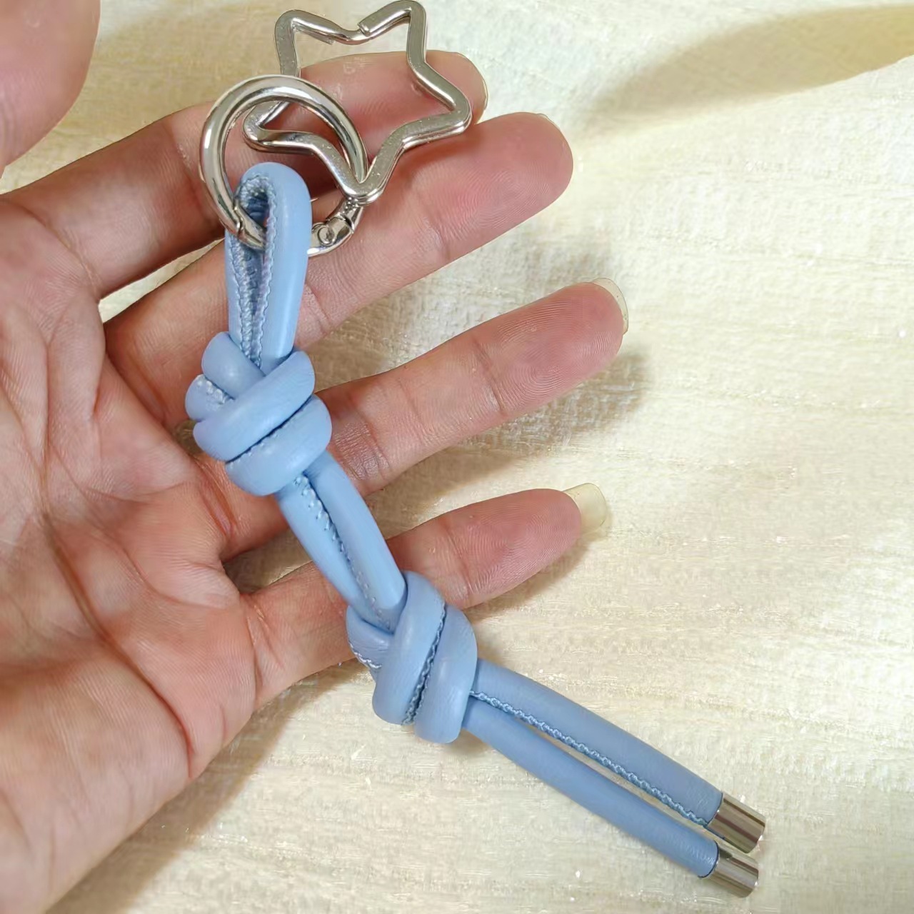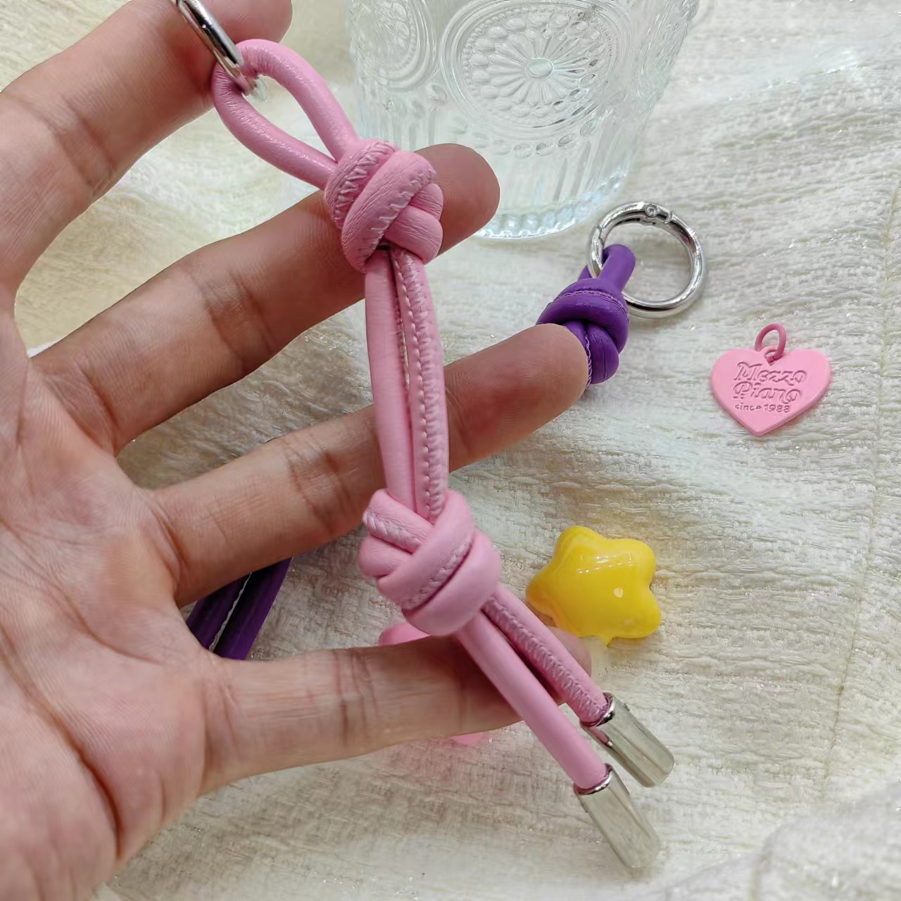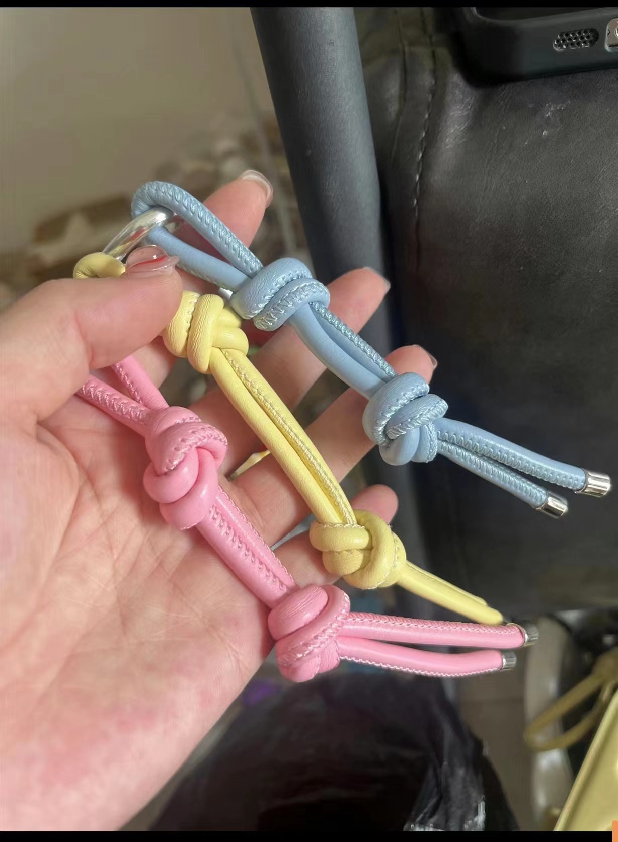 새로운 틈새 간단한 캔디 컬러 가죽 로프 짠 키 체인 가방 펜던트 인 커플 매달려 체인 올 매치 캐주얼