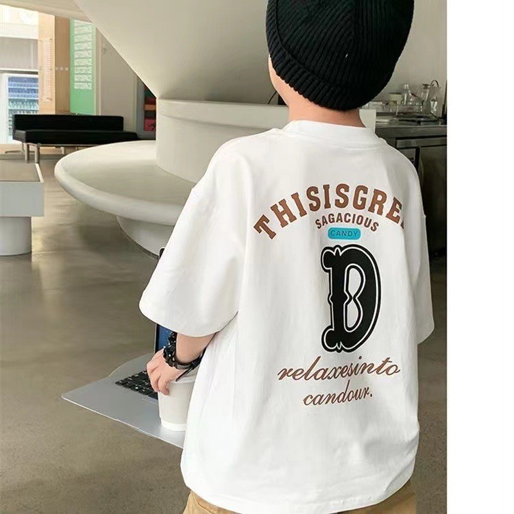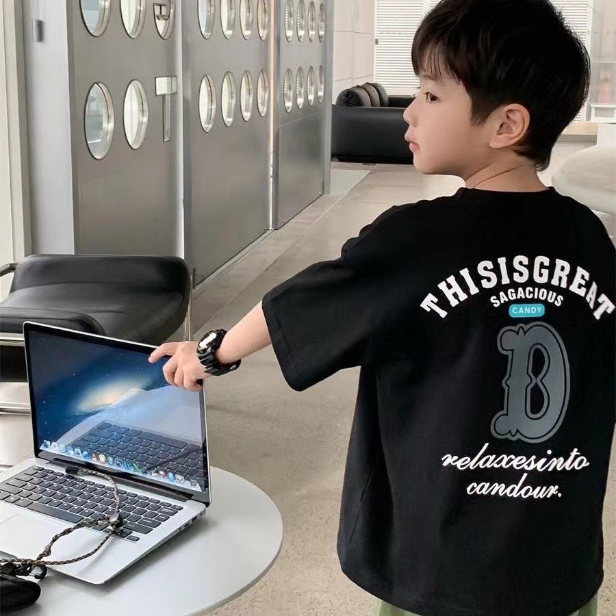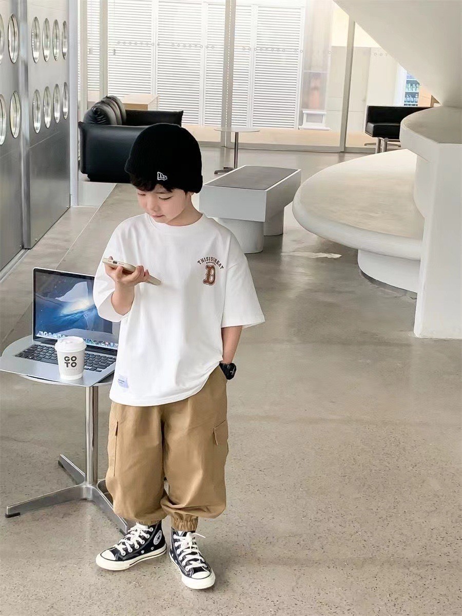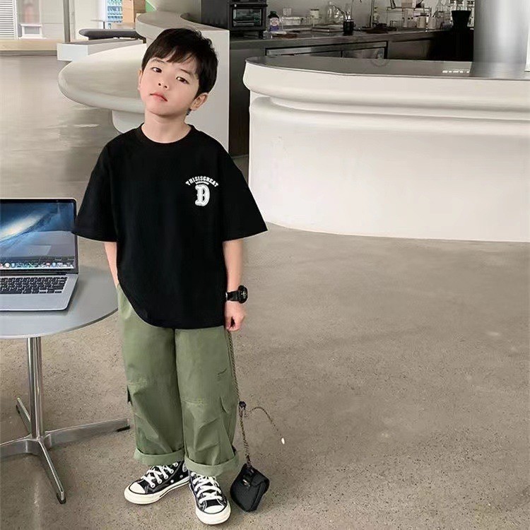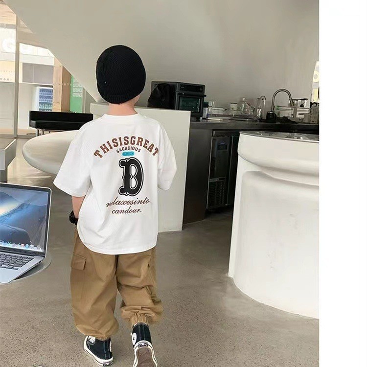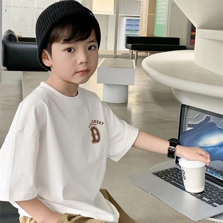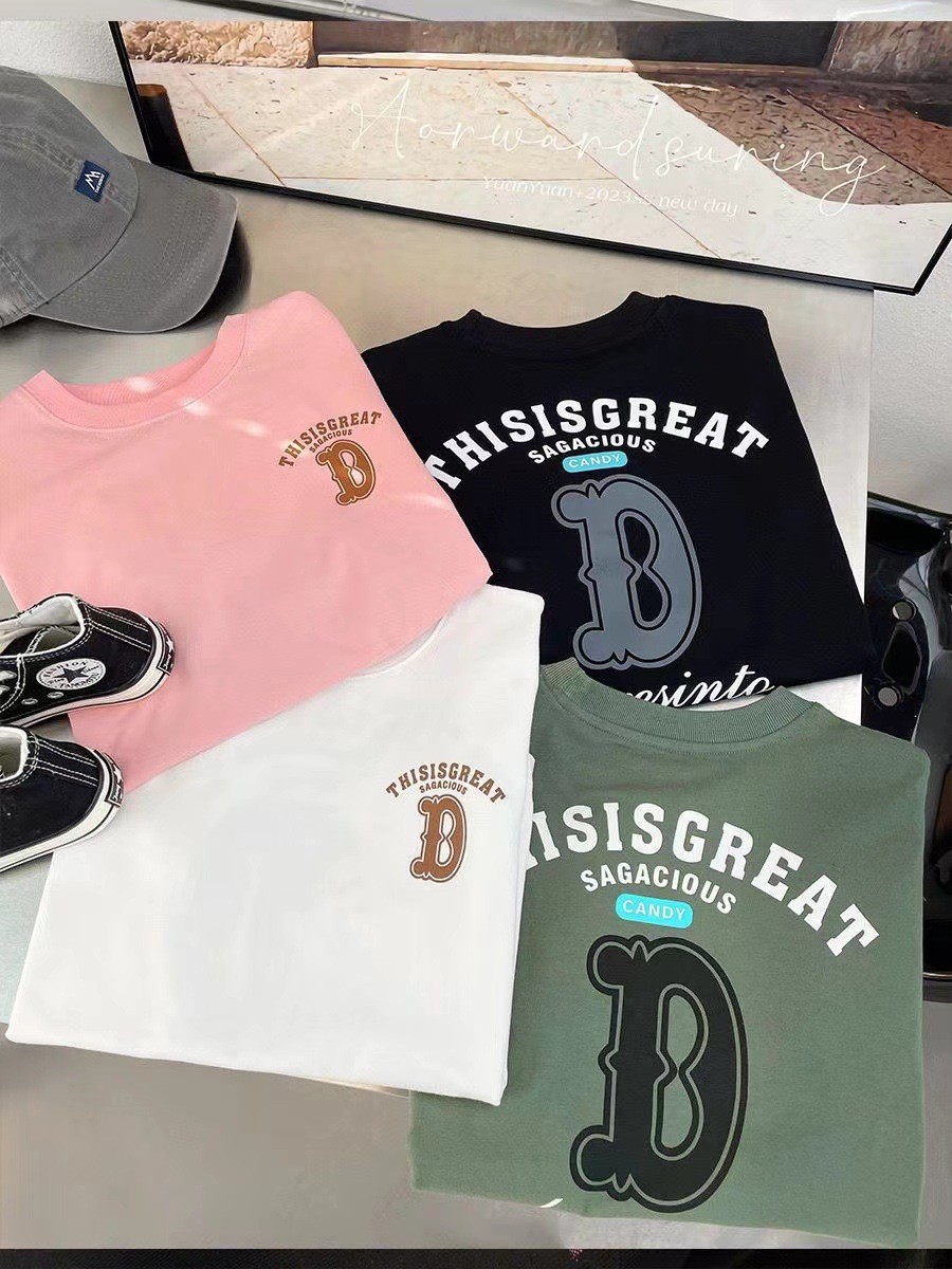 남자와 여자의 아기 스타일리스트 순면 반팔 티셔츠 편지 인쇄 여름 스타일리스트 느슨한 올 매치 옷 T스토어 가기