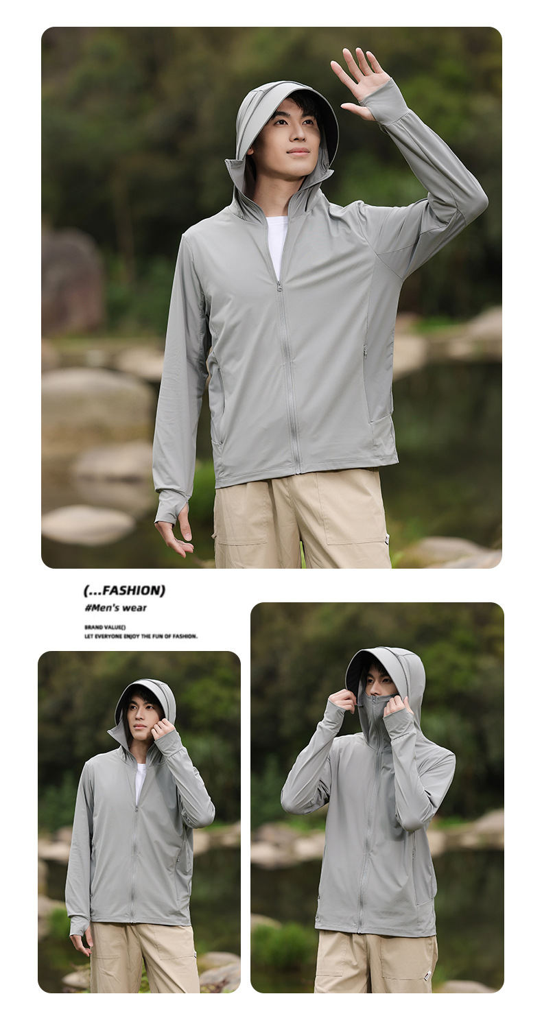 아이스 실크 태양 보호 의류 남성 야외 자외선 보호 여름 빠른 건조 낚시 의류 시원한 느낌 큰 모자 태양 보호 의류 여성용 얇은