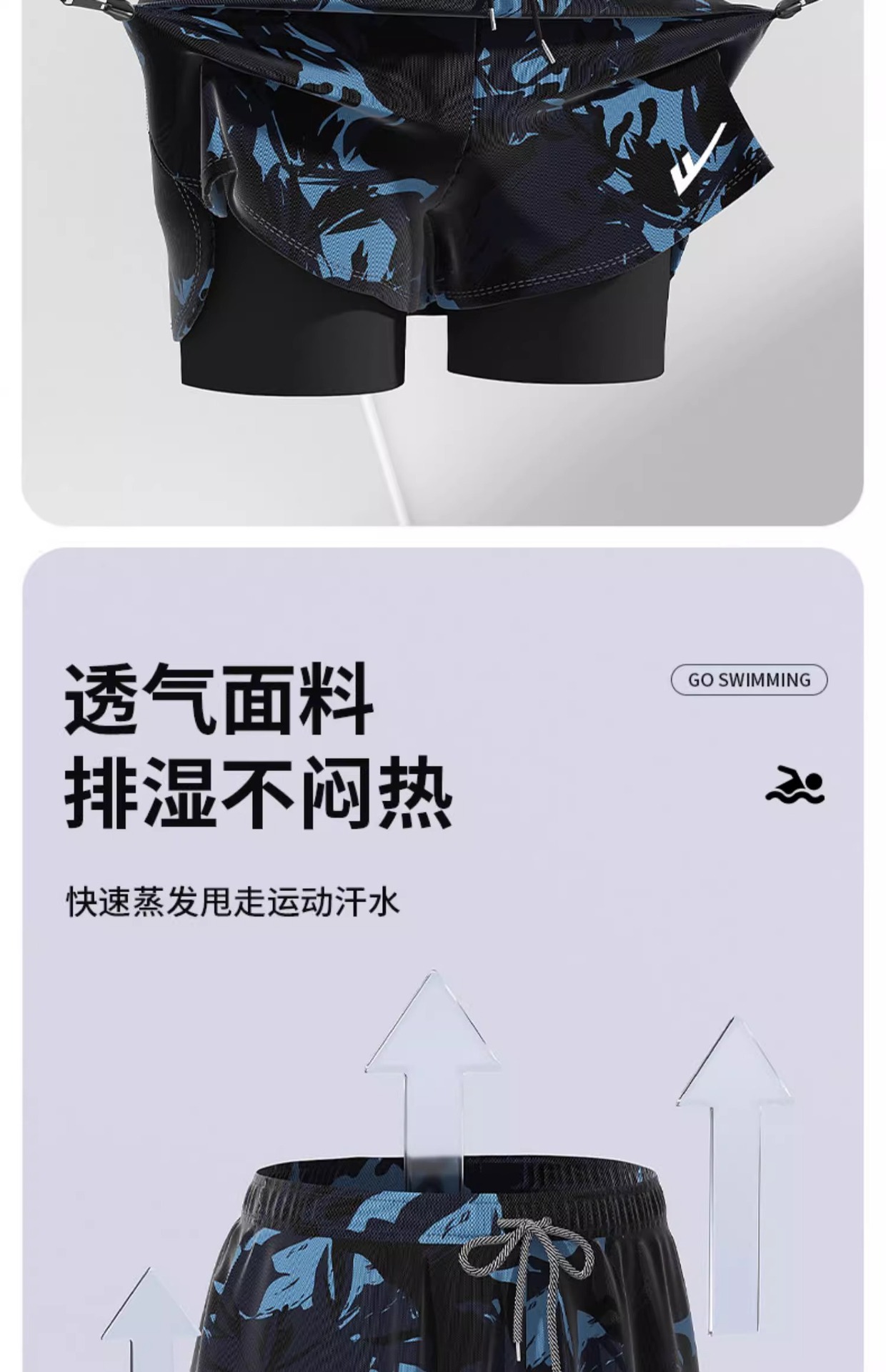 남성용 헤이리 수영복 2026년 신형 전문가용 이중 레이어 속건성 수영 팬츠, 부끄러움 방지 비치 팬츠 수영 장비 세트스토어 가기