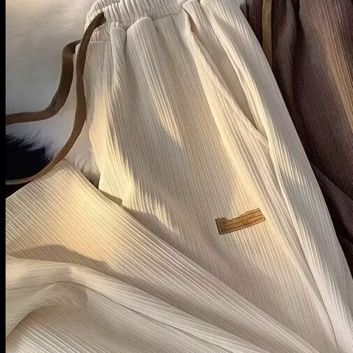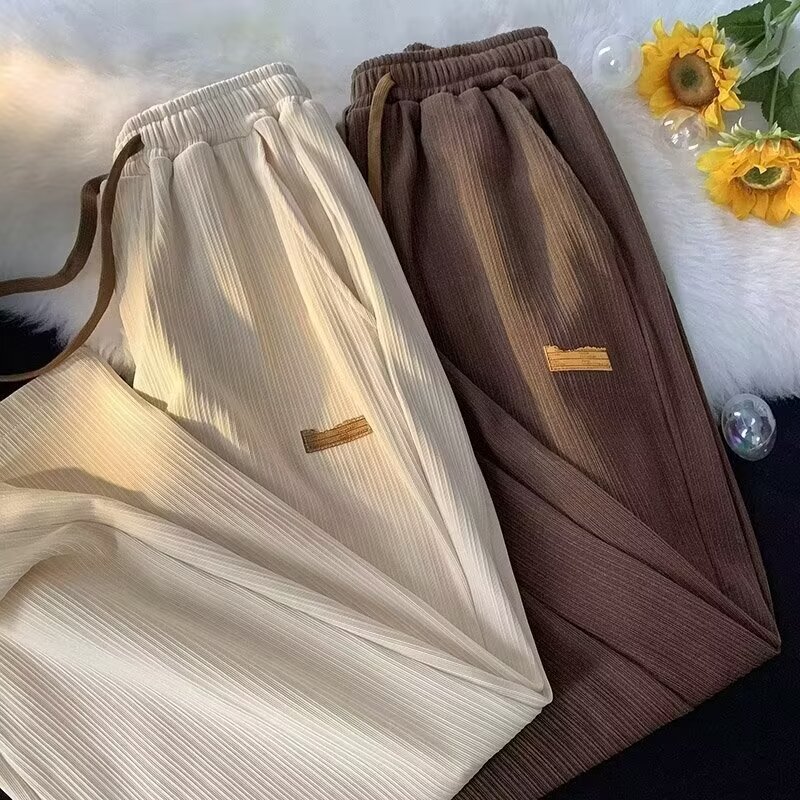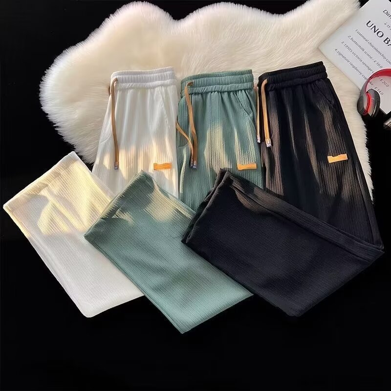 2024 새로운 도착 느슨한 캐주얼 바지 남자 한국 스타일 유행 올 매치 바지 여름 얇은 펜던트 와이드 레그 바지스토어 가기