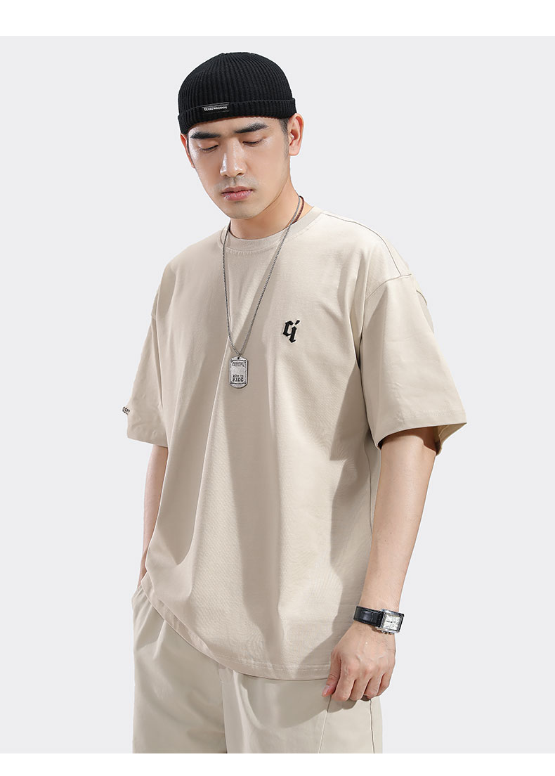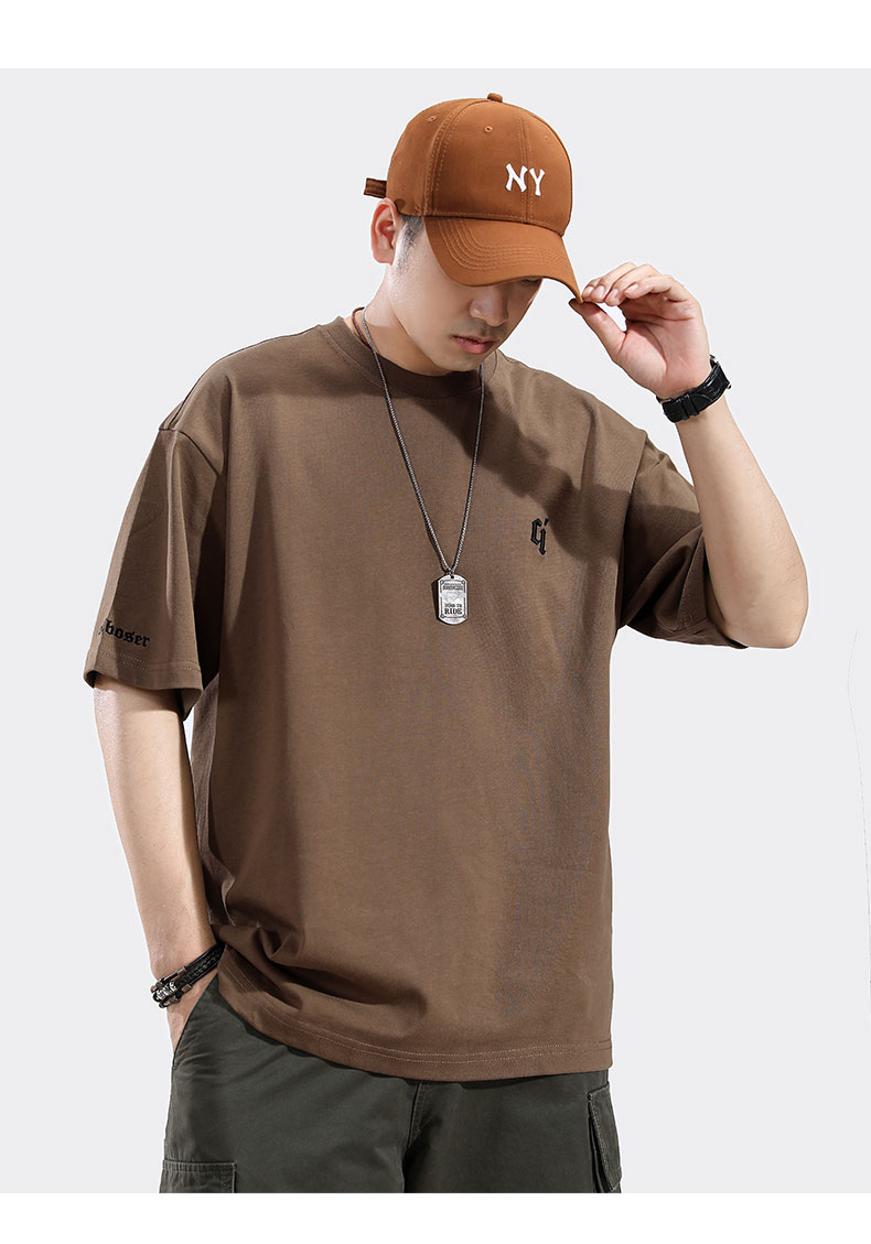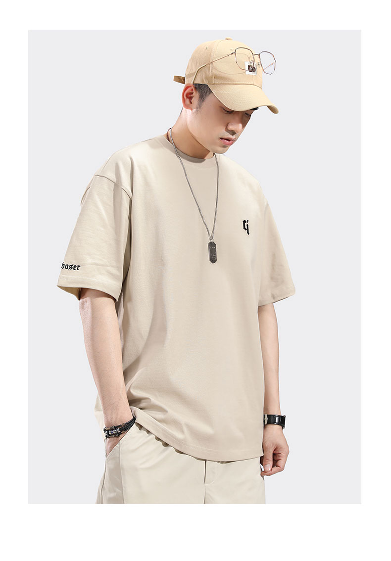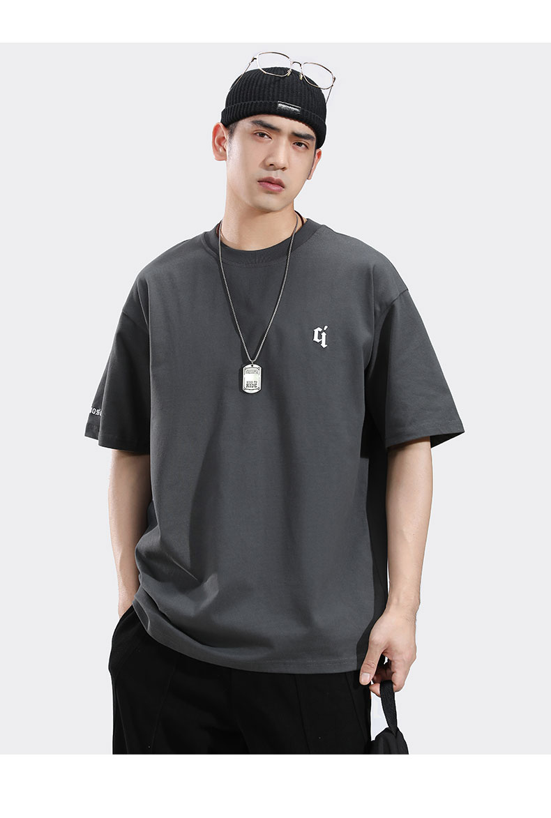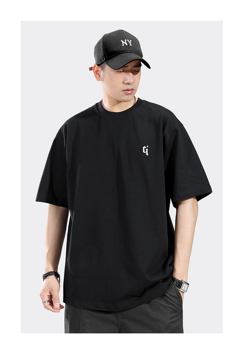 일본 300g 무거운 짧은 소매 티셔츠 남자의 여름 순면 작은 네어 자수 탑 3 바늘 반 소매 티셔츠 트렌디스토어 가기