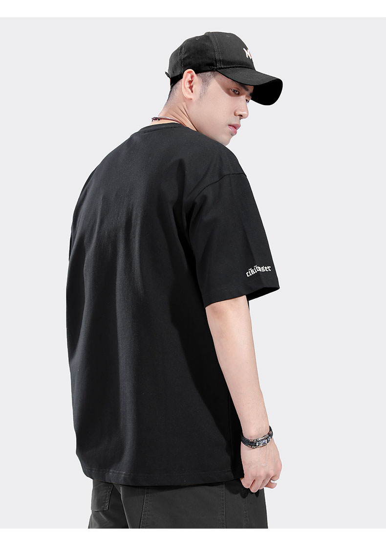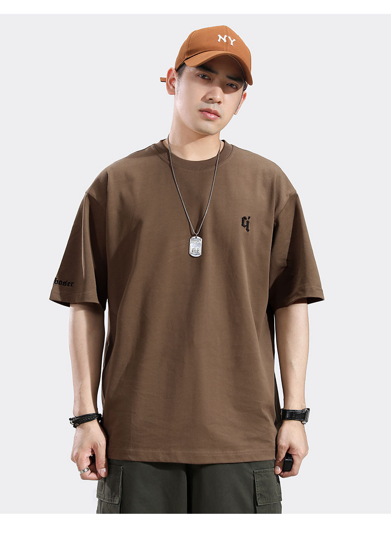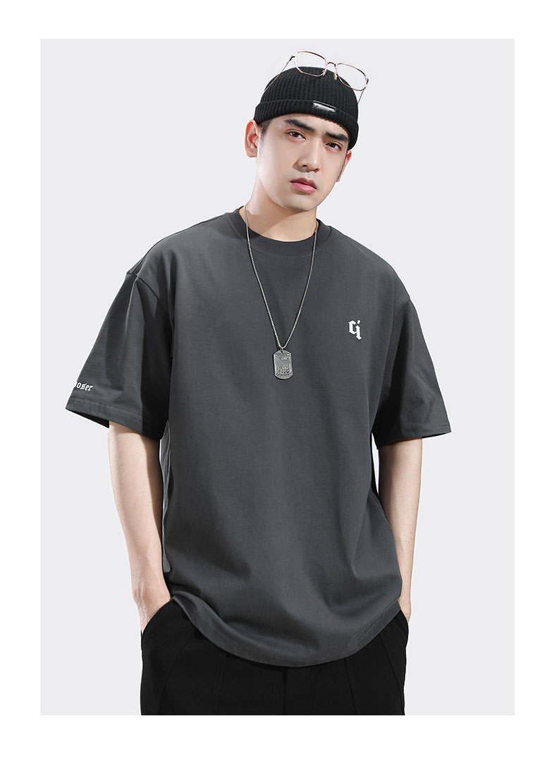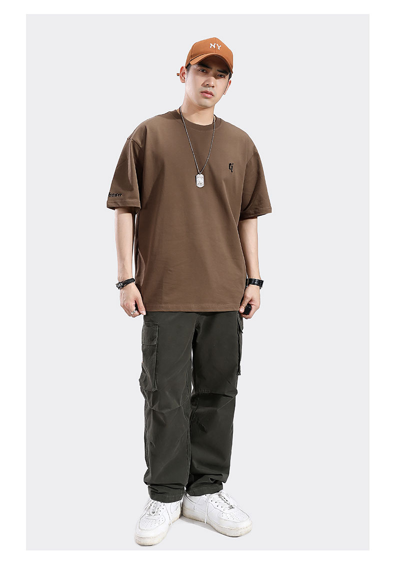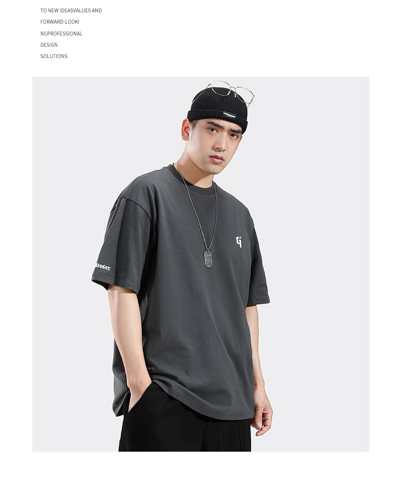 일본 300g 무거운 짧은 소매 티셔츠 남자의 여름 순면 작은 네어 자수 탑 3 바늘 반 소매 티셔츠 트렌디스토어 가기