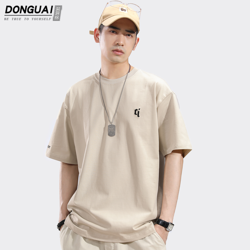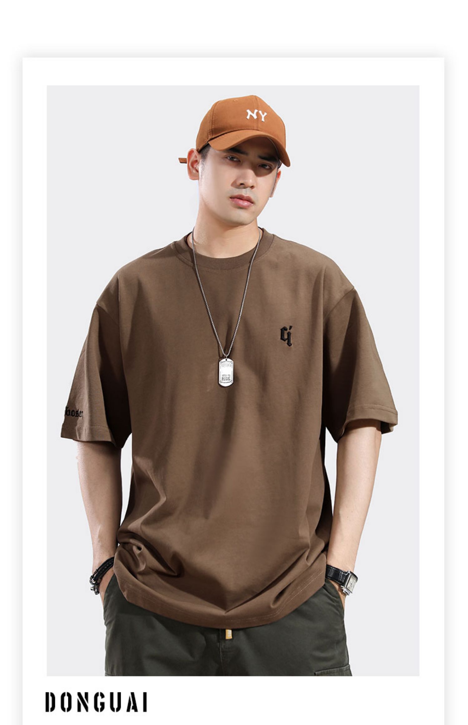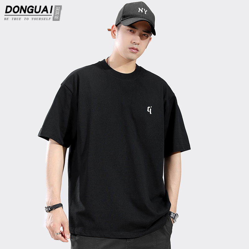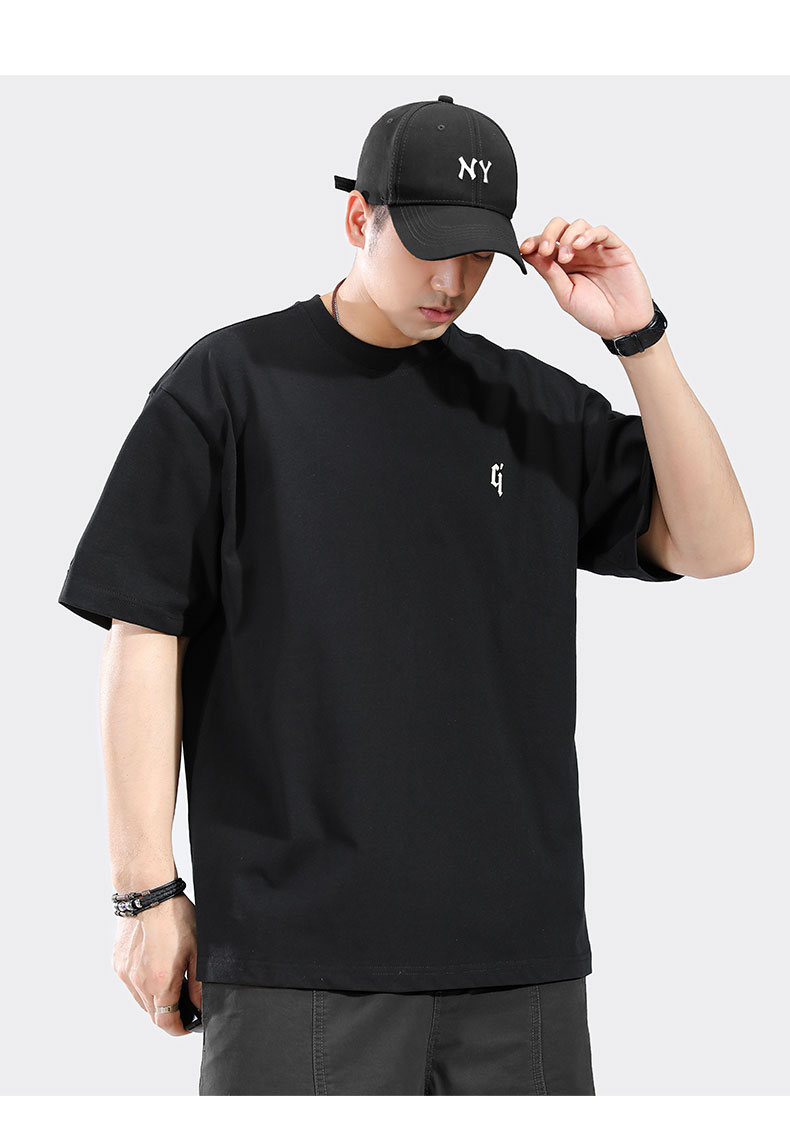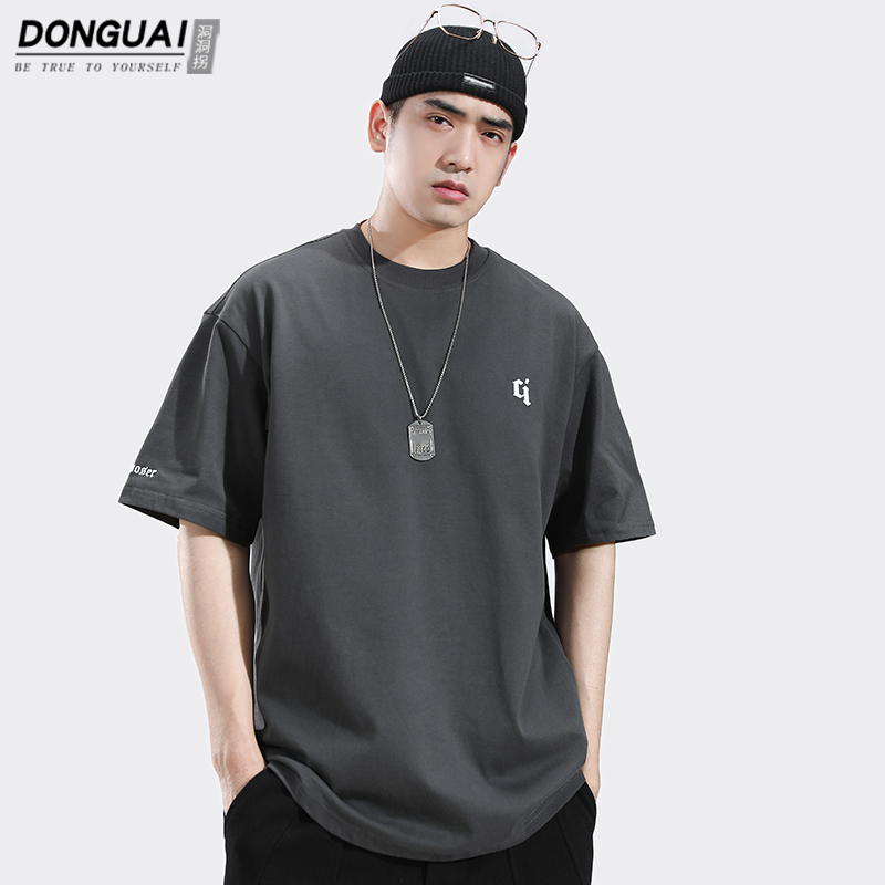 일본 300g 무거운 짧은 소매 티셔츠 남자의 여름 순면 작은 네어 자수 탑 3 바늘 반 소매 티셔츠 트렌디