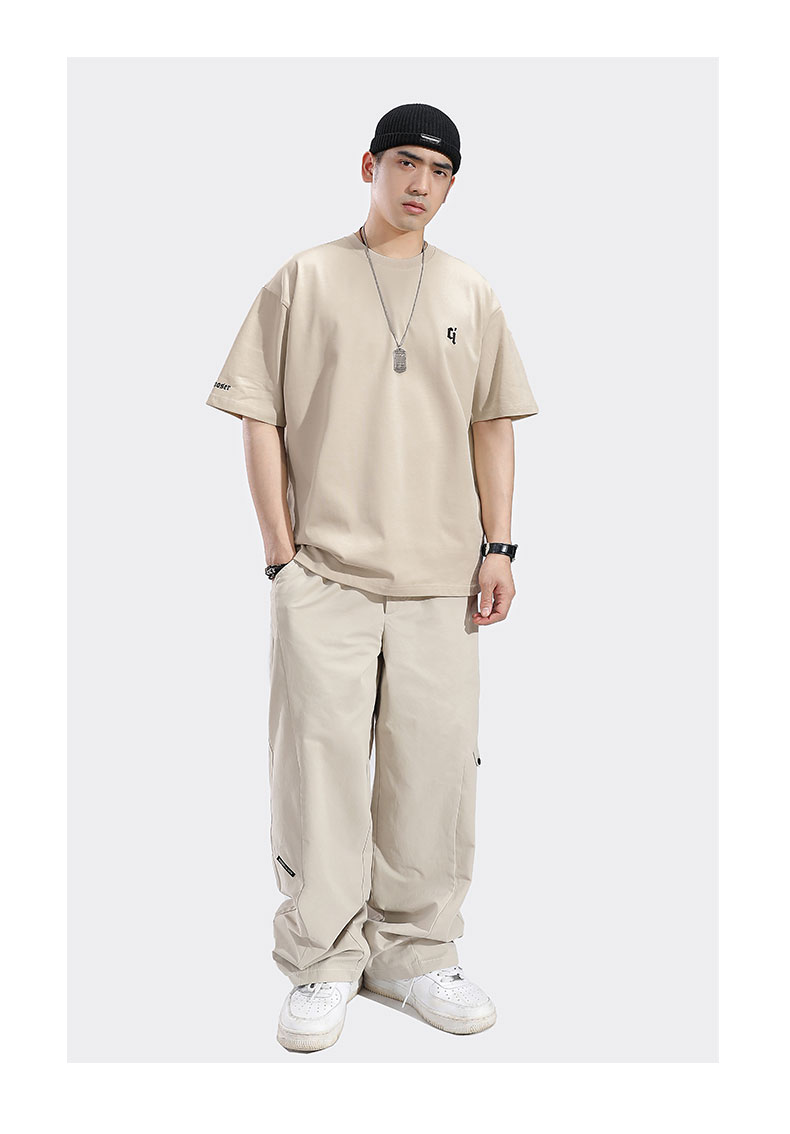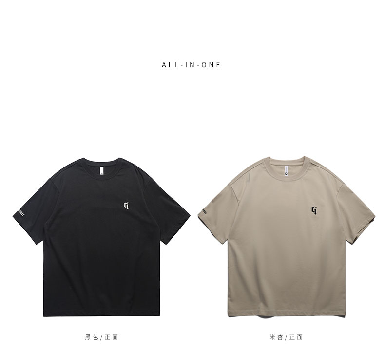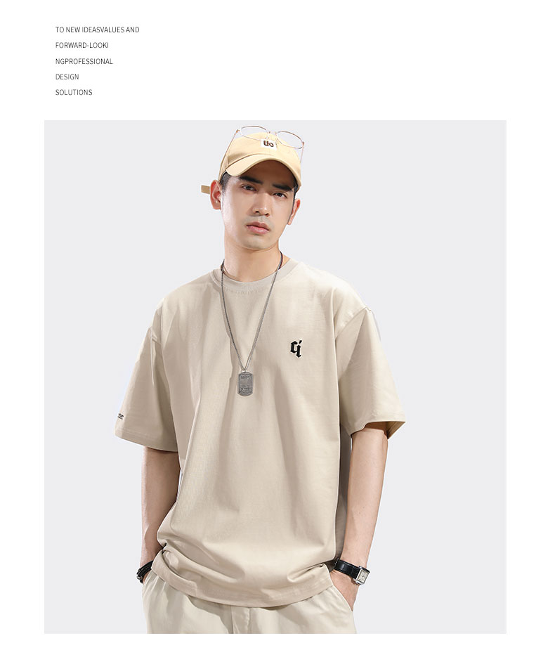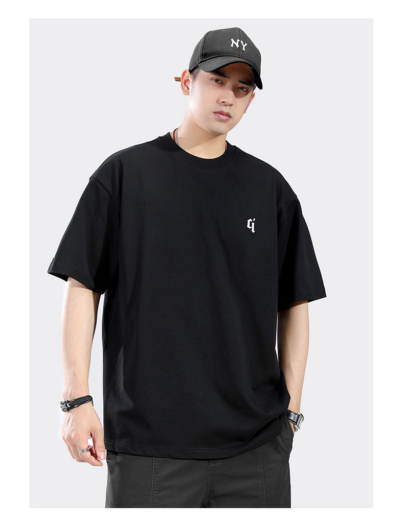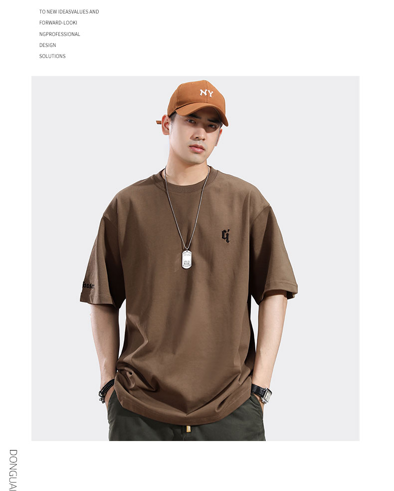 일본 300g 무거운 짧은 소매 티셔츠 남자의 여름 순면 작은 네어 자수 탑 3 바늘 반 소매 티셔츠 트렌디