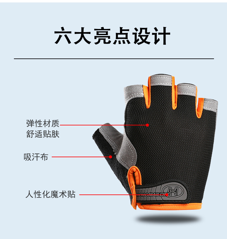 스포츠 장갑 반 손가락 남녀 미끄럼 통기성 사이클링 야외 피트니스 여름 얇은 손가락 반 장갑 도매