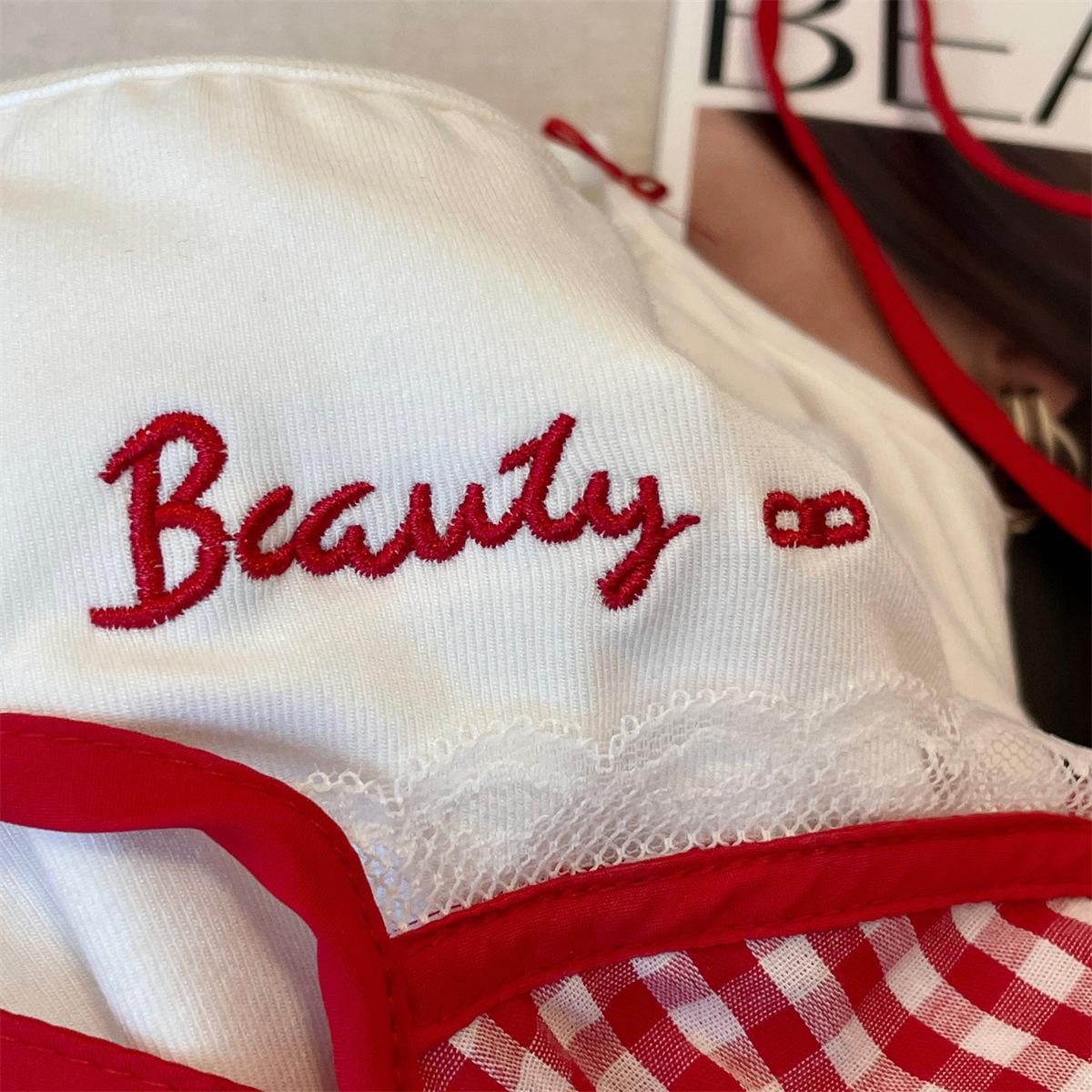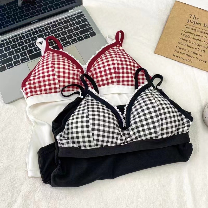 미국식 순수한 욕망 투피스 격자 무늬 카미솔 여성용 자수 레이스 이너 탑 핫 스타일스토어 가기