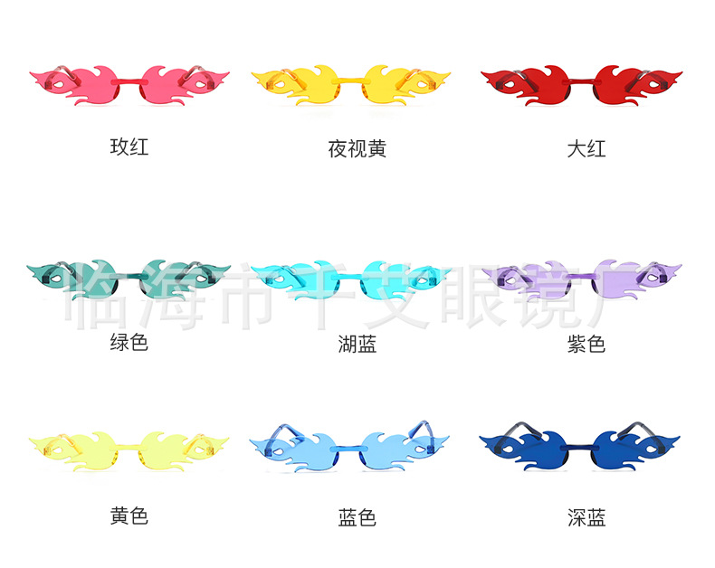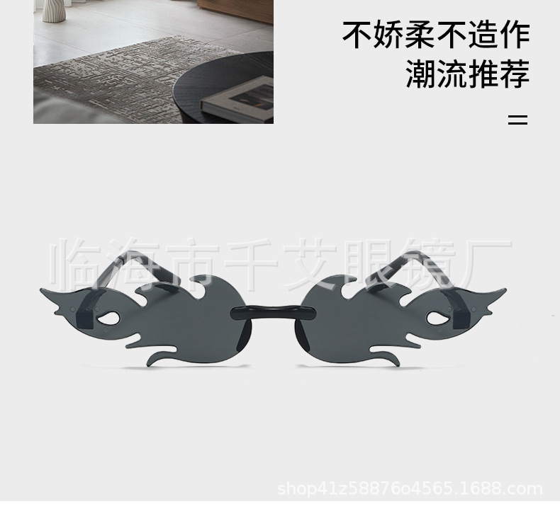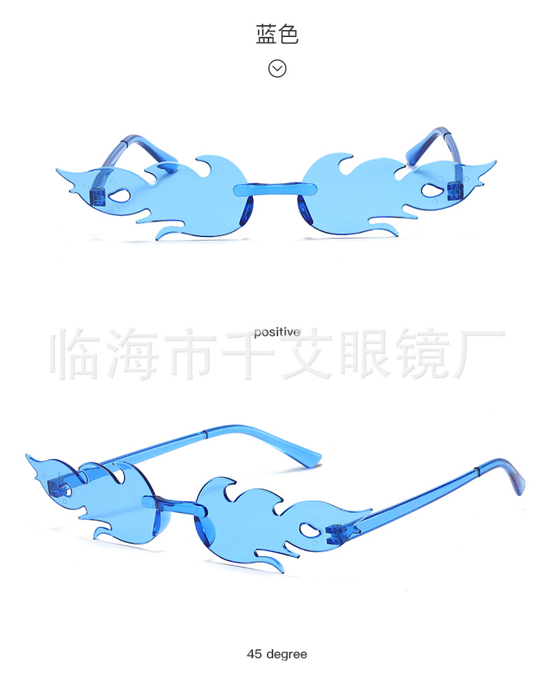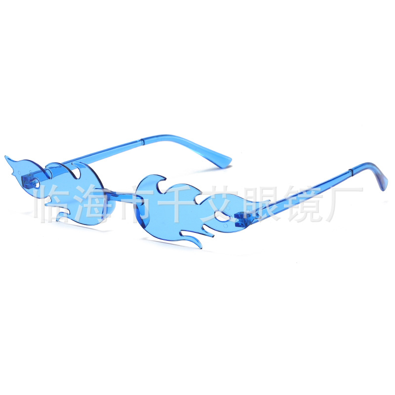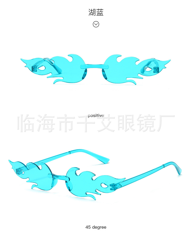 새로운 유럽과 미국의 국경 간 불꽃 선글라스 프레임리스 성격 다채로운 볼안경 유행 패션쇼 파티 선글라스