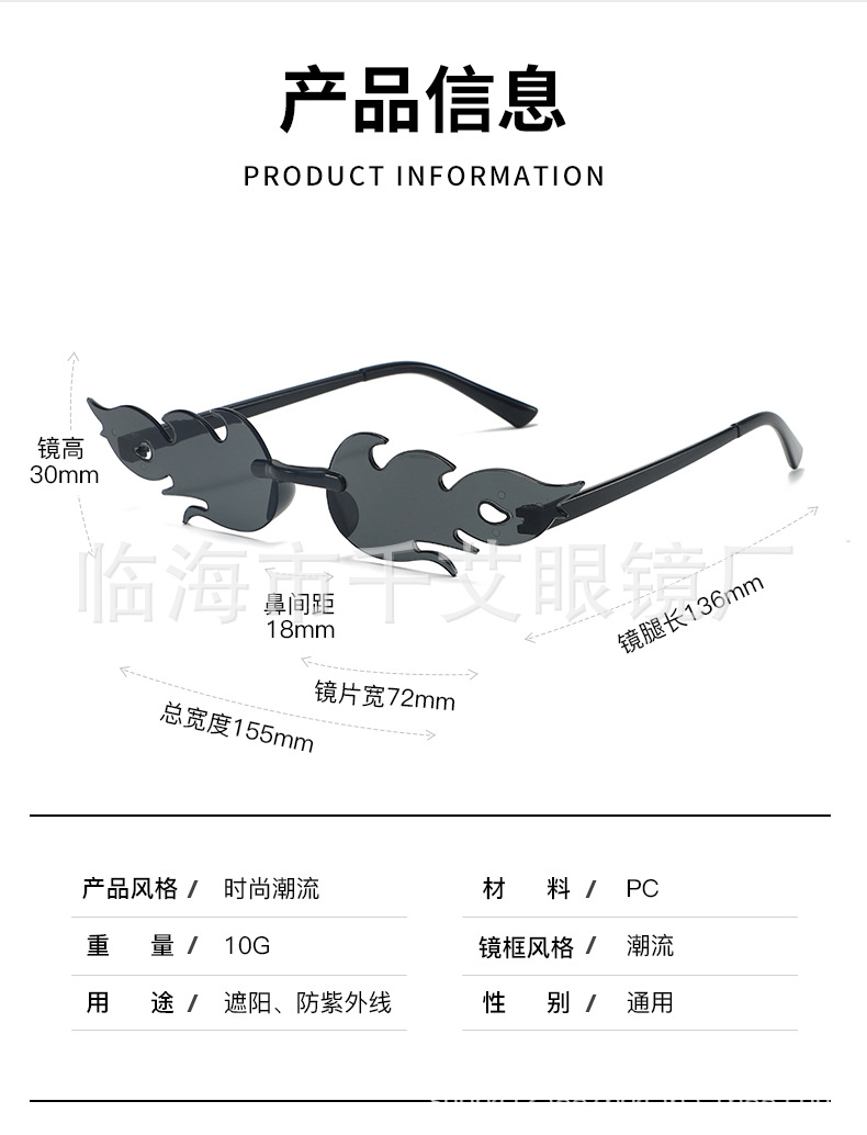 새로운 유럽과 미국의 국경 간 불꽃 선글라스 프레임리스 성격 다채로운 볼안경 유행 패션쇼 파티 선글라스스토어 가기