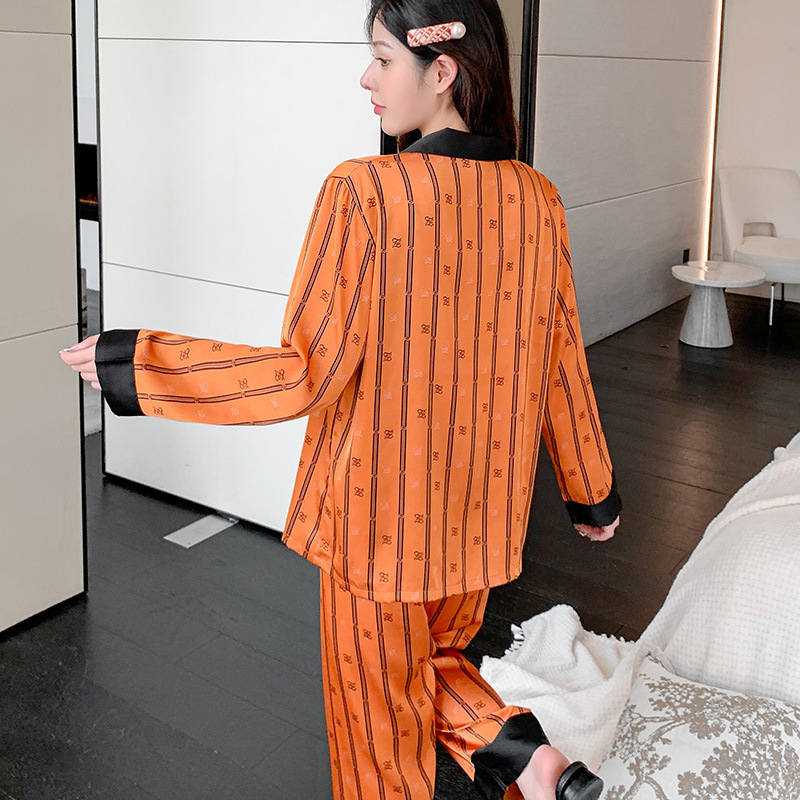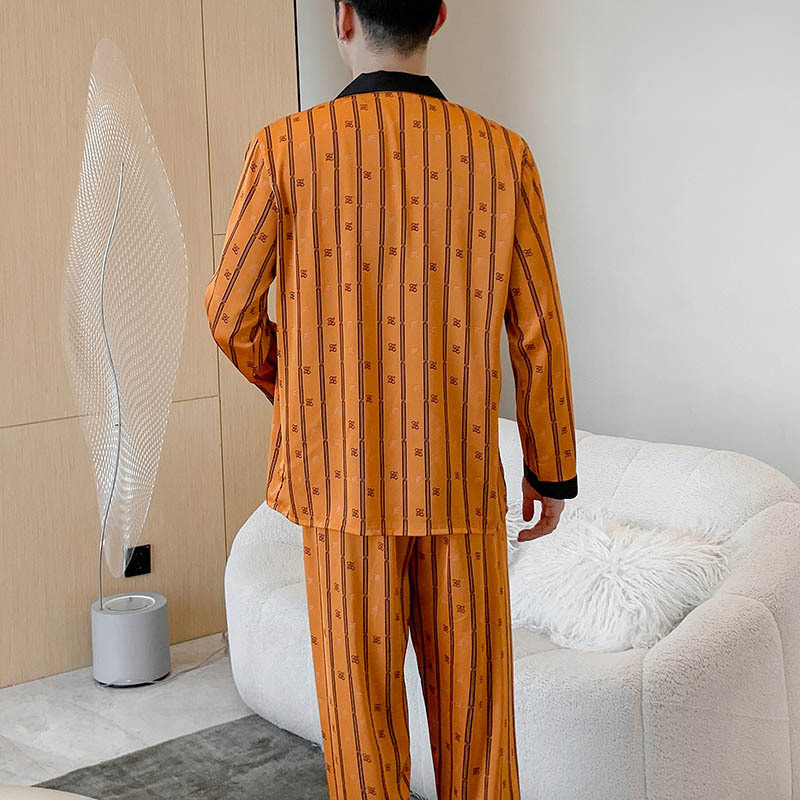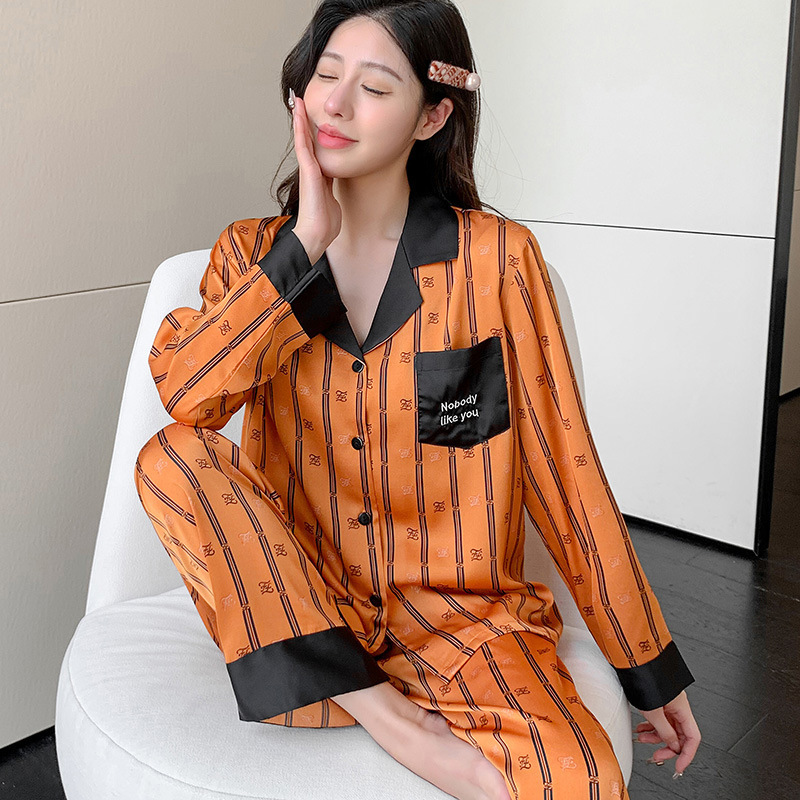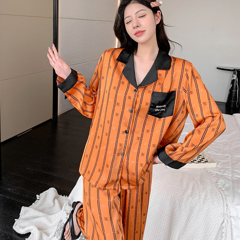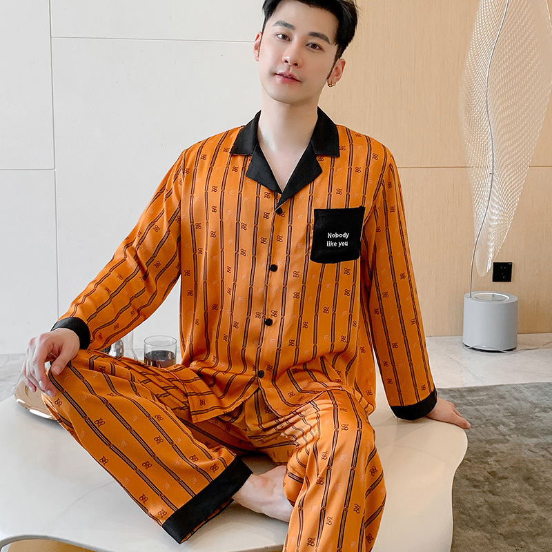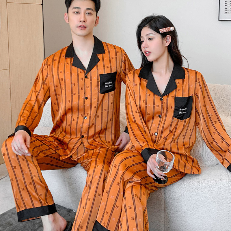 아이스 실크 파자마 애호가 의류 봄과 가을 가벼운 럭셔리 긴 소매 얇은 홈 의류 여성 아이스 실크 하이 엔드 남성 세트 헤어