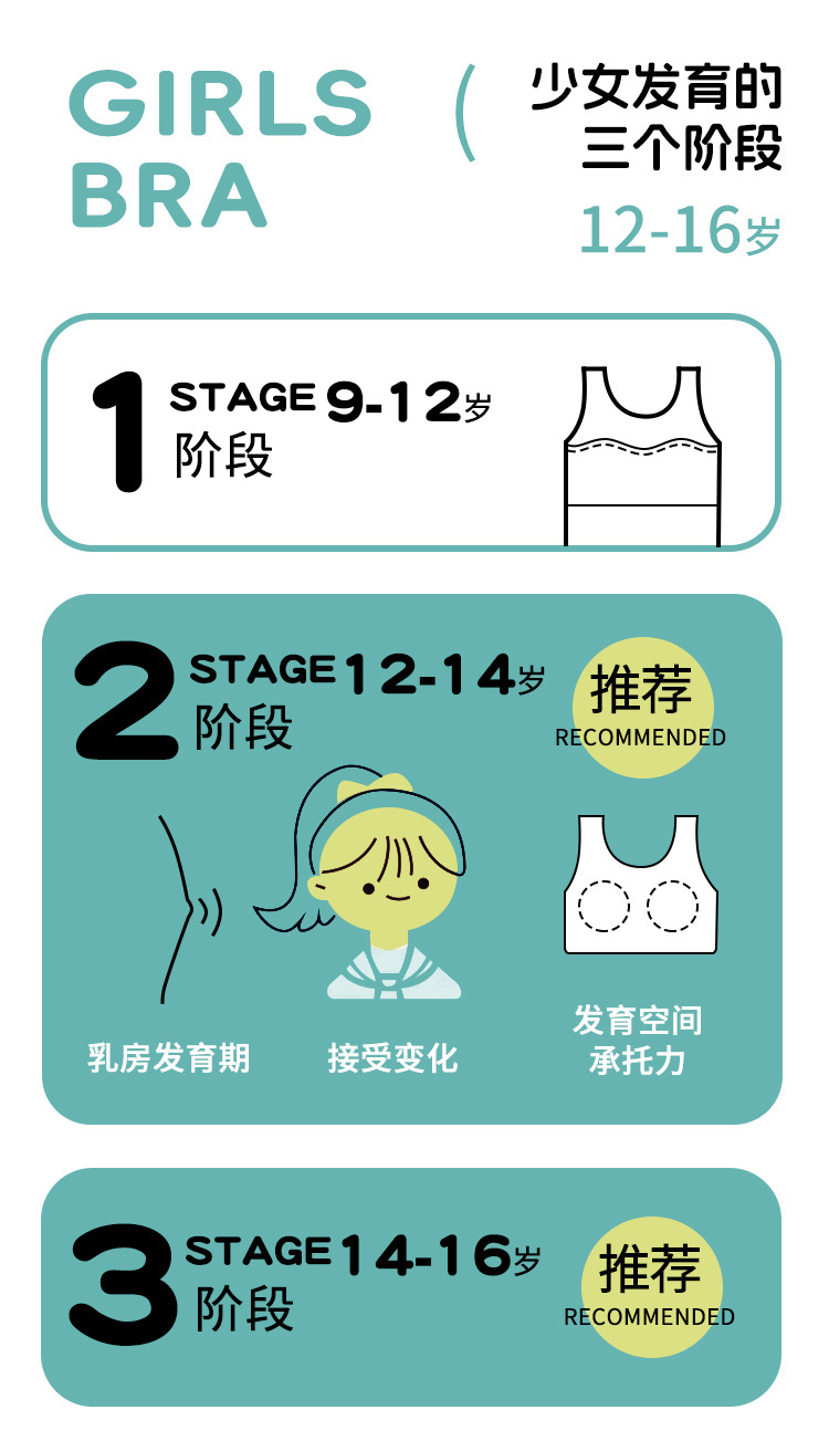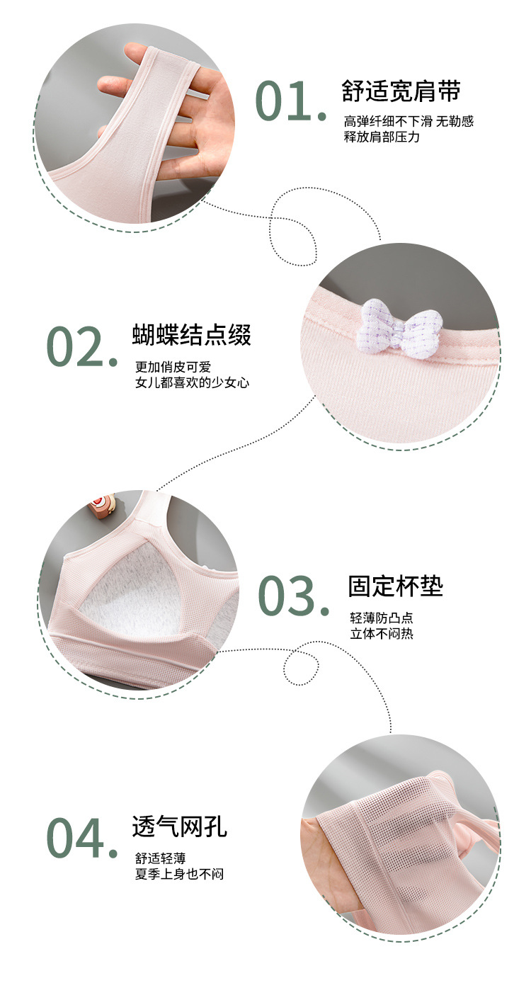 중학생 여아용 속옷 12-16세 고정컵 소녀용 발달기 조끼 학생 여아 브라 고등학생용스토어 가기