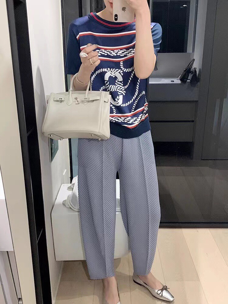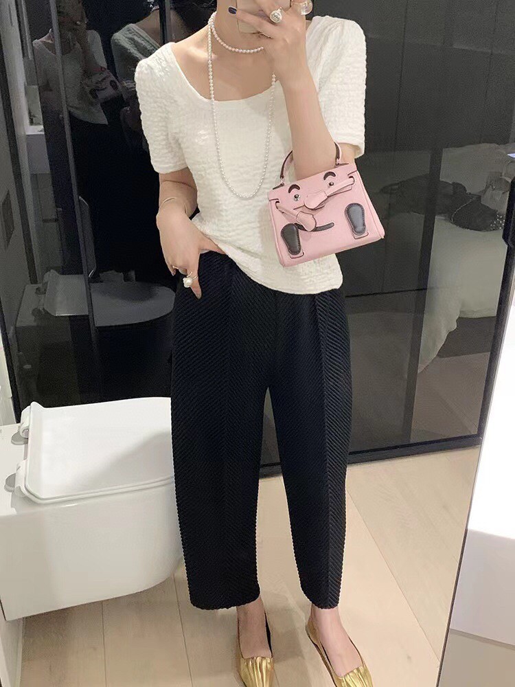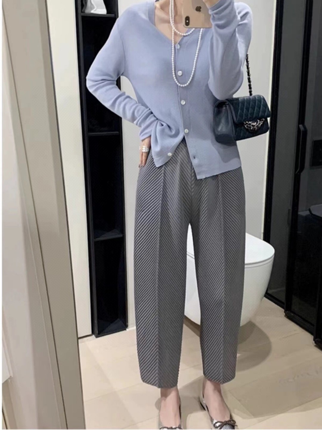 九分的奶奶裤型,属于看似随意且ji具时髦感