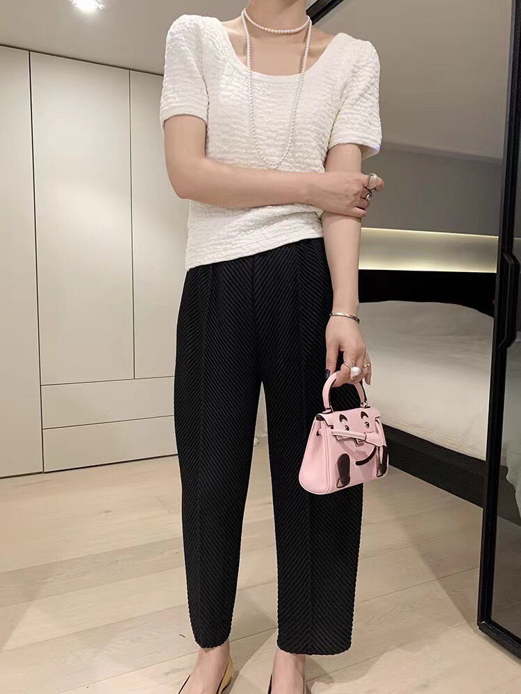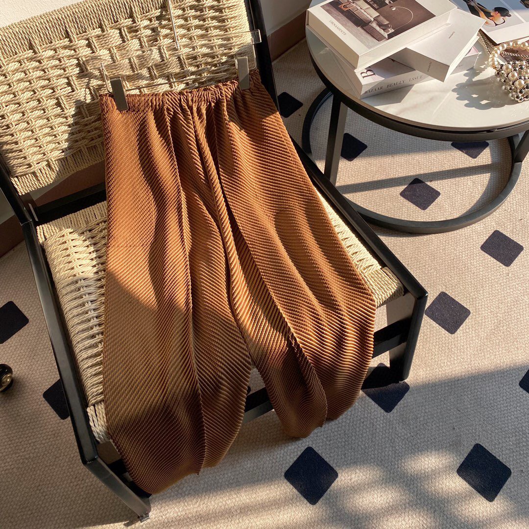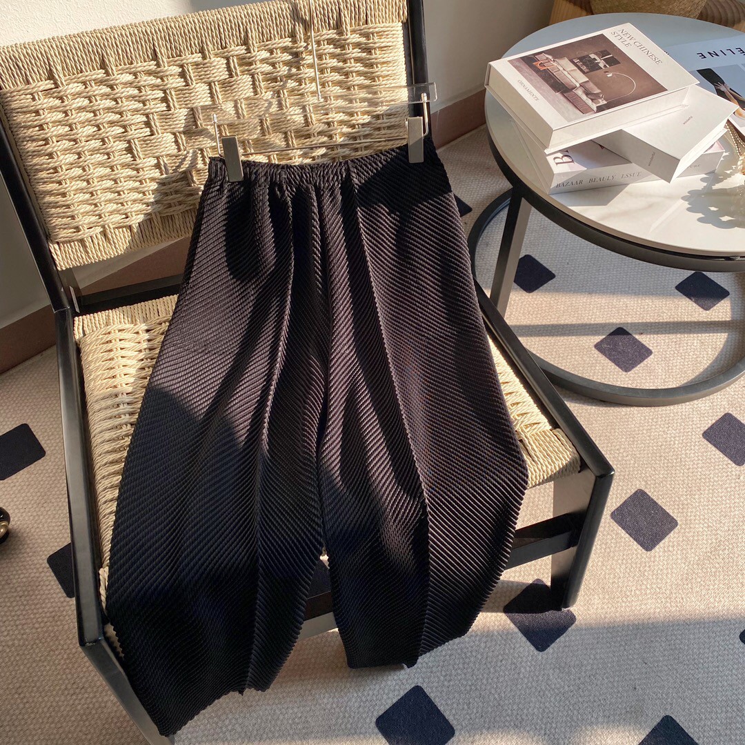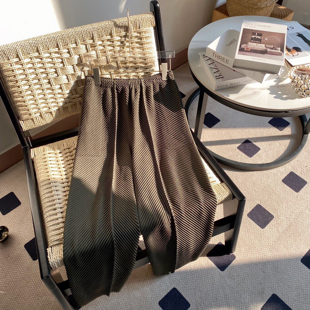 3 홈 스타일 유행 물고기 규모 패턴 주름 3 차원 얇은 시원하고 빠른 찌그러진 허리 미드 슬릿 9 점 테이퍼 바지 여름스토어 가기