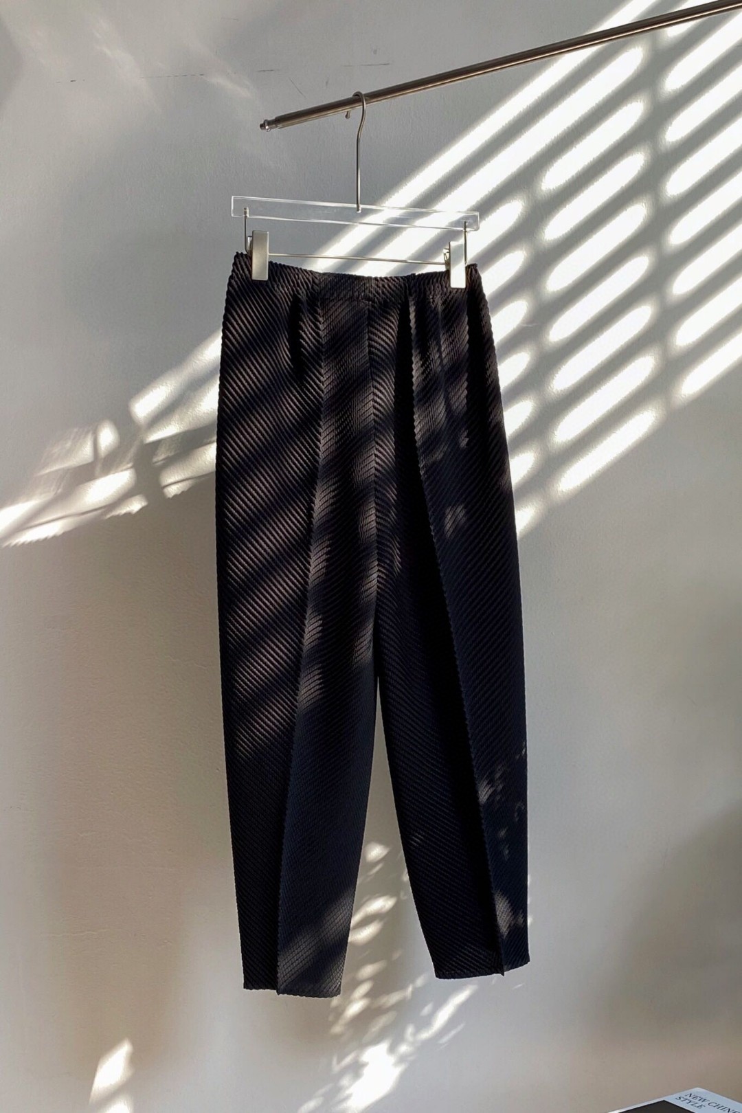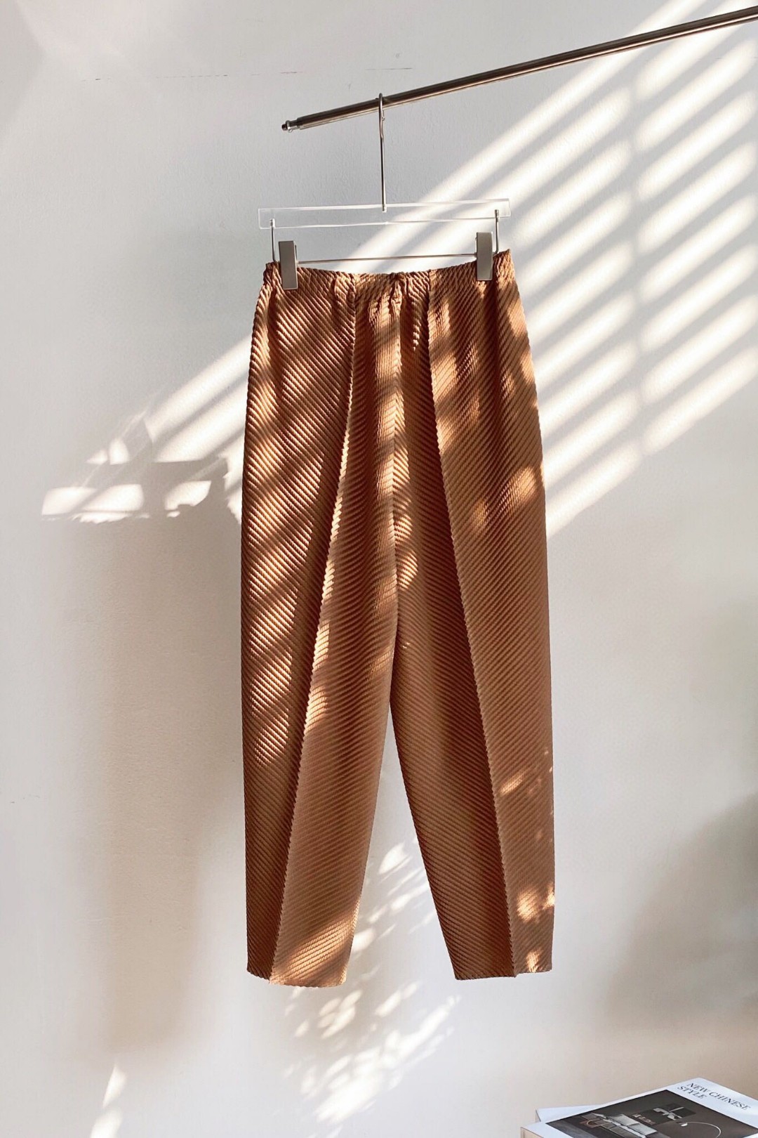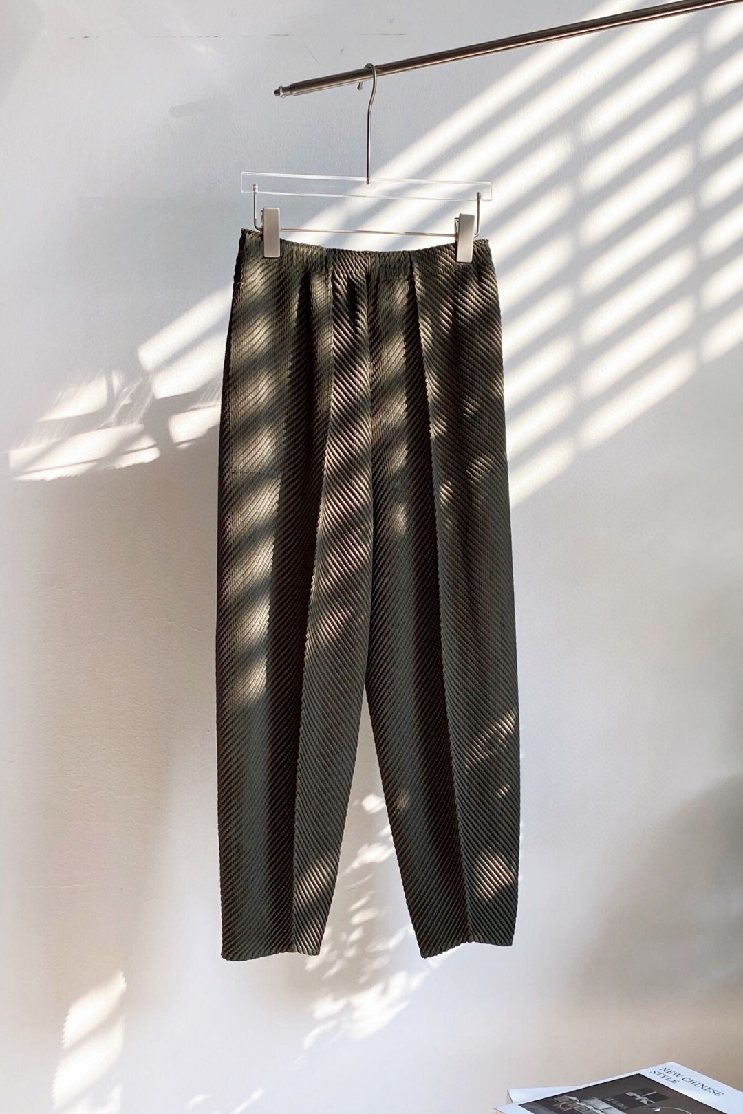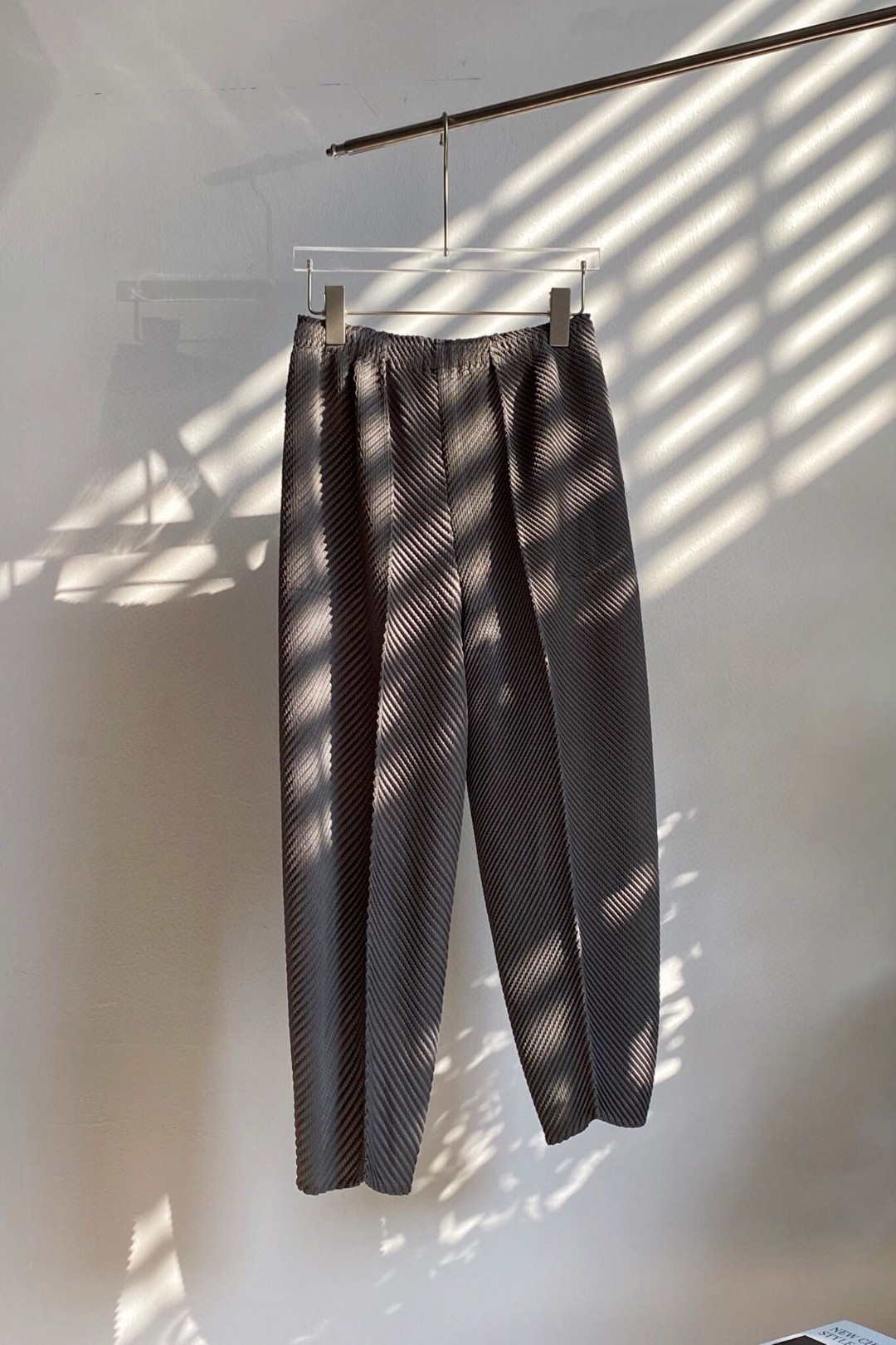 3 홈 스타일 유행 물고기 규모 패턴 주름 3 차원 얇은 시원하고 빠른 찌그러진 허리 미드 슬릿 9 점 테이퍼 바지 여름스토어 가기