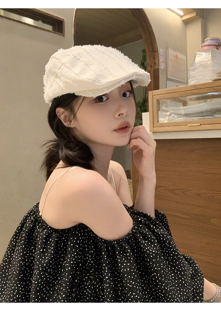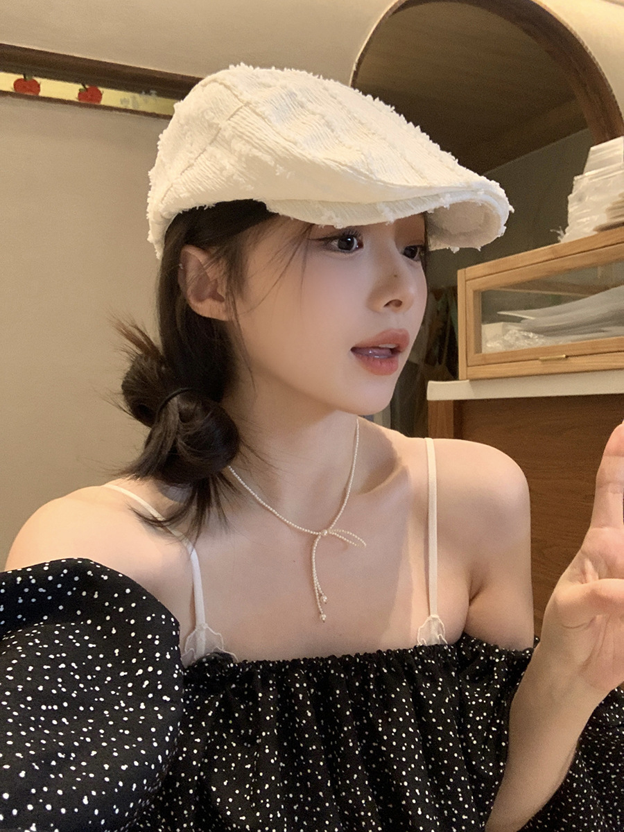 일본 틈새 디자인 센스 솔리드 컬러 포워드 모자 여성 레트로 모피 가장자리 얼굴 작은 모자 패션 문학 신문 어린이 모자스토어 가기