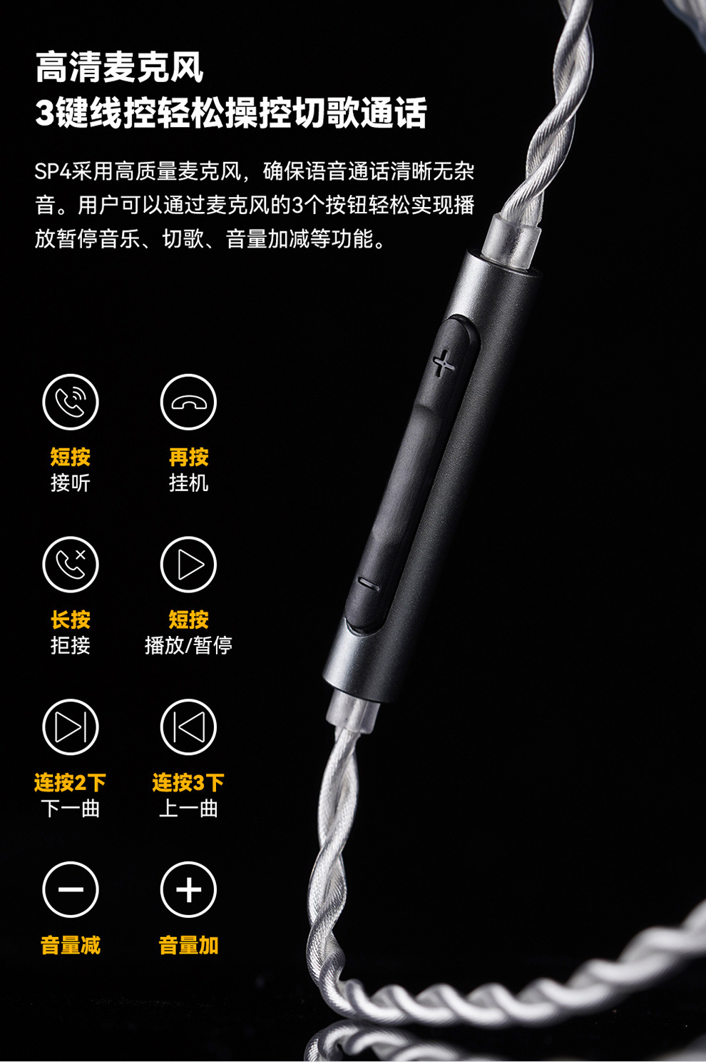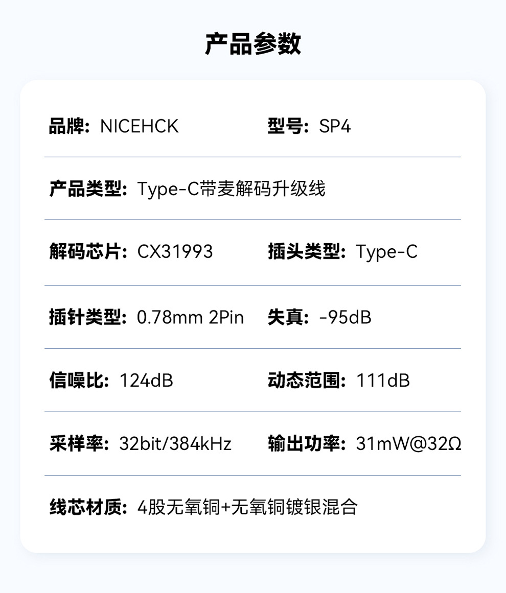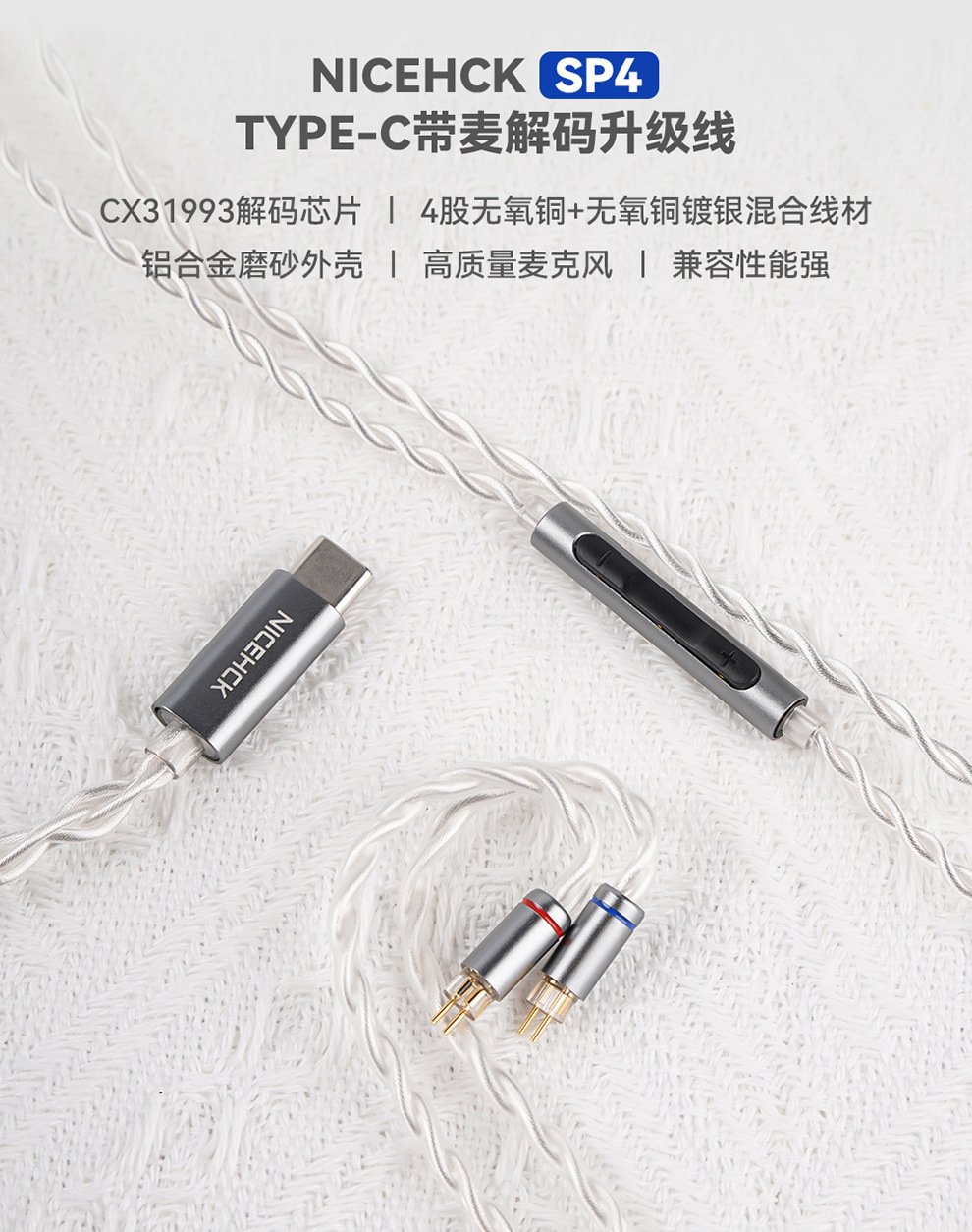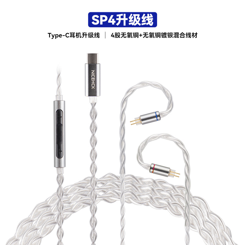 NICEHCK는 마이크와 와이어 제어 2핀이 포함된 오리지널 SP4 라인 Type-C 디코딩 헤드폰 업그레이드 케이블에 적합합니다.