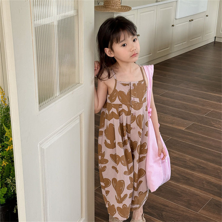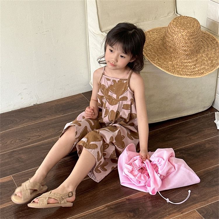 여자 여름 서스펜더 바지 아기의 슬링 새로운 스타일리시 한국 스타일 와이드 어린이 카프리 바지 슈퍼 귀여운스토어 가기