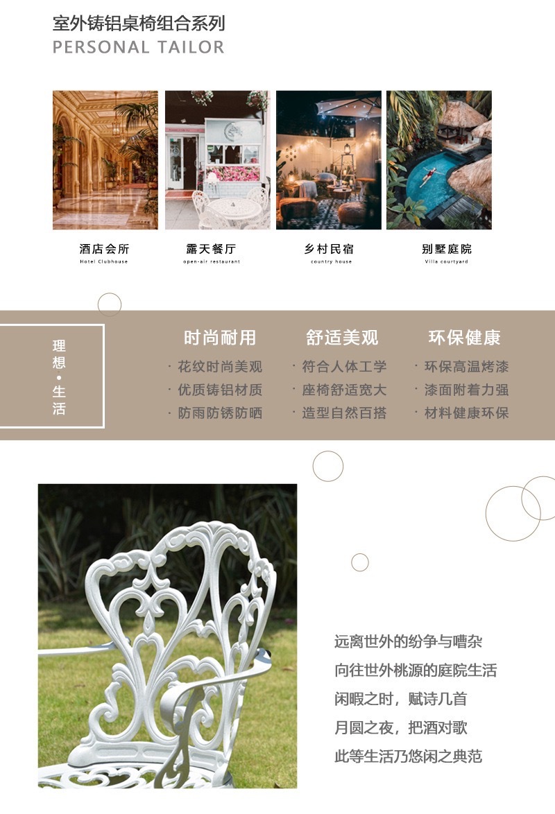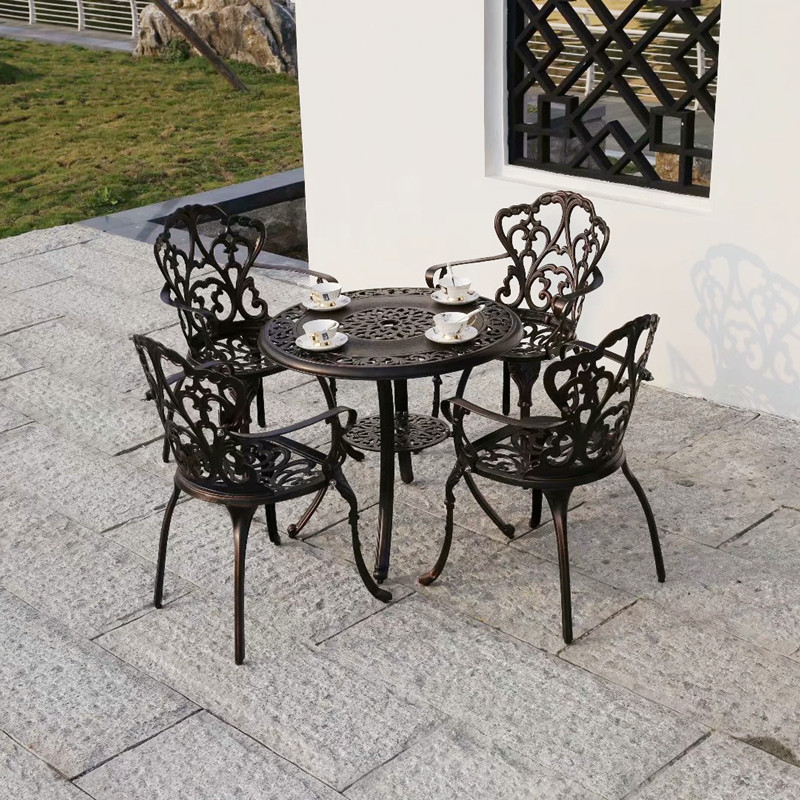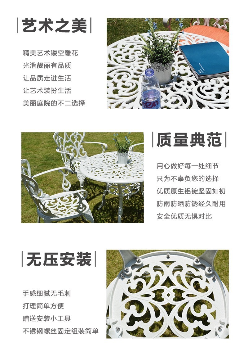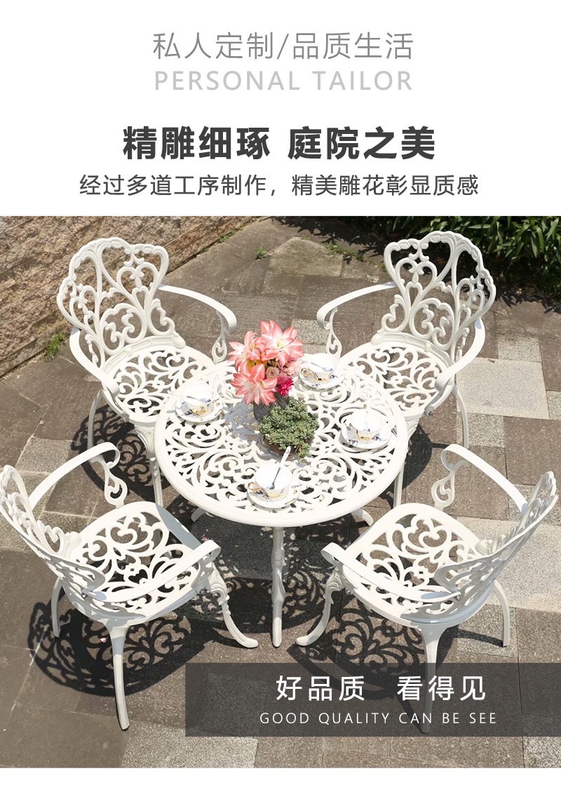 야외 캐스트 알루미늄 테이블 및 의자 야외 발코니 작은 커피 테이블 안뜰 정원 식탁 흰색 야외 캐주얼 철 가구스토어 가기
