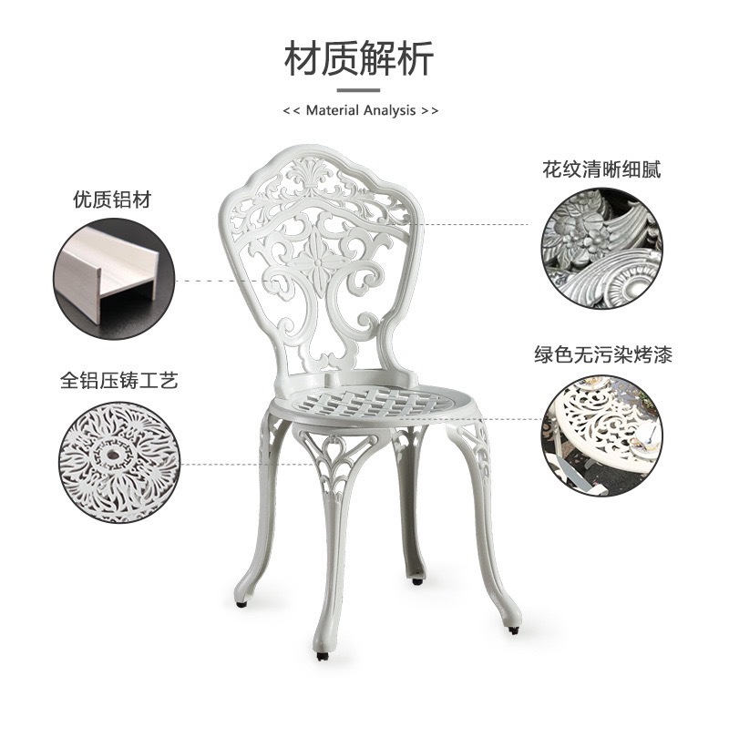 야외 캐스트 알루미늄 테이블 및 의자 야외 발코니 작은 커피 테이블 안뜰 정원 식탁 흰색 야외 캐주얼 철 가구