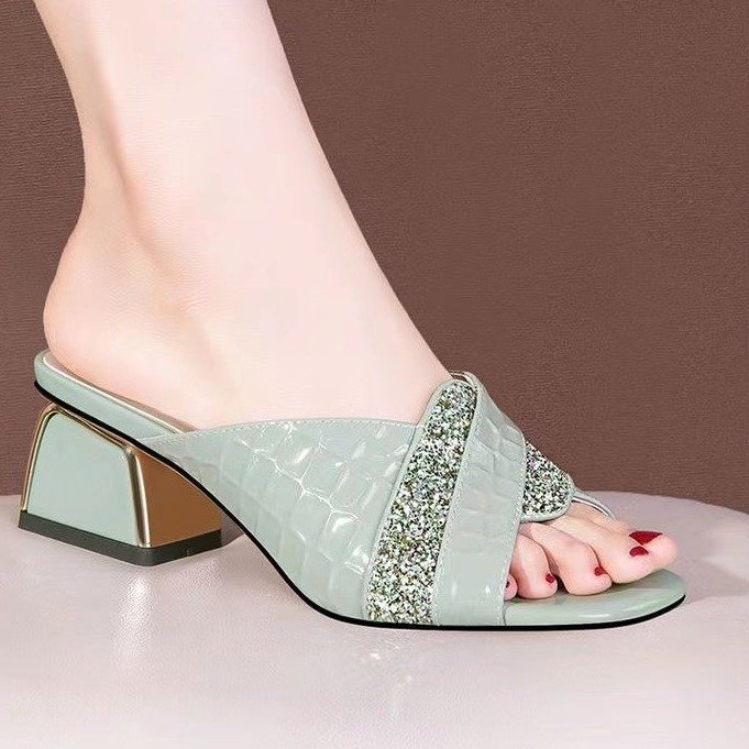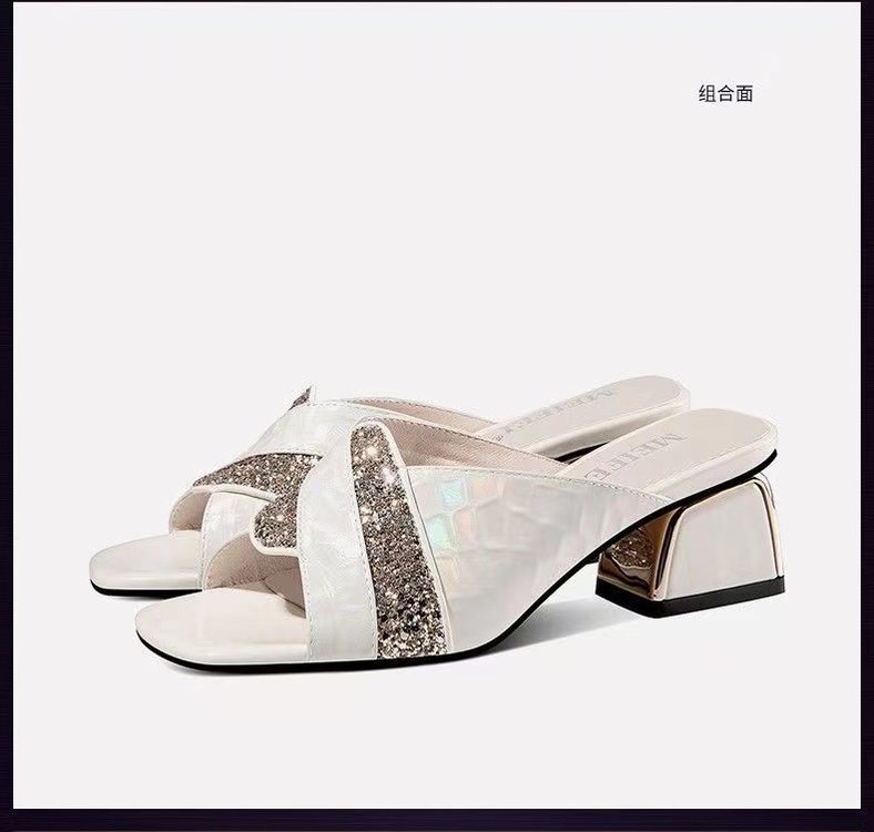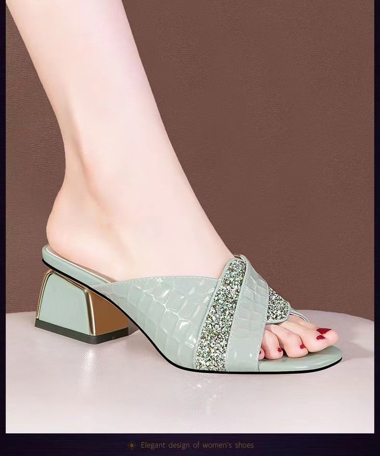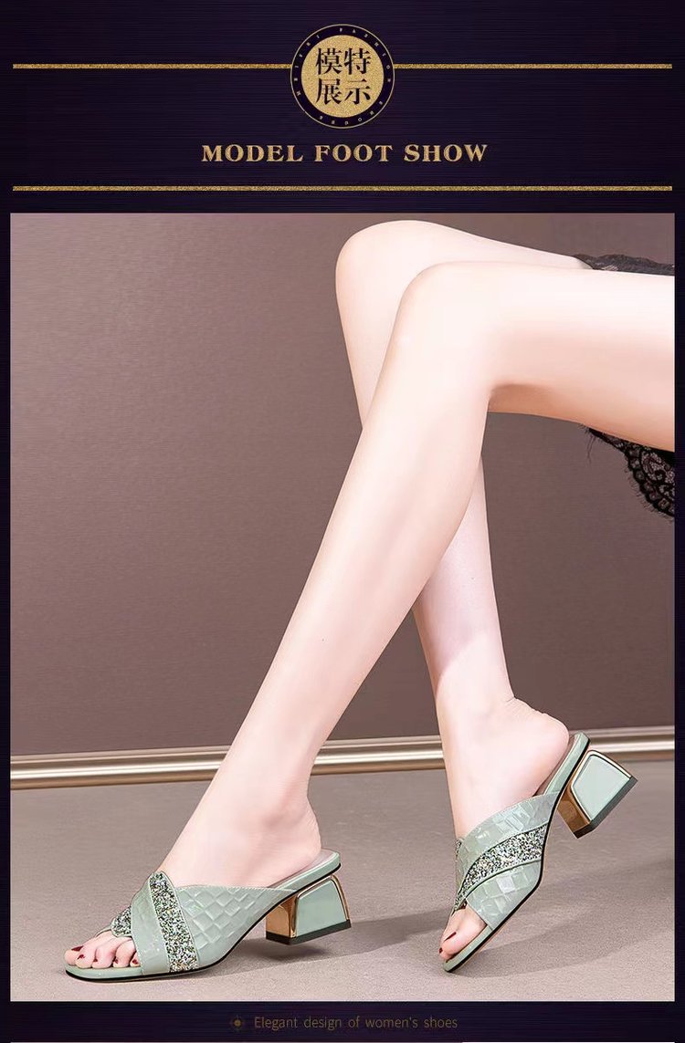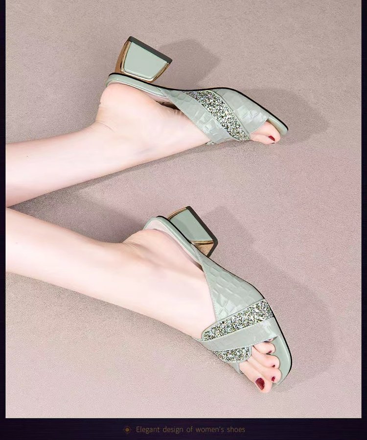 진짜 부드러운 가죽 2024 여름 새로운 물고기 입 하이힐 샌들 여성 여름 야외 착용 패션 통기성 두꺼운 뒤꿈치 슬리퍼스토어 가기
