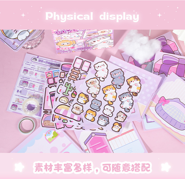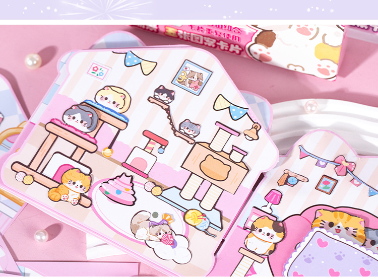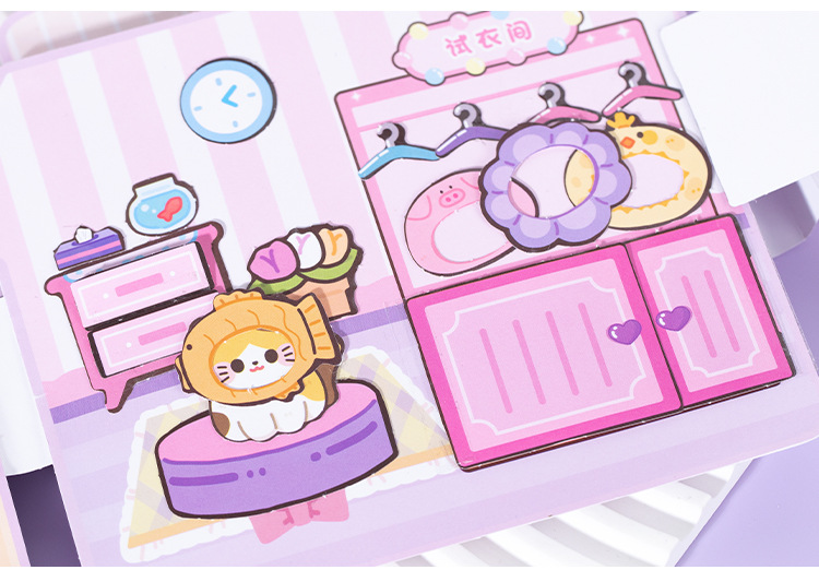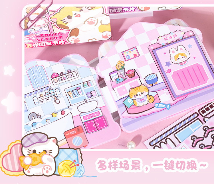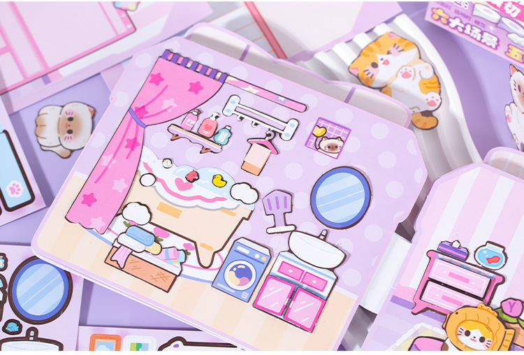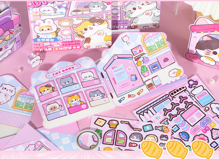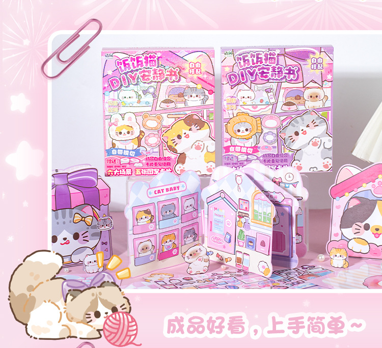 조용한 책 새로운 소녀 컷 프리 수제 DIY 스티커 귀여운 애완 동물 팬팬 키튼 어린이 장난감 6스토어 가기