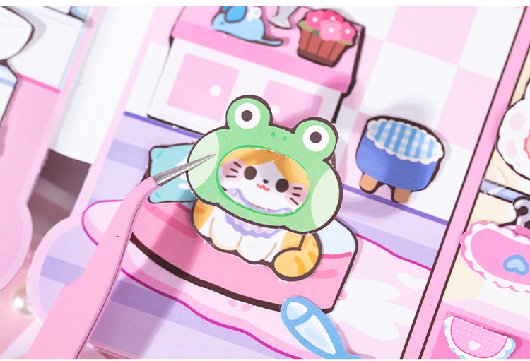 조용한 책 새로운 소녀 컷 프리 수제 DIY 스티커 귀여운 애완 동물 팬팬 키튼 어린이 장난감 6