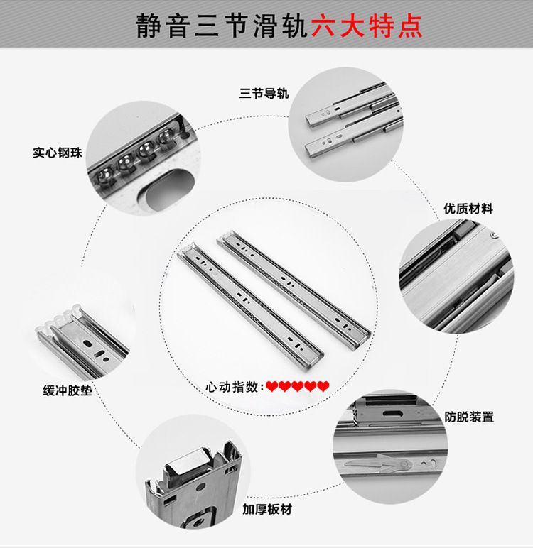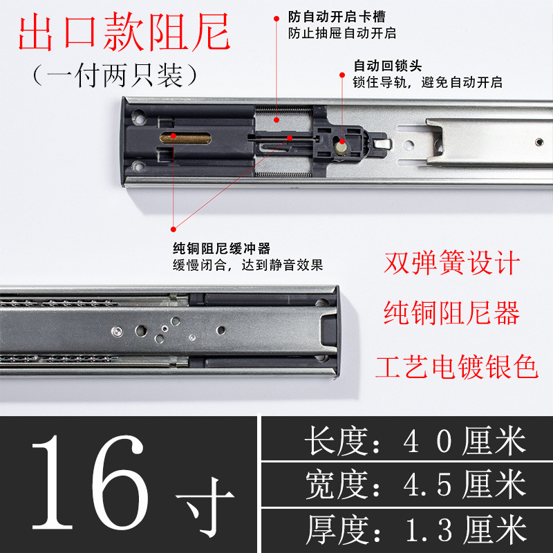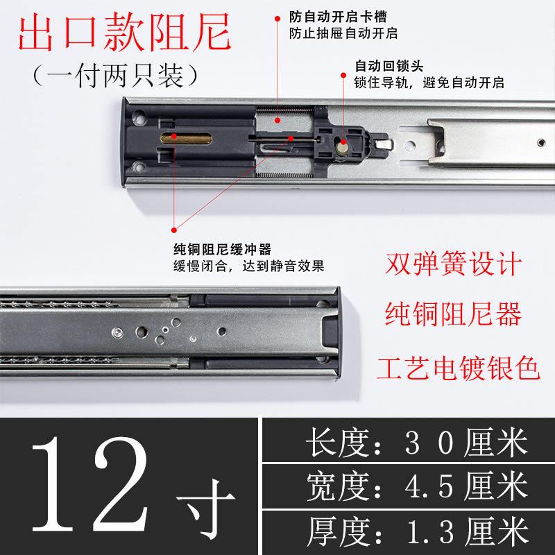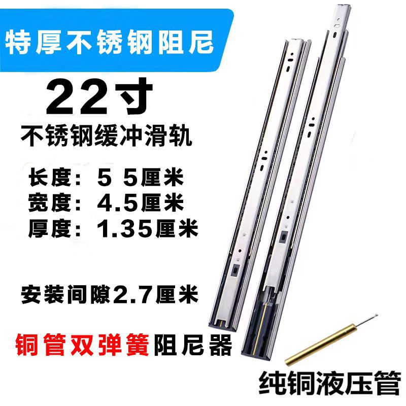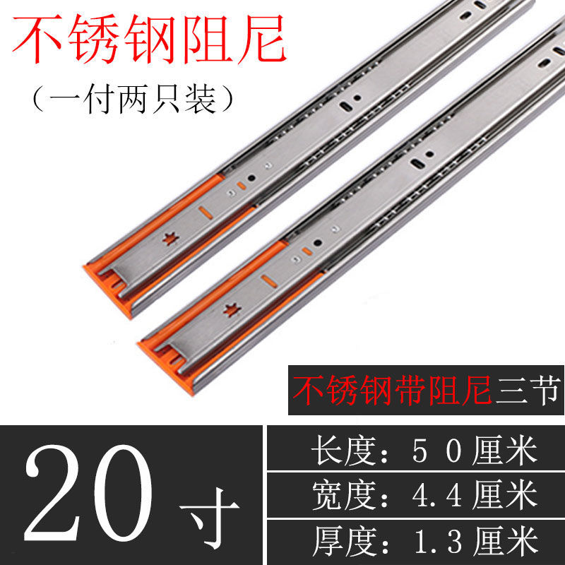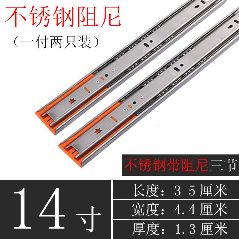 3 섹션 댐핑 버퍼 서랍 트랙 두꺼운 스테인레스 스틸 슬라이드 레일 의류 캐비닛 가이드 레일 리바운드 슬라이드 레일 대외 무역스토어 가기