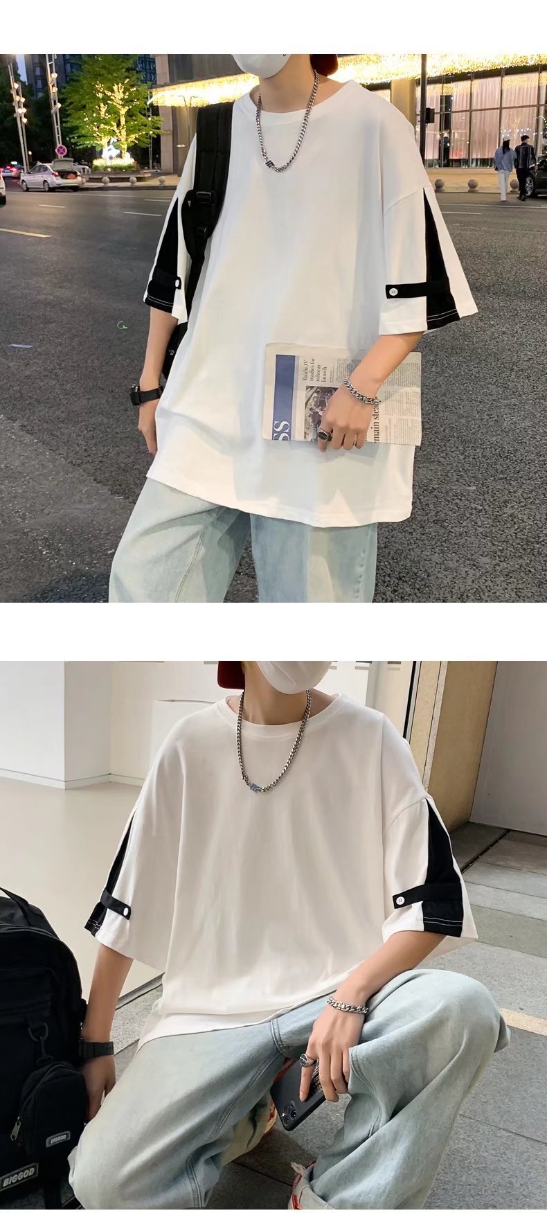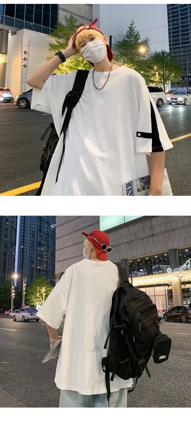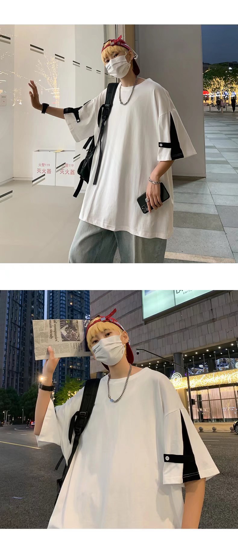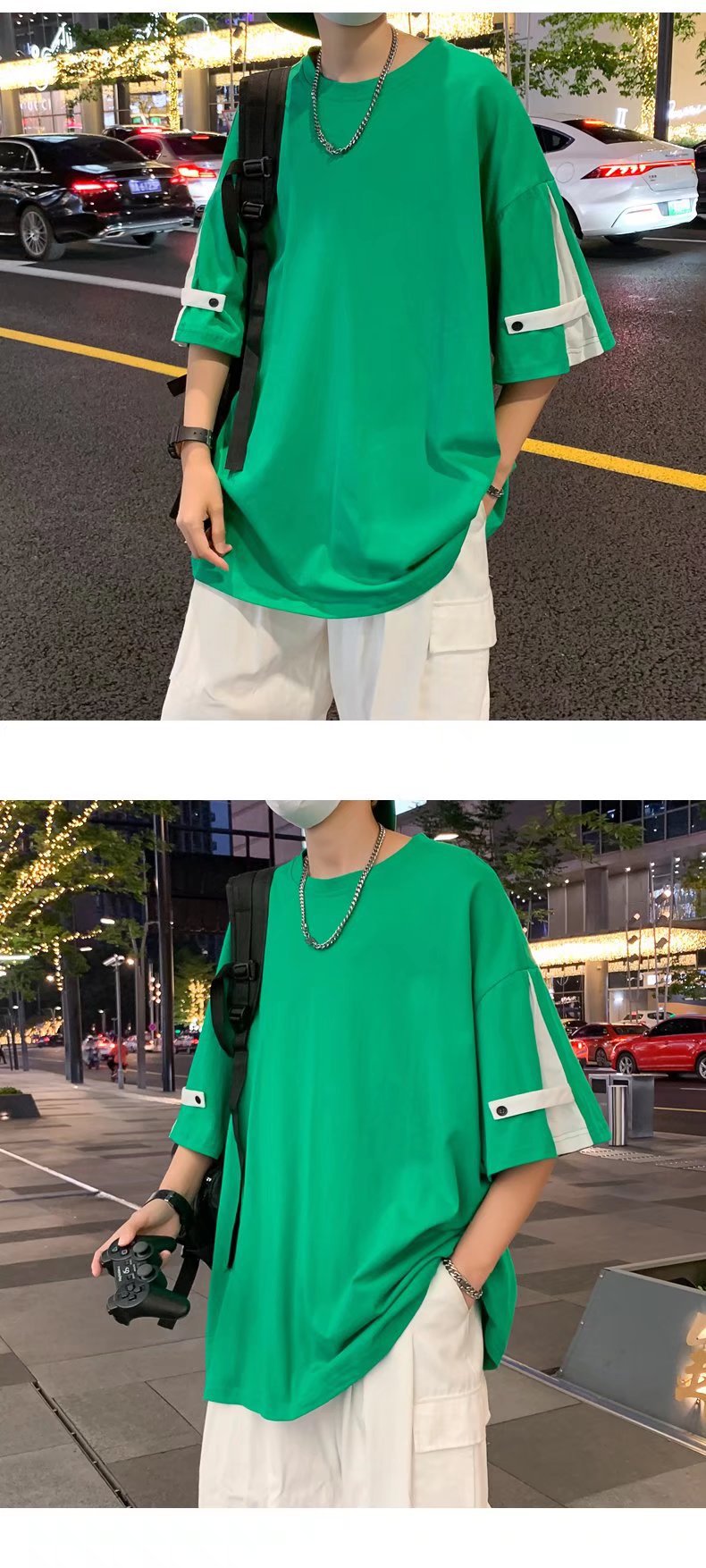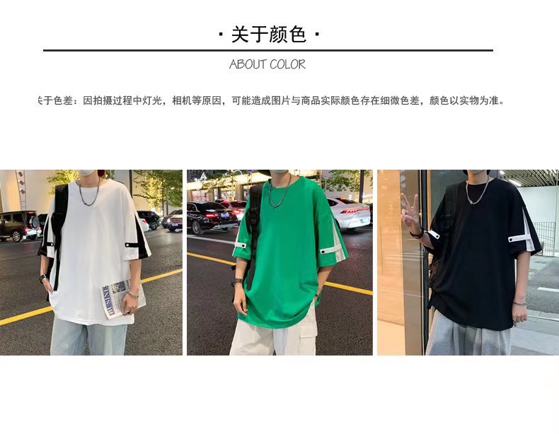 게으른 트렌드 새로운 스타일 매일 청소년 인기있는 스탠다드 인 패션 타이드 브랜드 타이드 티셔츠 남성 하프 슬리브 봄 라운드 넥스토어 가기
