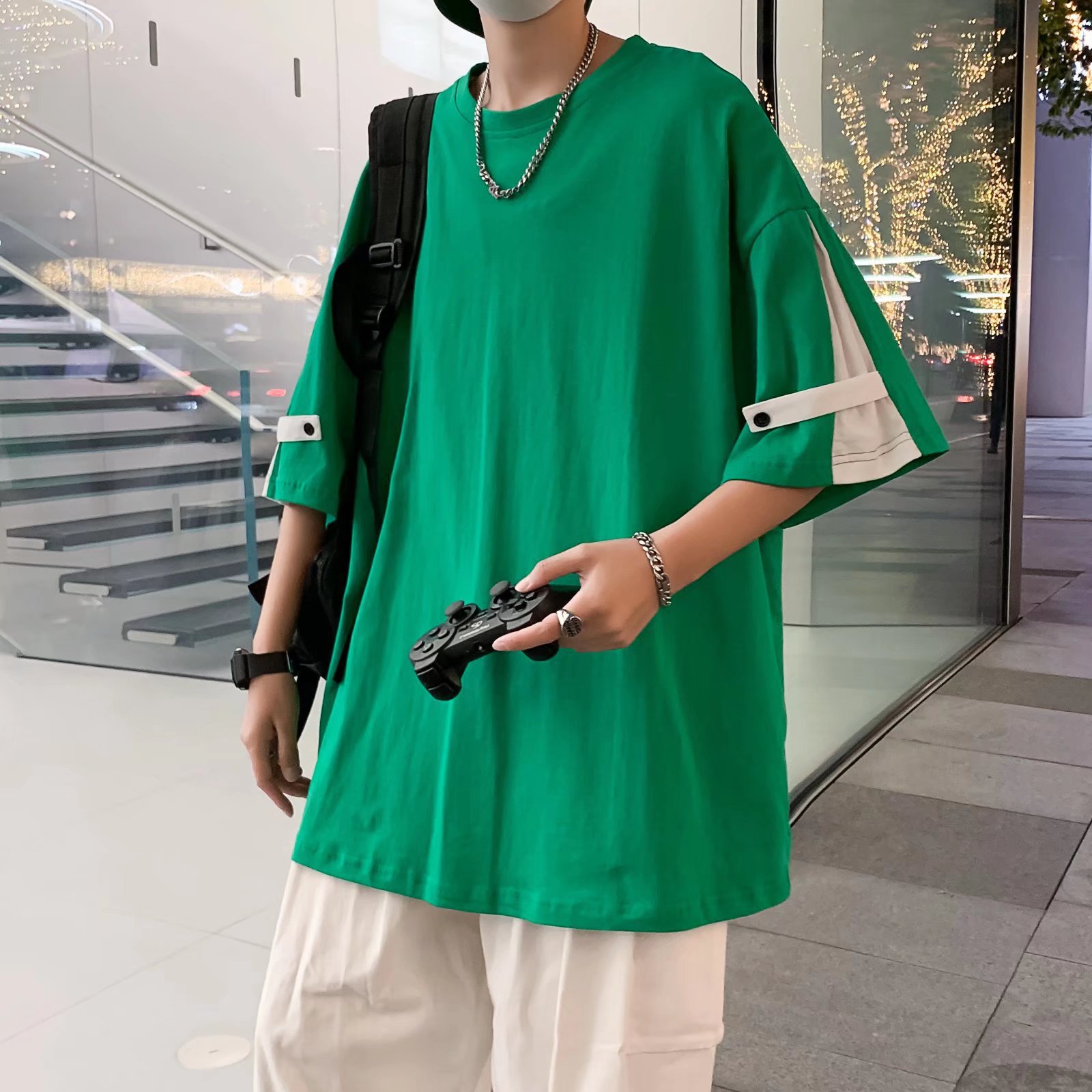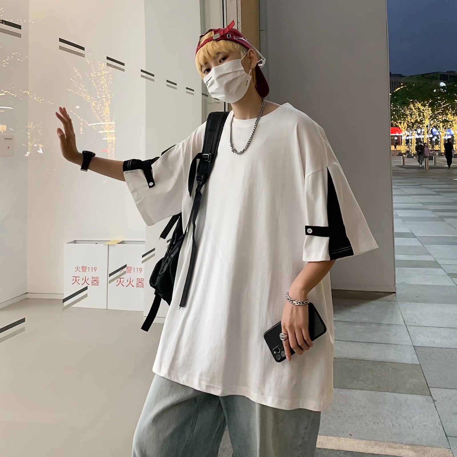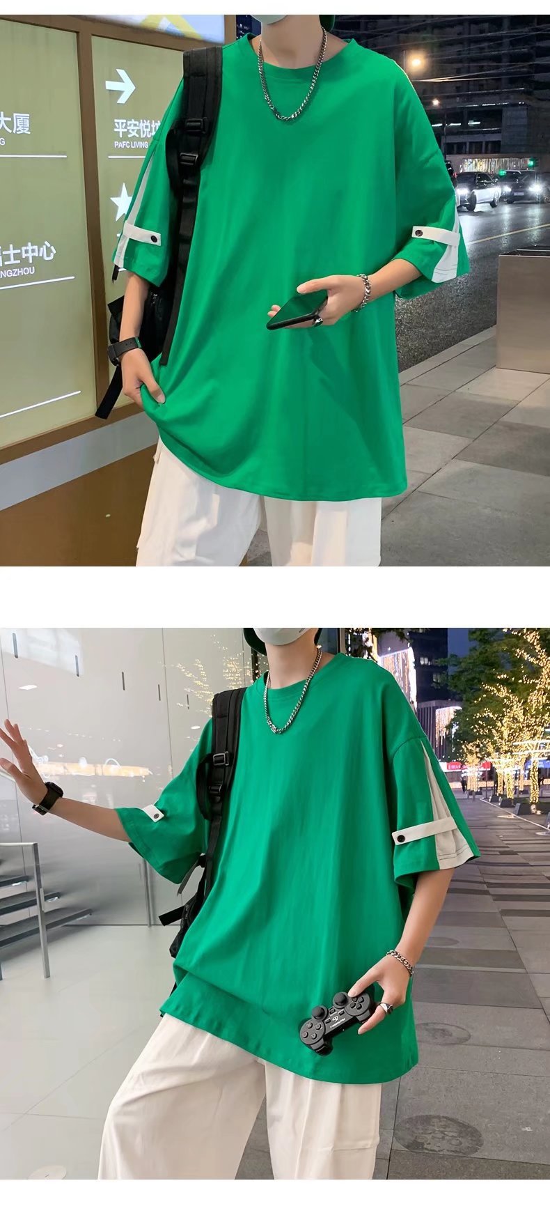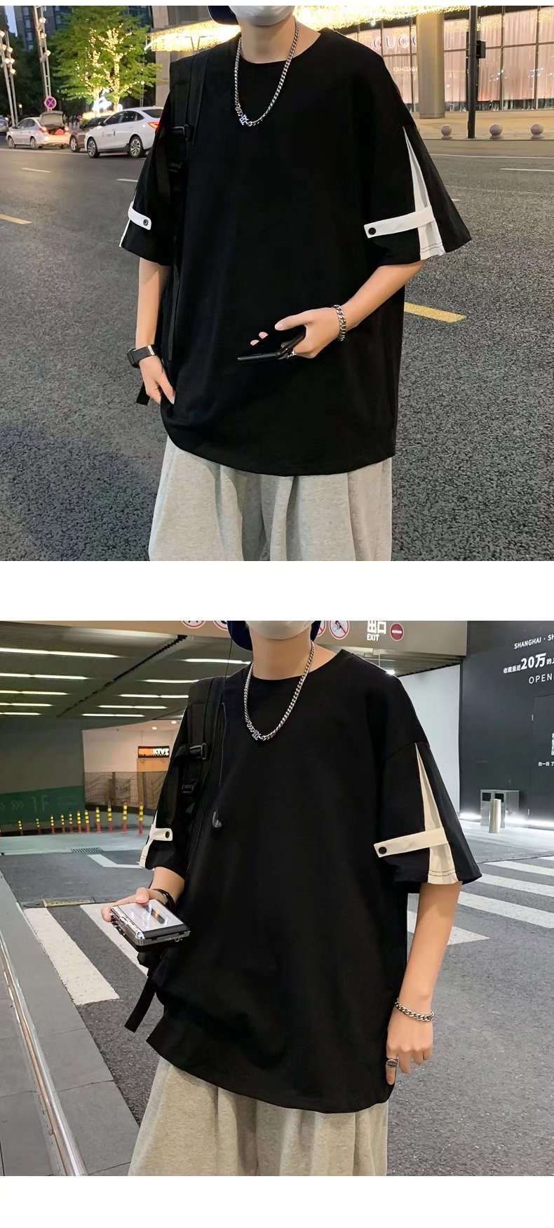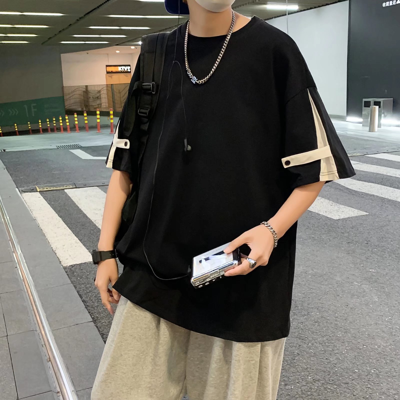 게으른 트렌드 새로운 스타일 매일 청소년 인기있는 스탠다드 인 패션 타이드 브랜드 타이드 티셔츠 남성 하프 슬리브 봄 라운드 넥