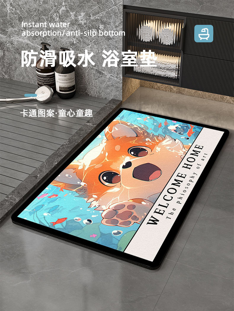 만화 욕실 매트 부드러운 다이아몬드 진흙 문 매트 흡수성 비 슬립 화장실 매트 화장실 문 매트스토어 가기