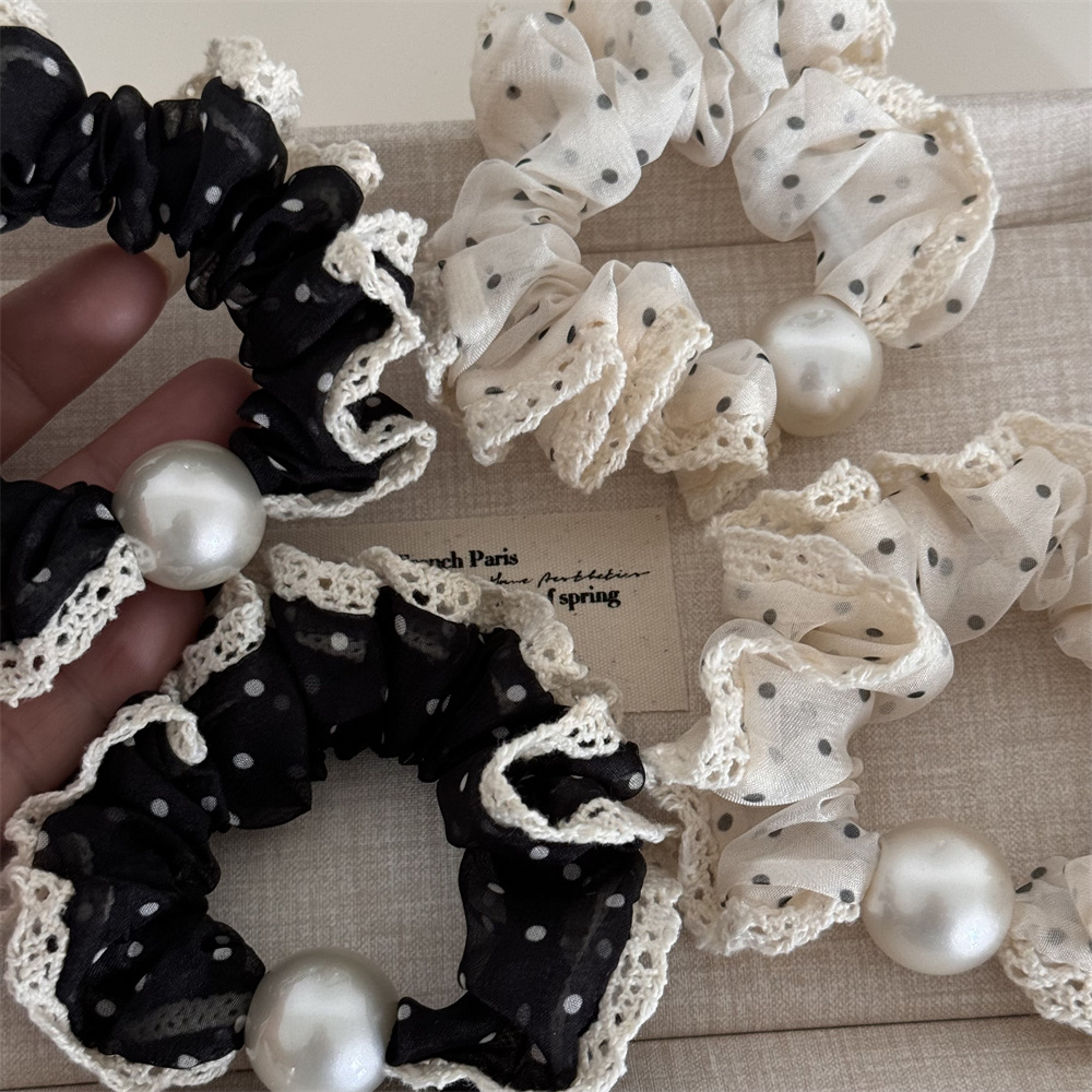 메쉬 일본식 웨이브 포인트 진주 대형 장내 링 헤드 밴드 고무 밴드 헤어 밴드 여성 헤어 로프 헤드 웨어 헤어 액세서리 새로운 스타일