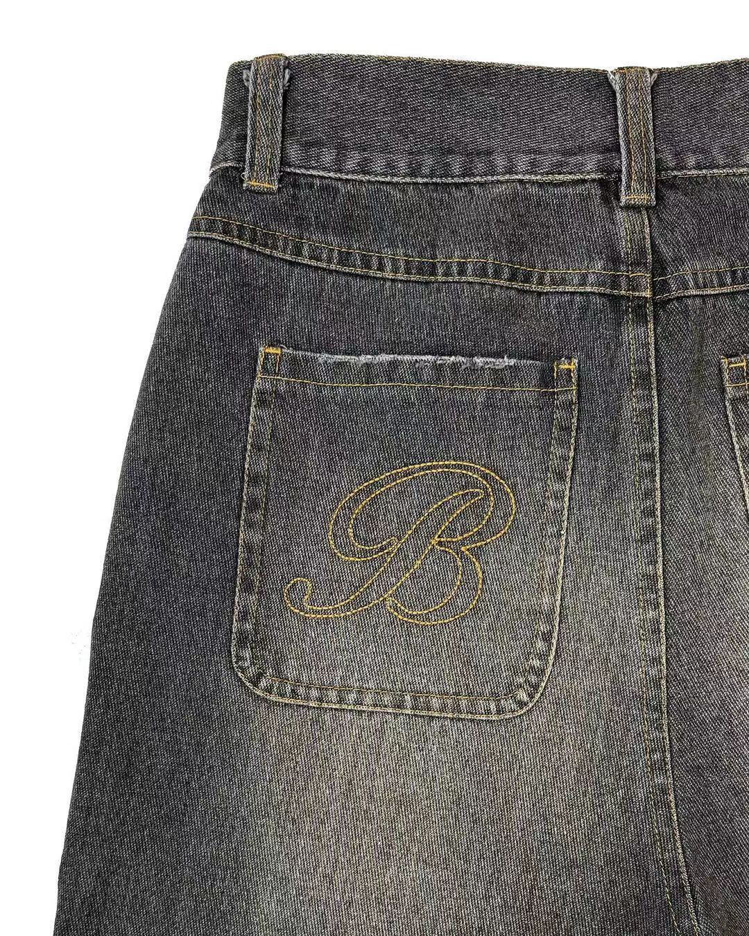 2025년 신상 트렌디 패션 남성용 루즈핏 반바지 패션 브랜드 레트로 레터링 데님 반바지스토어 가기