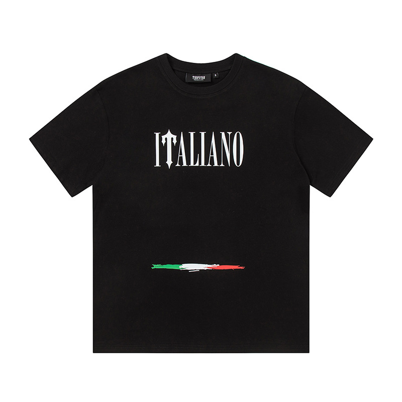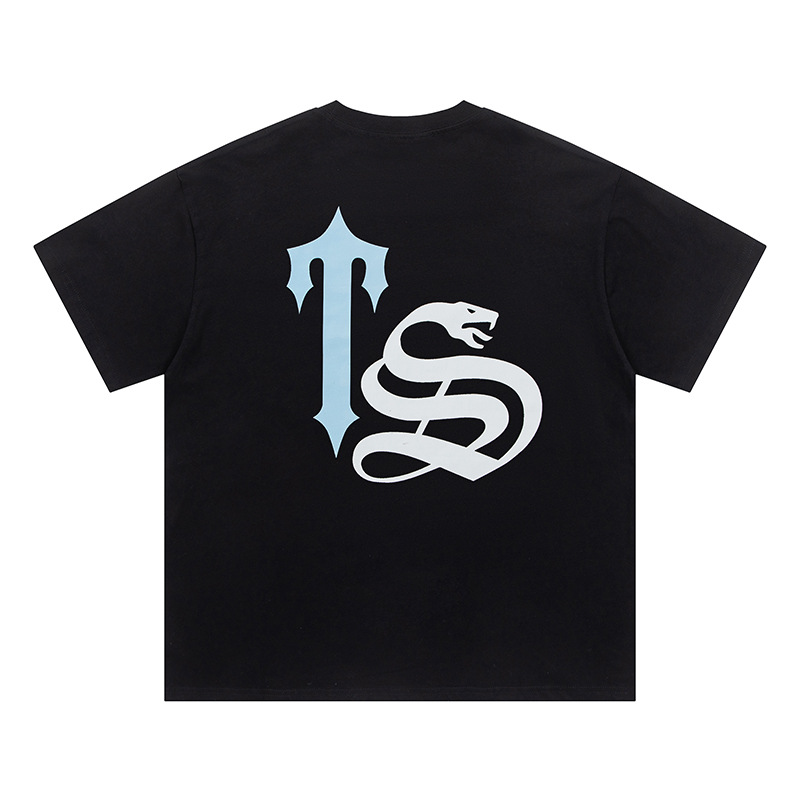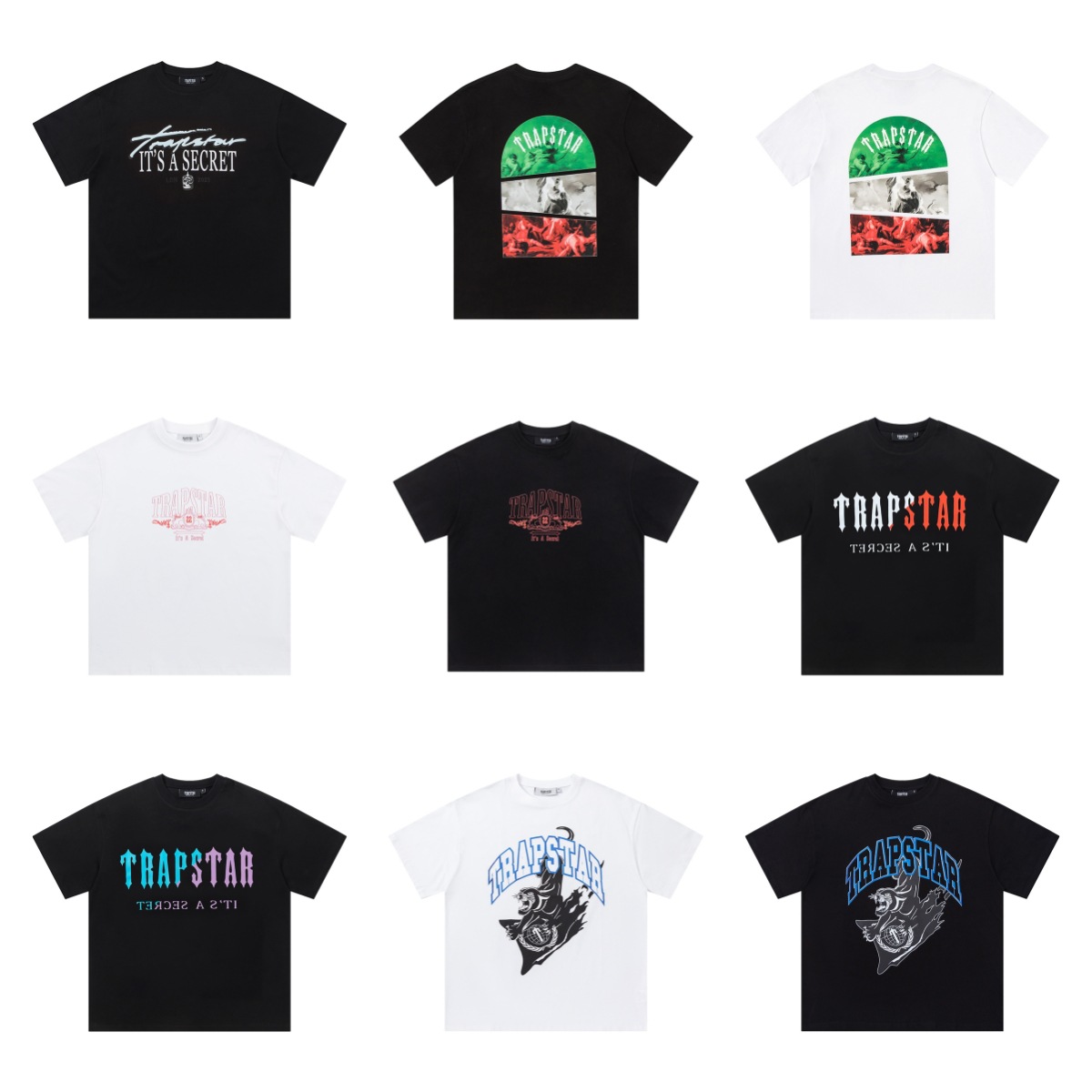대외 무역 AliExpress 공급 Trapstar 짧은 소매 티셔츠 새로운 기하학적 만화 편지 인쇄 느슨한 반소매 티스토어 가기