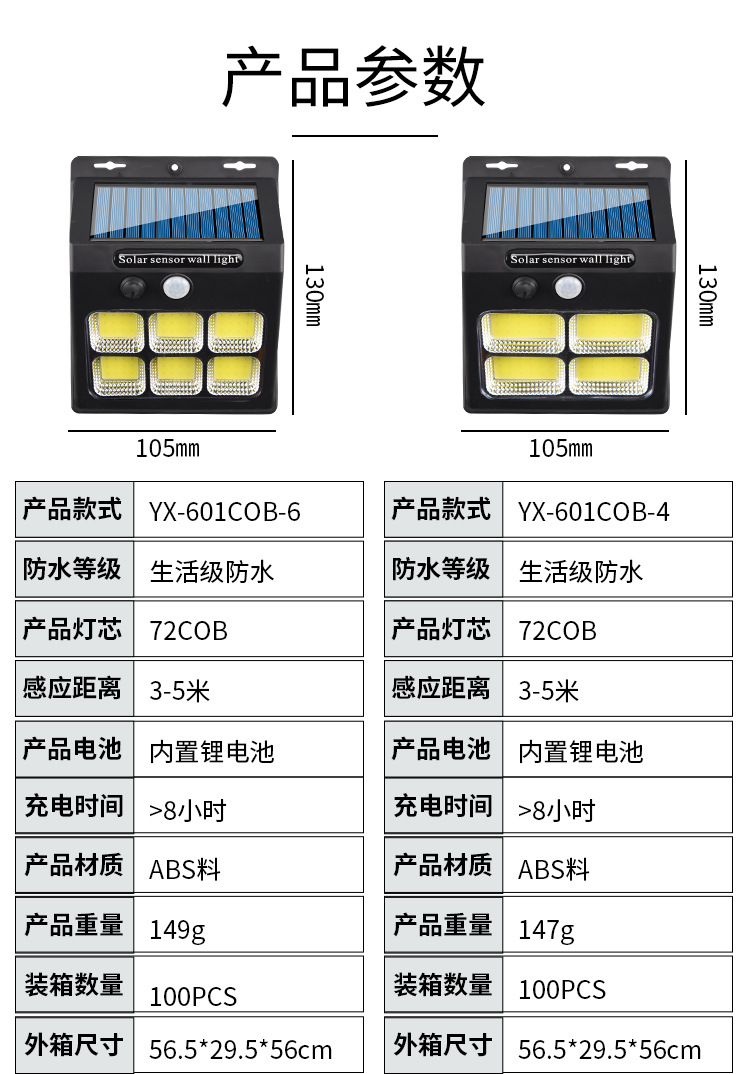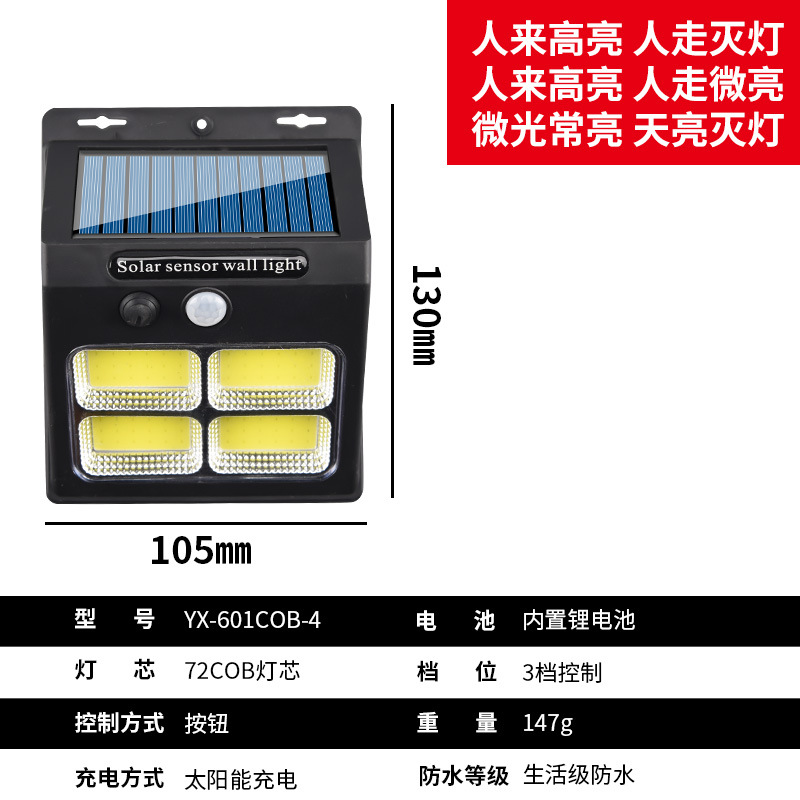2024 새로운 스타일 601 야외 벽 야외 인클로저 코트야드 COB 태양 인체 유도 램프 안뜰 벽 램프스토어 가기
