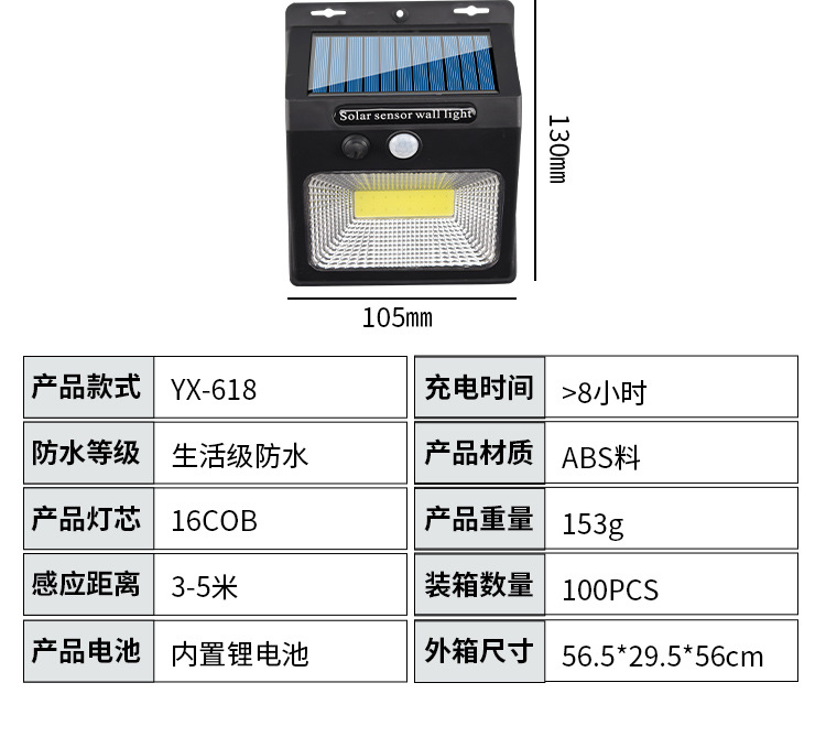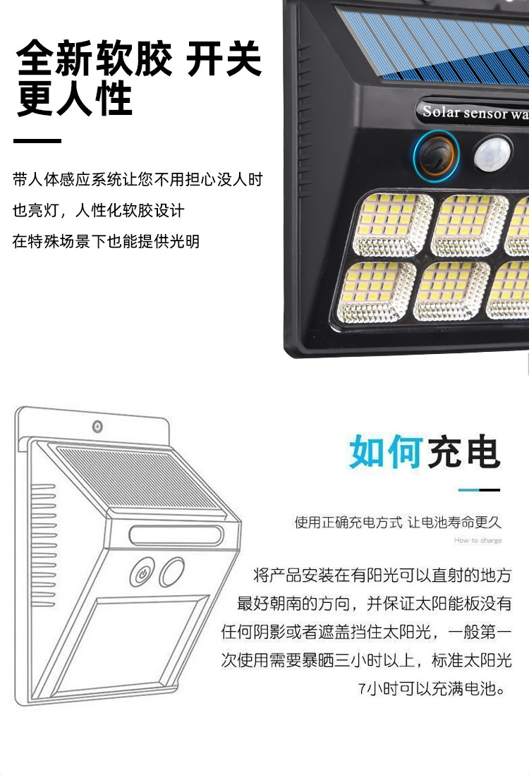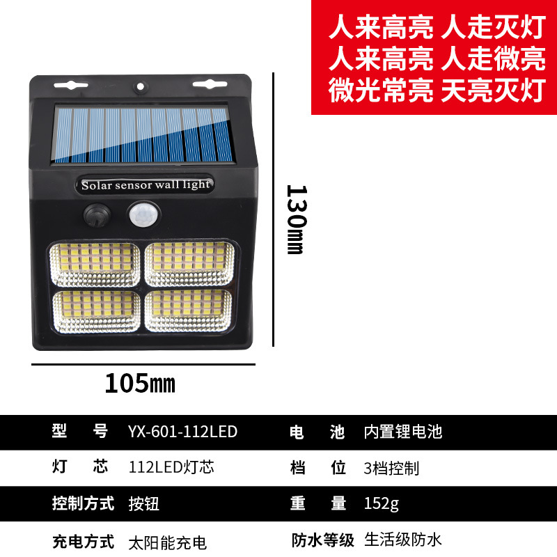 2024 새로운 스타일 601 야외 벽 야외 인클로저 코트야드 COB 태양 인체 유도 램프 안뜰 벽 램프