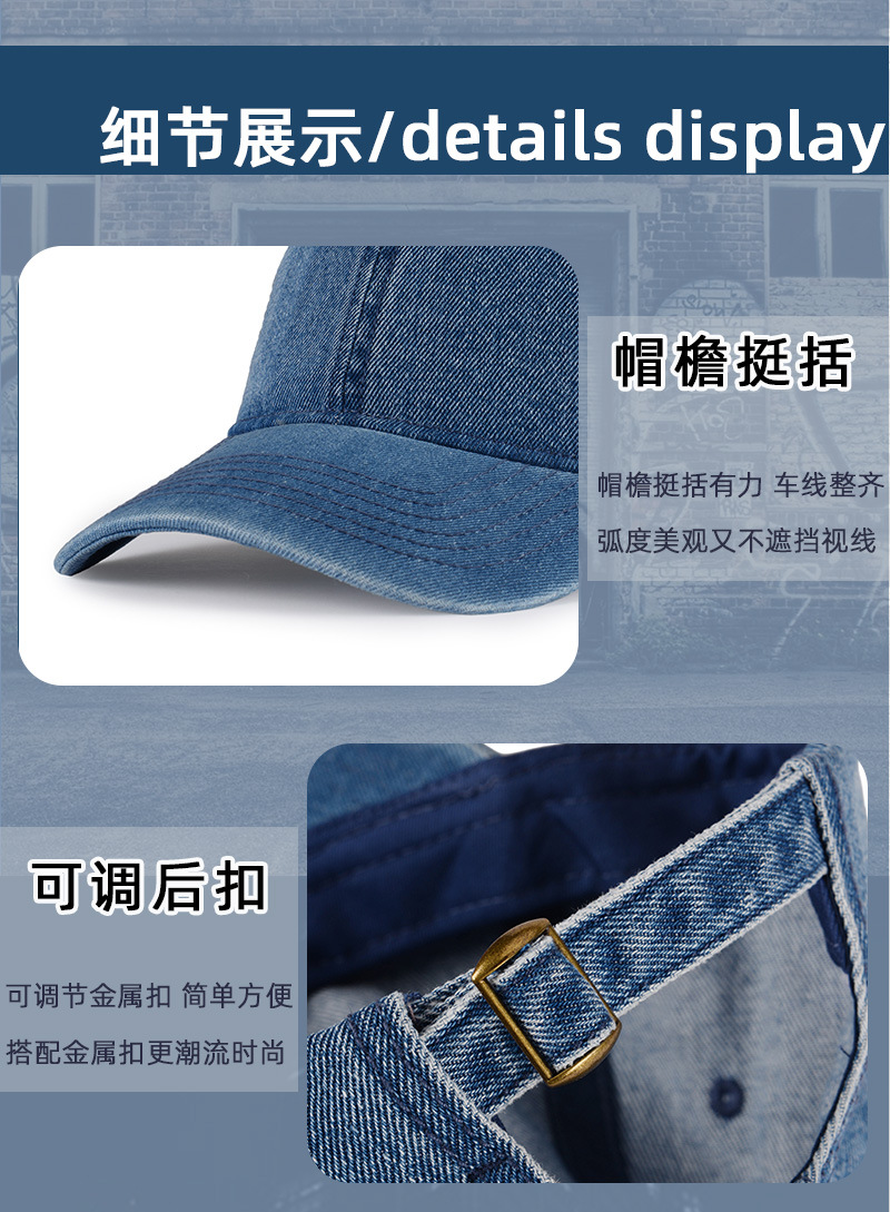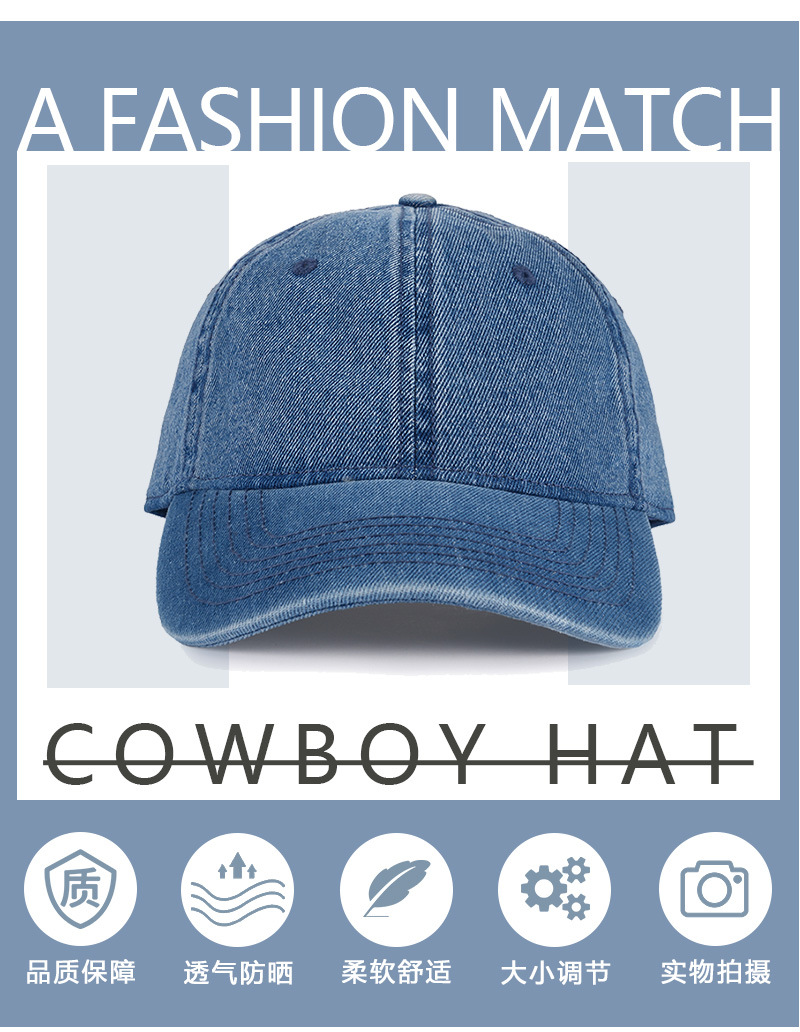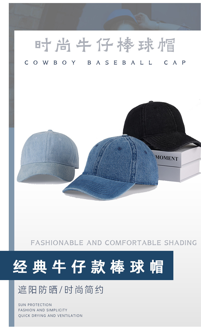 봄과 여름 남성과 여성을 위한 워싱 데님 야구 모자 국경 자외선 차단 거리 다용도 차양 여성용 뾰족한 모자 태양 모자스토어 가기