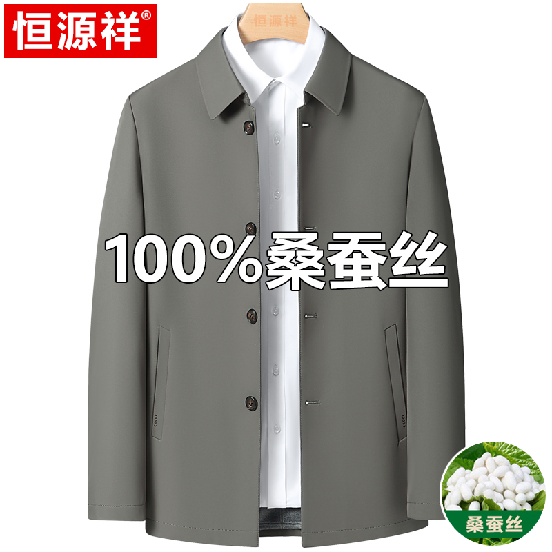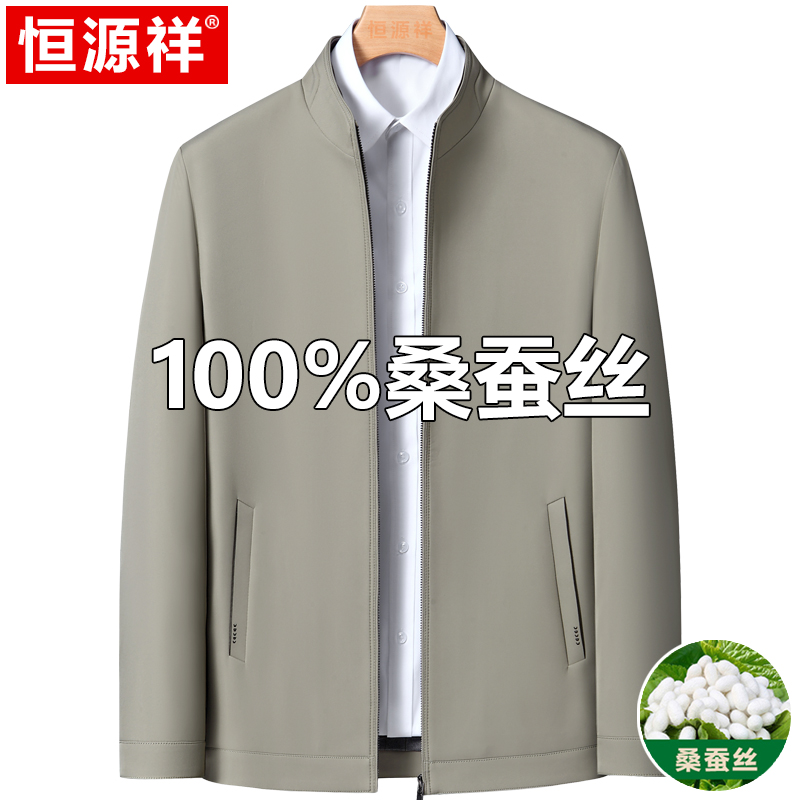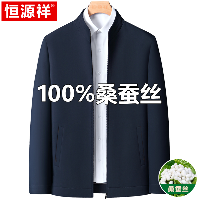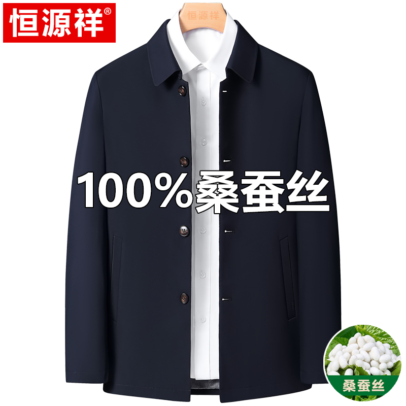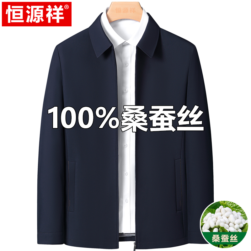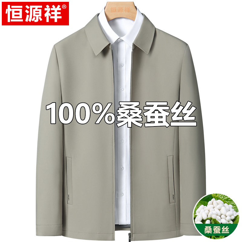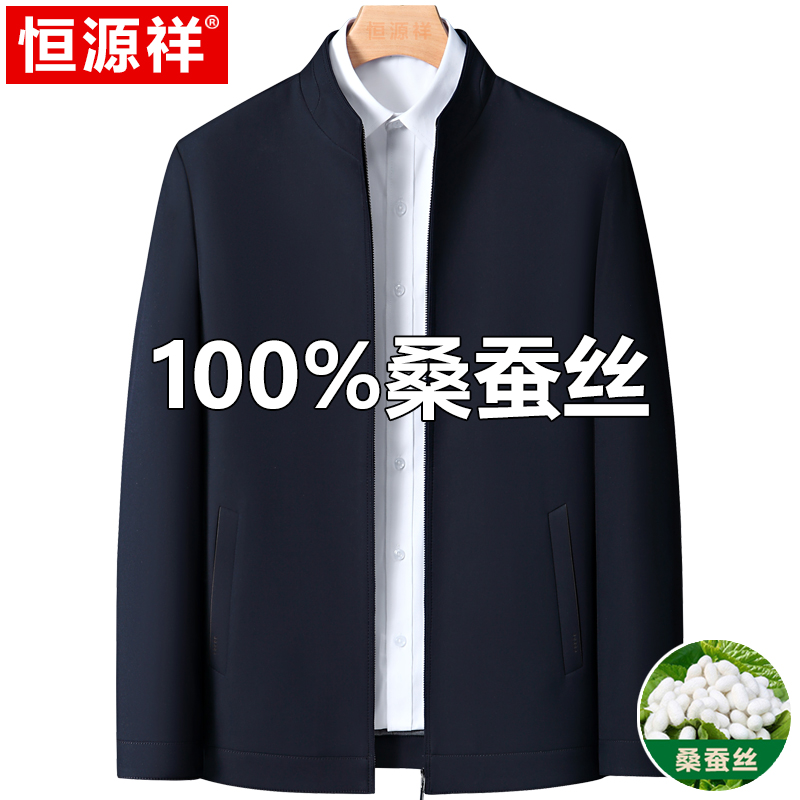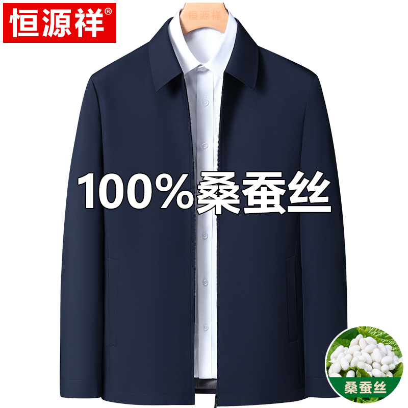 Hengyuanxiang 중년 봄 여름 아빠의 플러스 사이즈 라펠 재킷 남성용 멀버리 실크 공무원 행정 간부 재킷스토어 가기